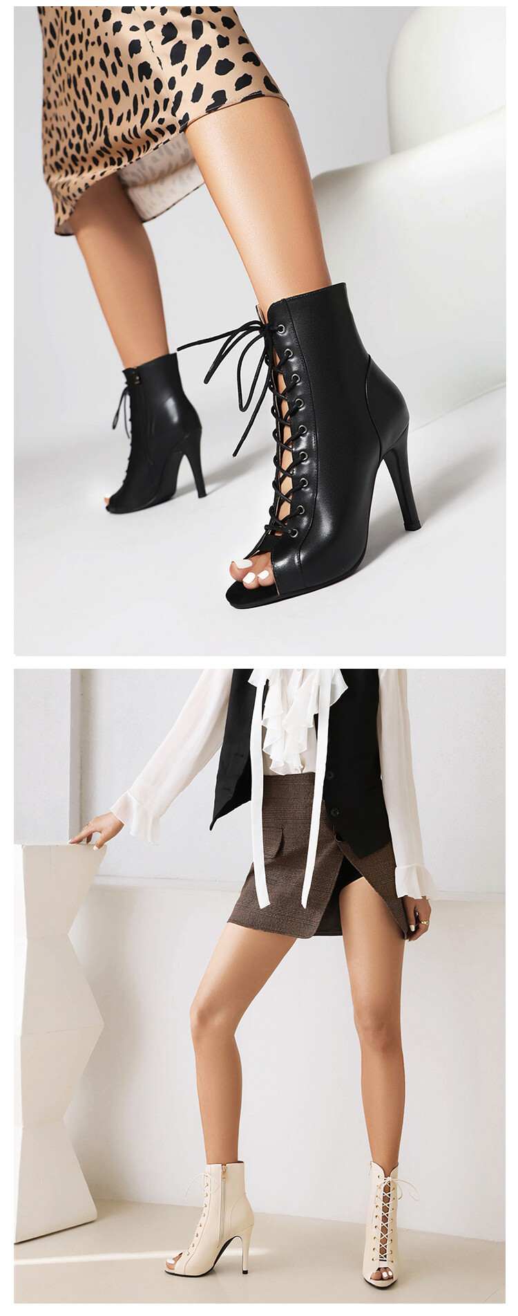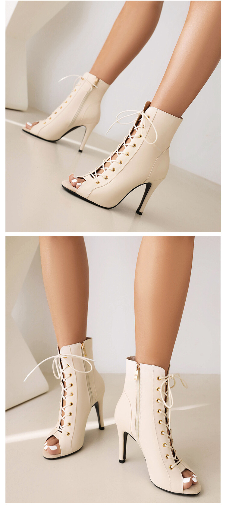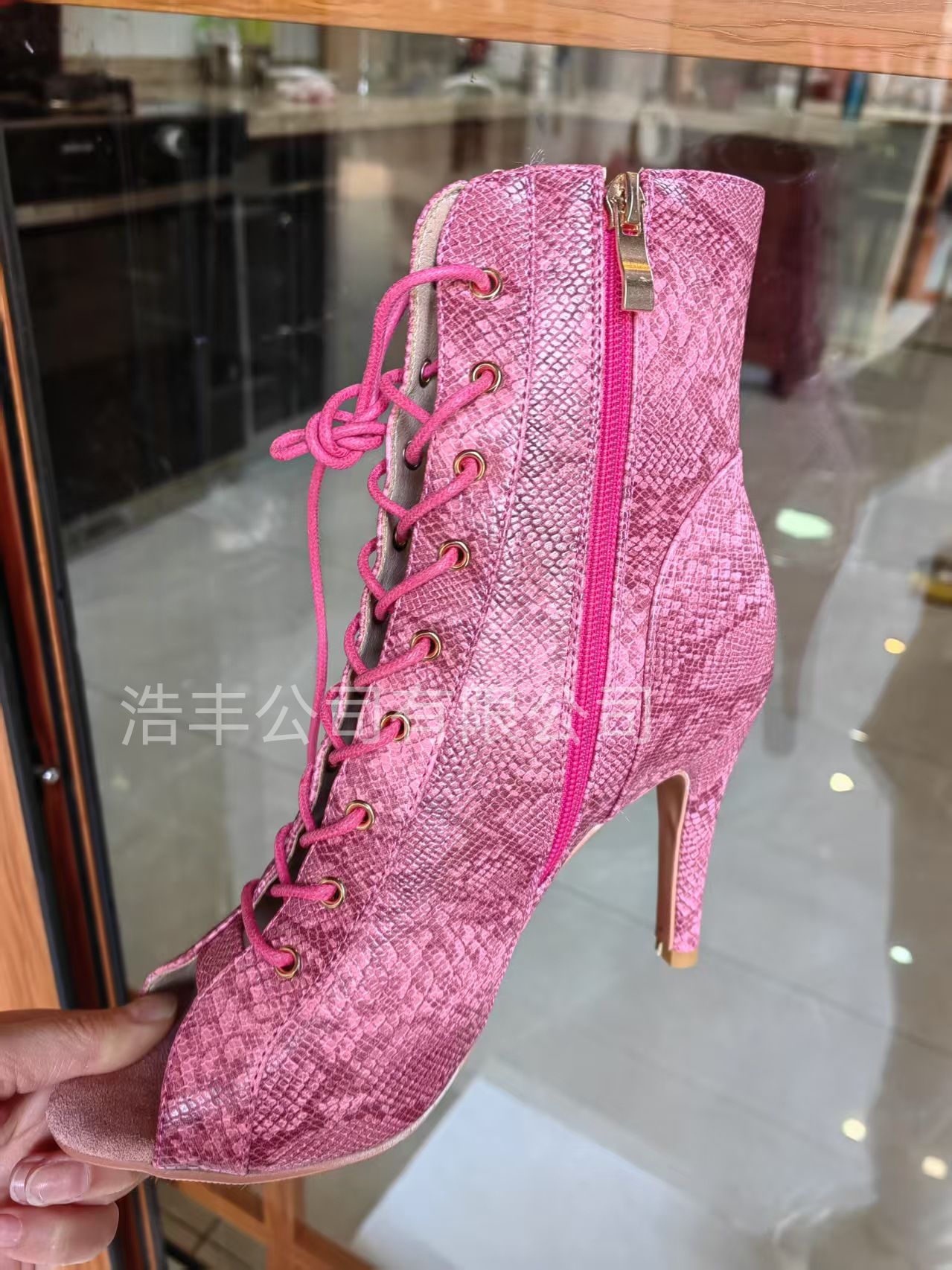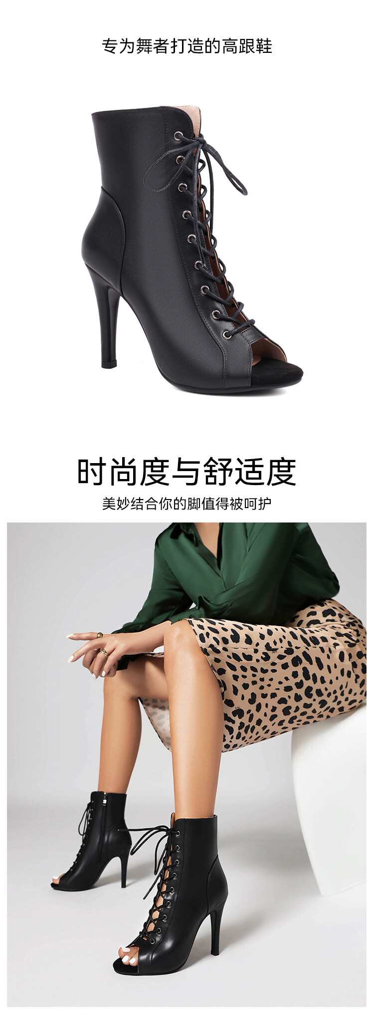 Европейские и американские сандалии на шнуровке с открытым носком, женские летние полые короткие сапоги на шпильке, сандалии на высоком каблуке для джазовых танцев и танцев, большие размеры