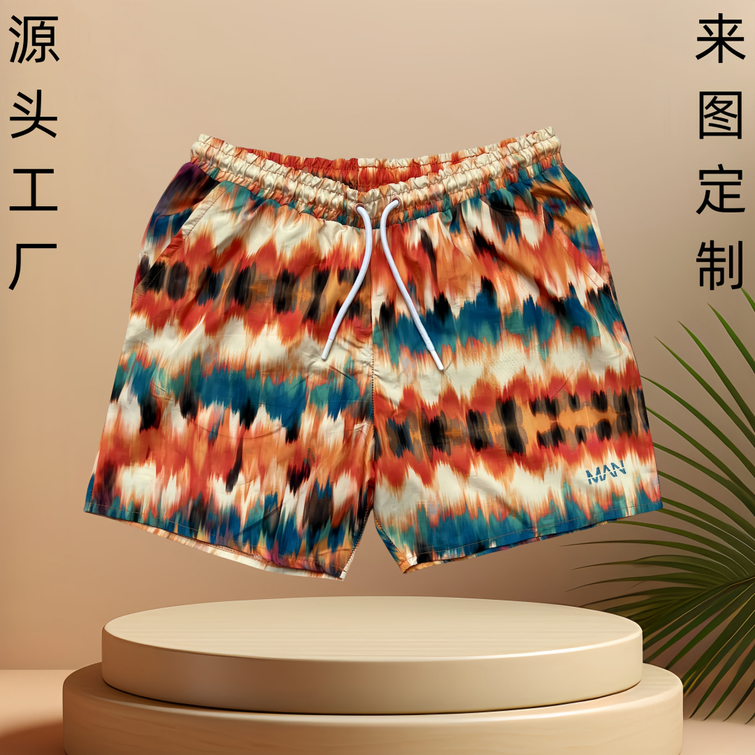 Индивидуальные пляжные брюки с цифровой печатью для внешней торговли, Гавайские мужские свободные повседневные быстросохнущие треугольные шорты в интрасети