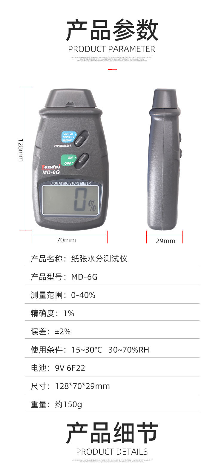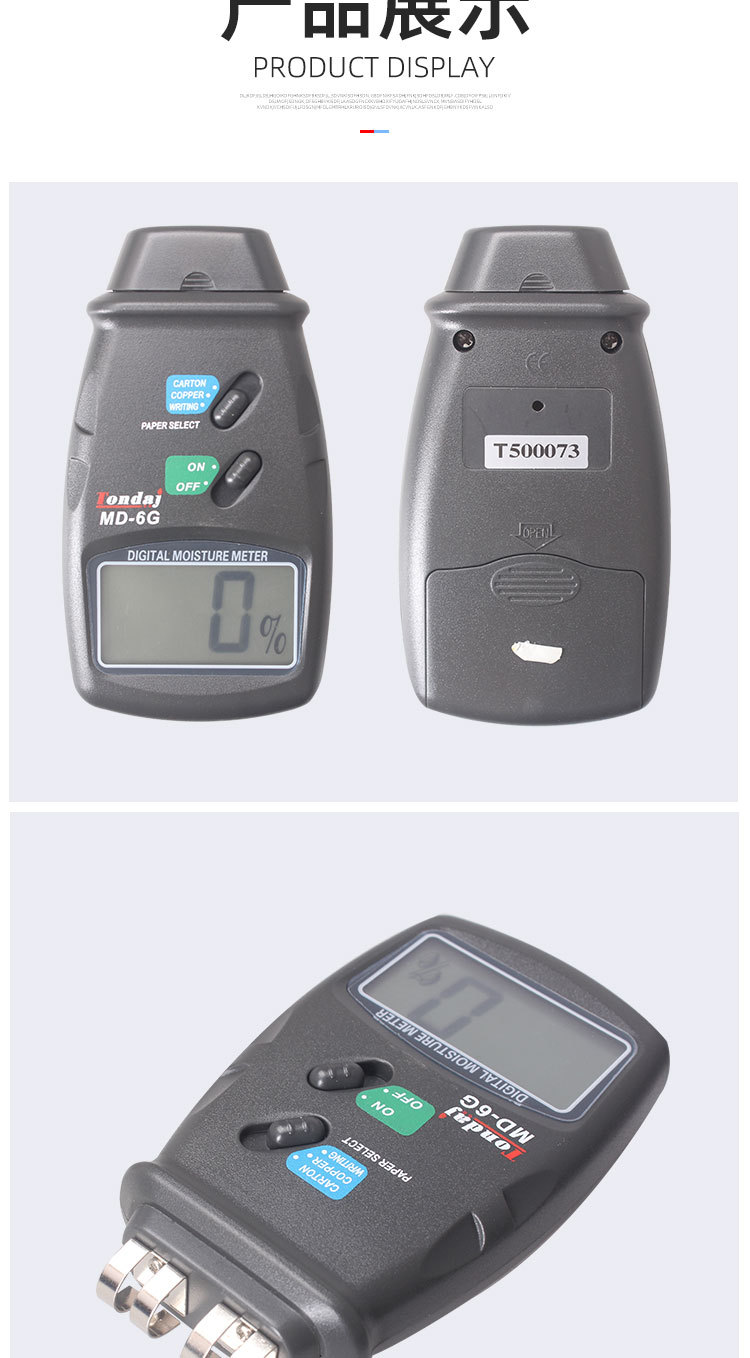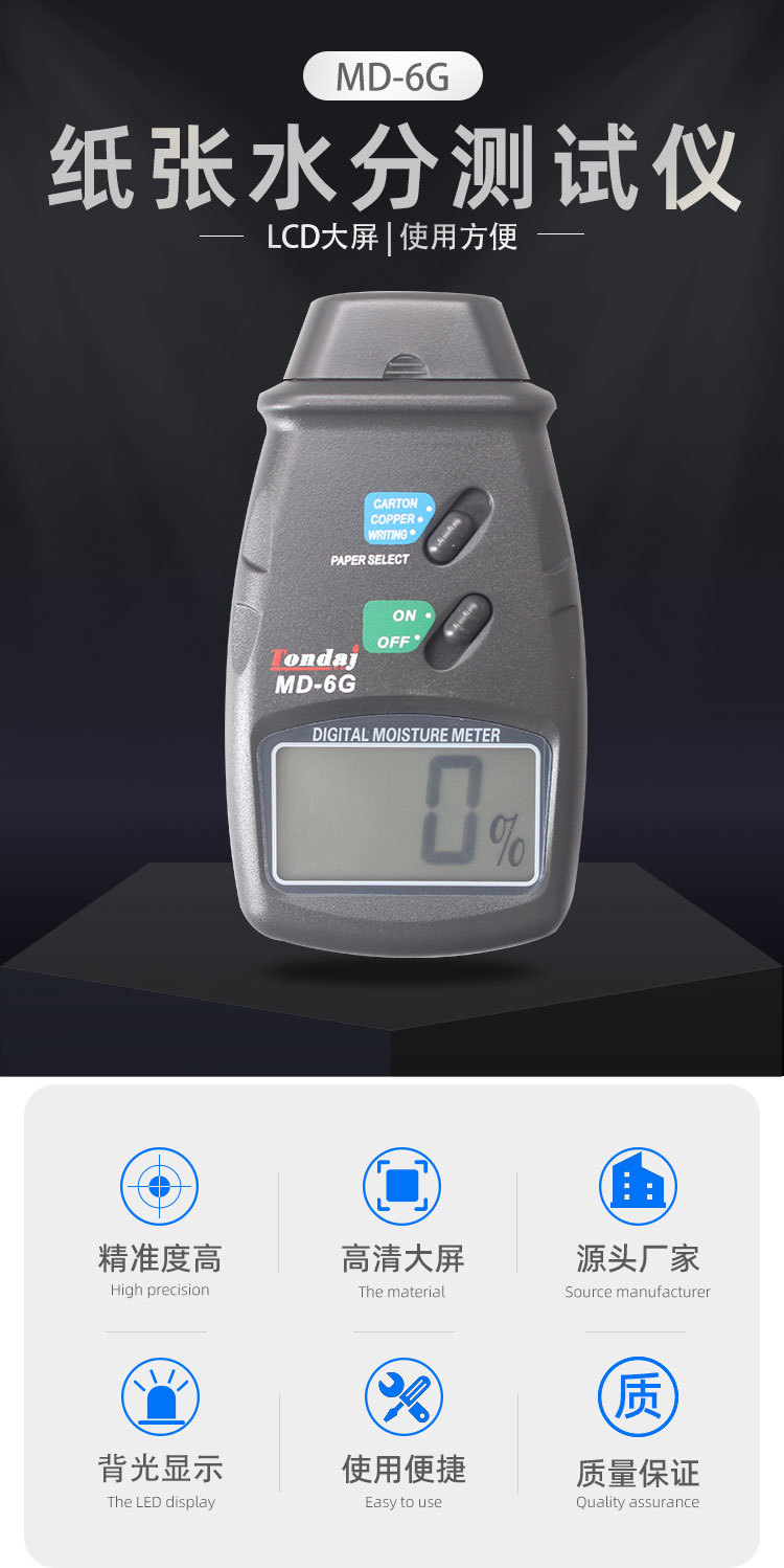 数字式纸张水分测试仪是一款微机智能化测试仪表,采用弹片接触式测量,响应速度快测量准确,使用方便。可分别测量瓦楞纸箱、铜版纸和普通书写纸的水分含量。
