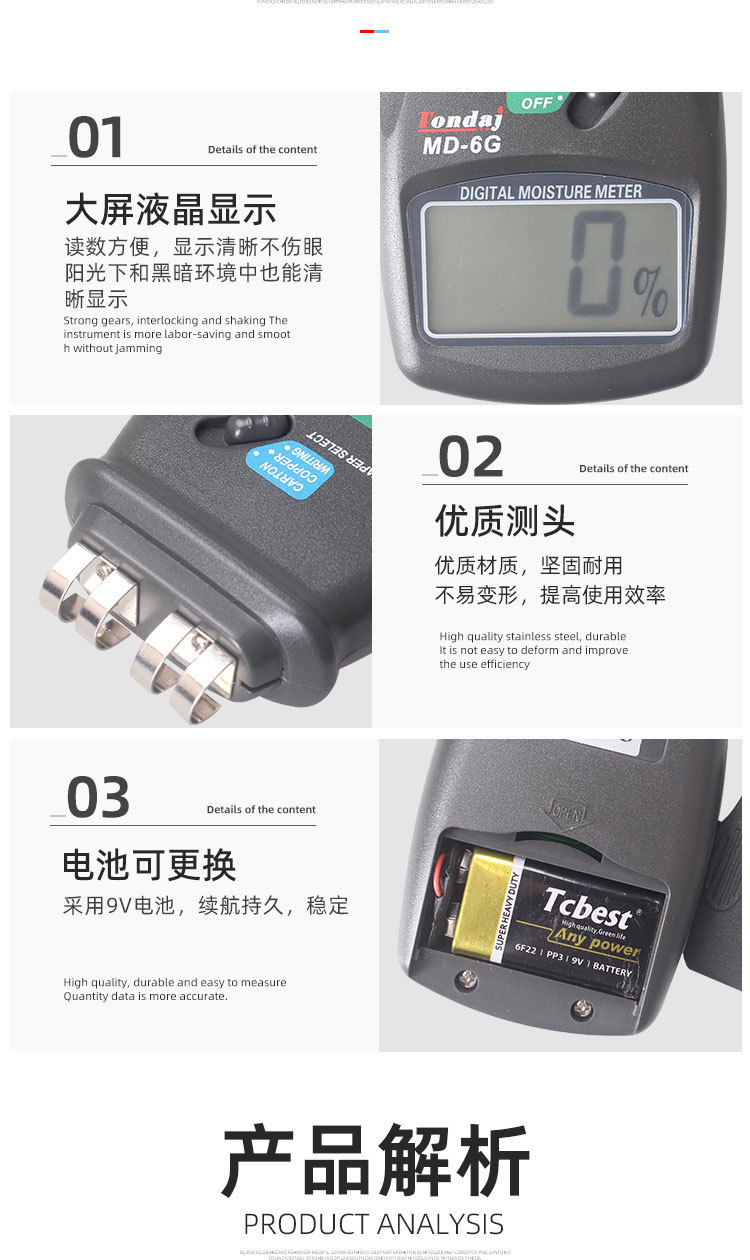 超大液晶显示屏幕,读数清晰、无视差电源损耗低