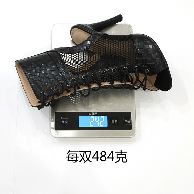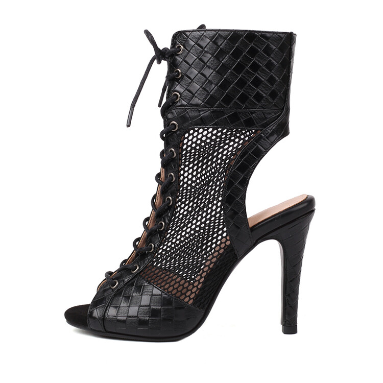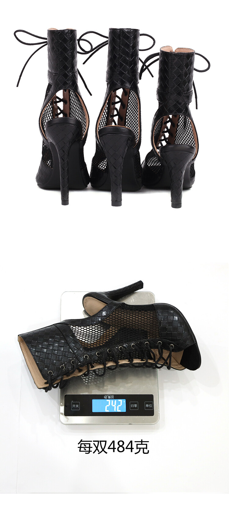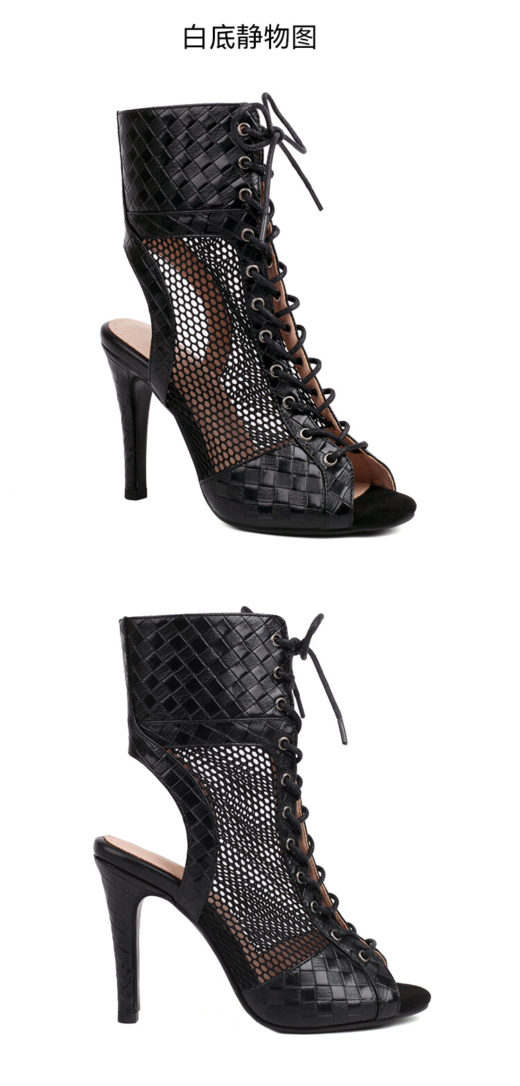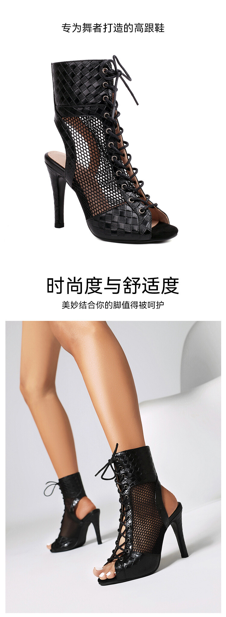 Женские сетчатые сандалии на шнуровке, летние сетчатые сапоги на шпильке с вырезом 2022 г., танцевальные джазовые сандалии на высоком каблуке, сандалии больших размеров с рыбьим носком