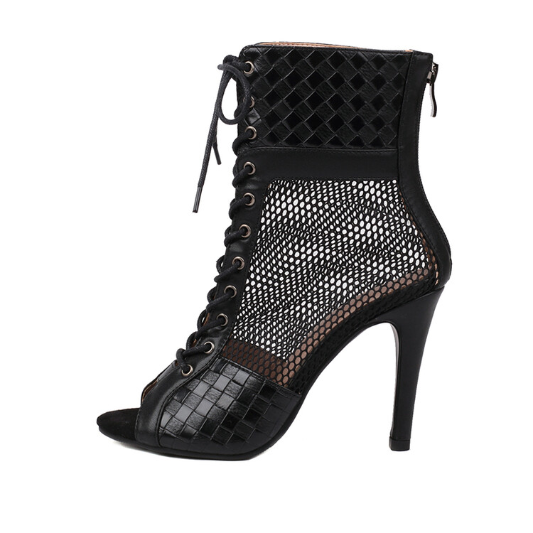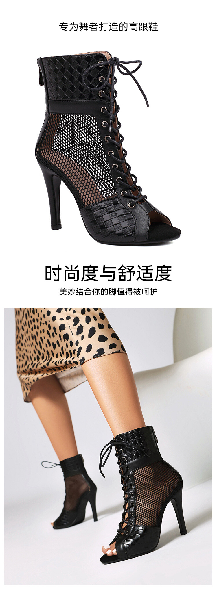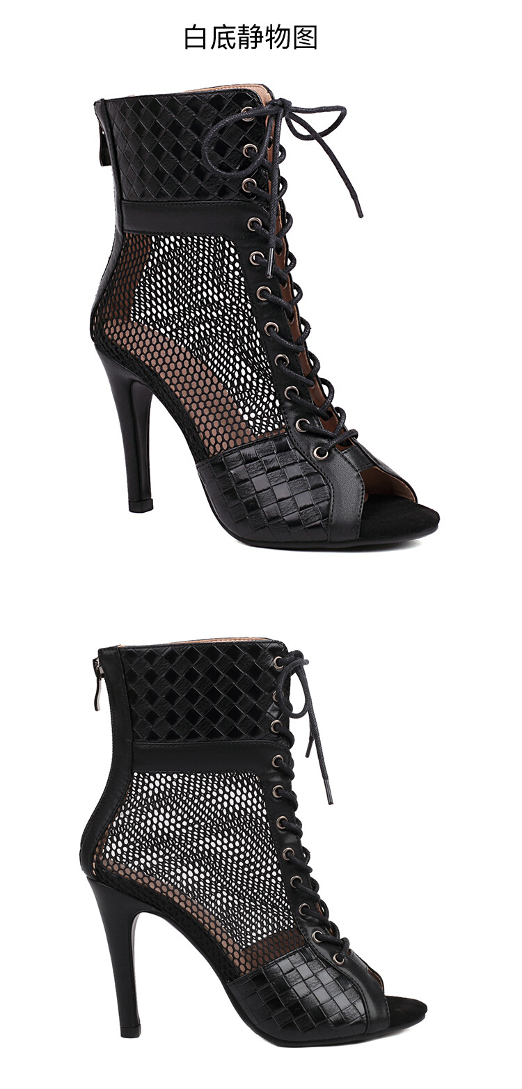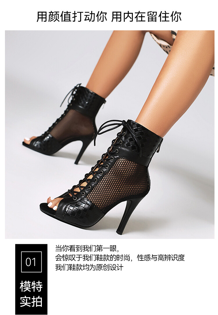 Новая женская обувь на высоком каблуке для джазовых танцев, сандалии с рыбьим носком, европейские и американские сетчатые летние сандалии больших размеров на шнуровке