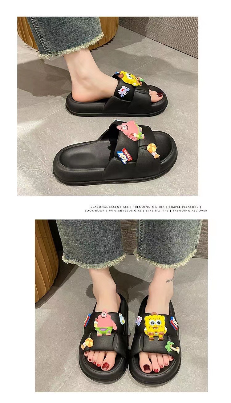 2023 новые слипоны с толстой подошвой, женская модная летняя верхняя одежда в Instagram, Милые Пляжные Нескользящие сандалии с героями мультфильмов