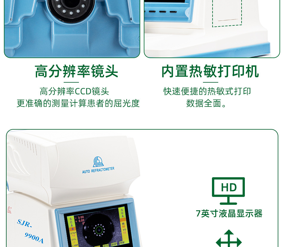 Оптический магазин, оборудование для оптометрии, компьютеризированный рефрактометр Jinglian SJR-9900A, рефрактометр для проверки зрения с цветным экраном.