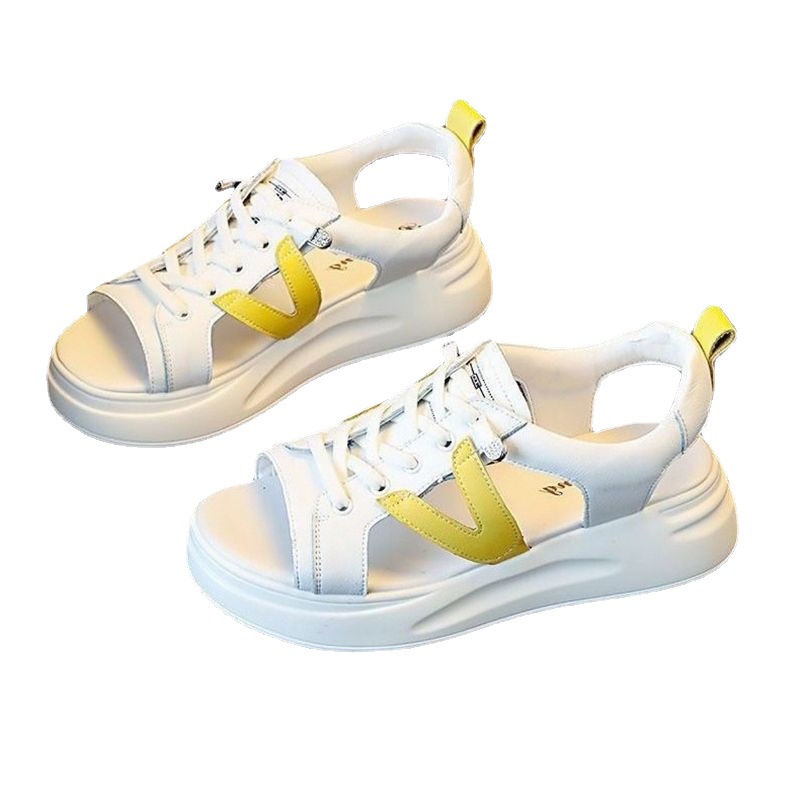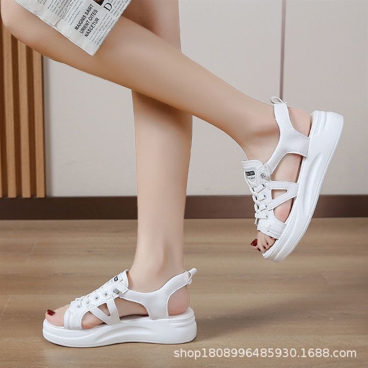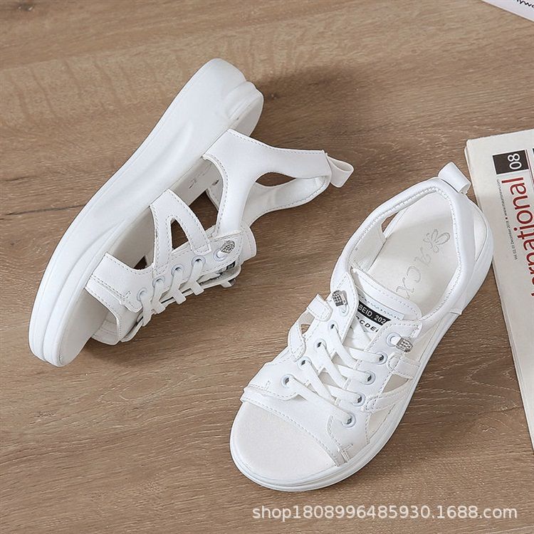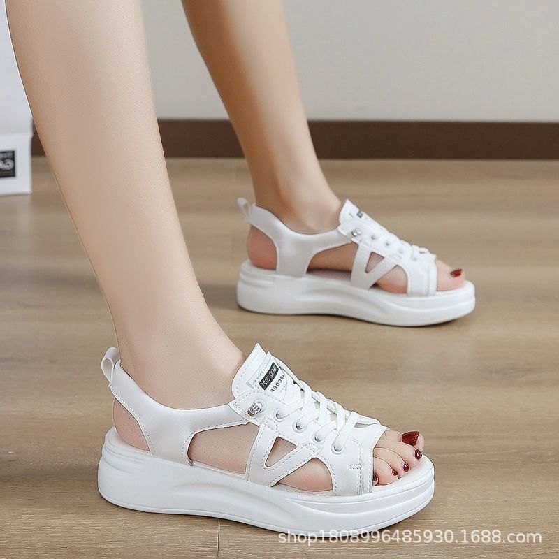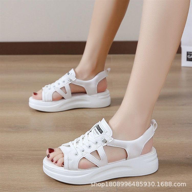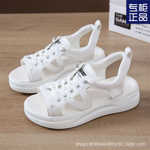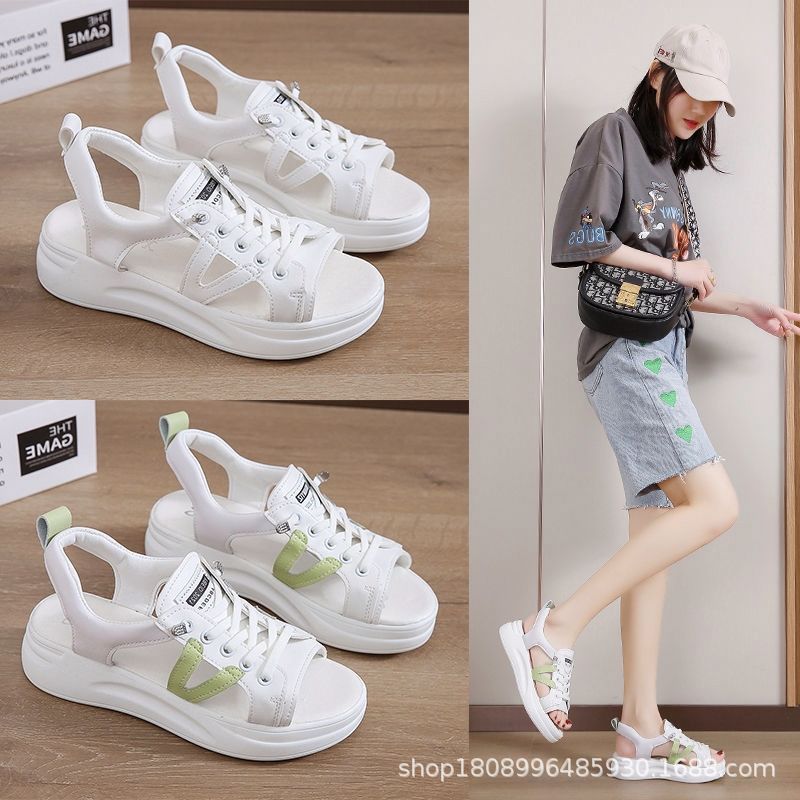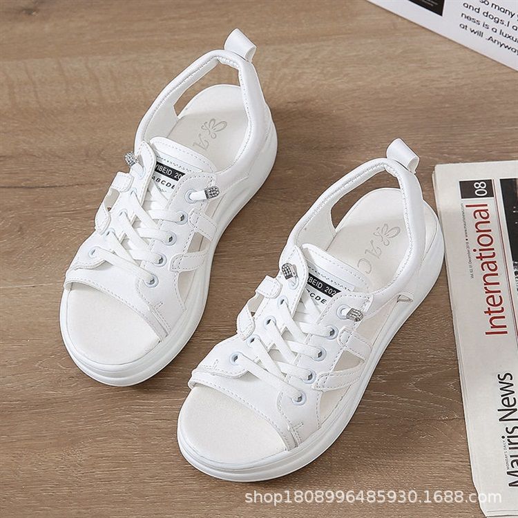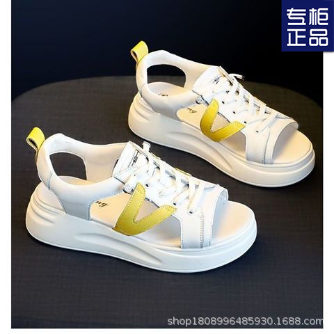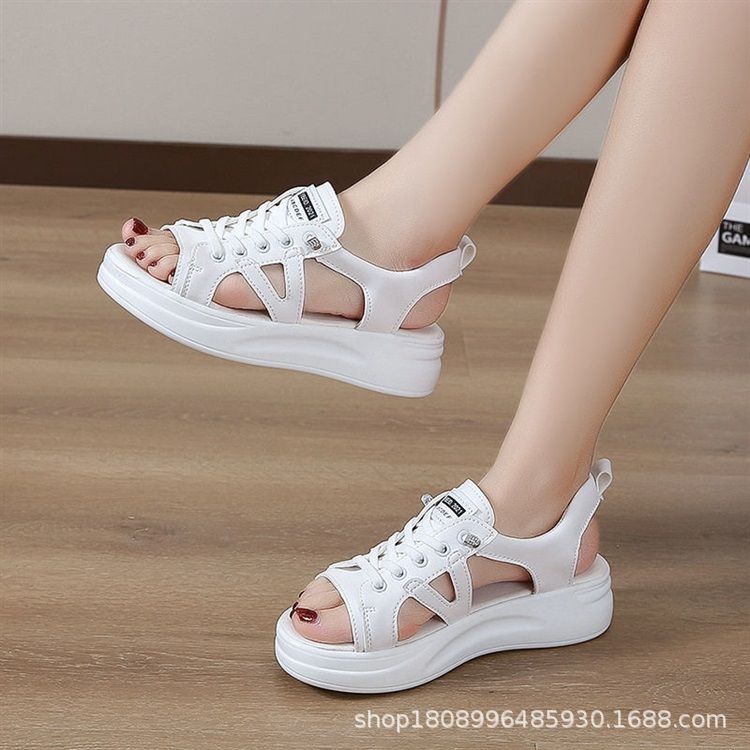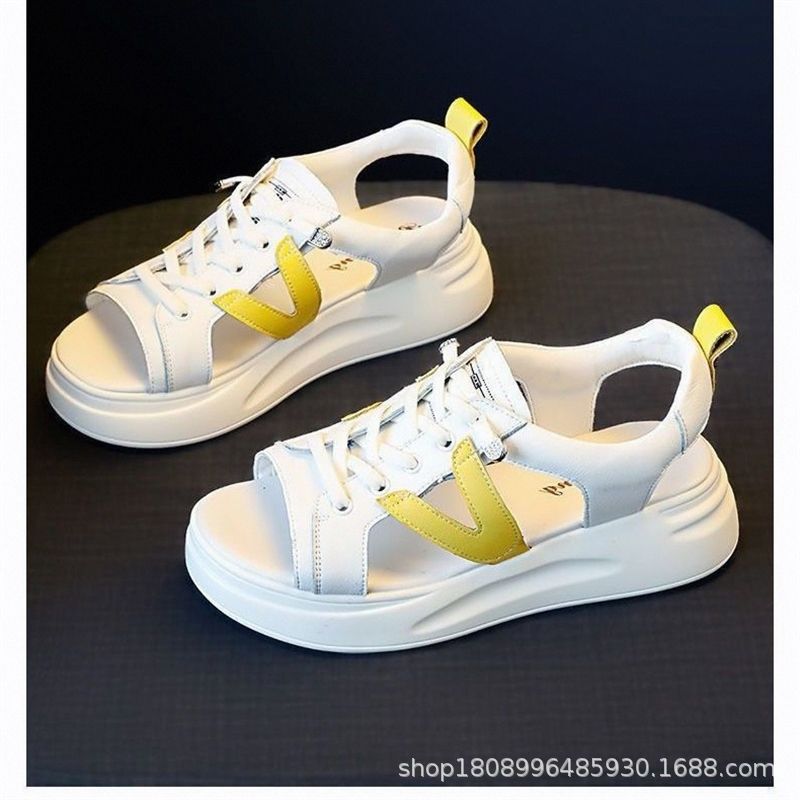 Сандалии Женские 2023 Летняя Новая женская обувь Толстая подошва Высококачественная платформа Модные повседневные спортивные белые туфли на плоской подошве