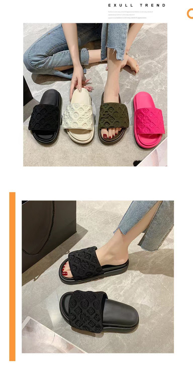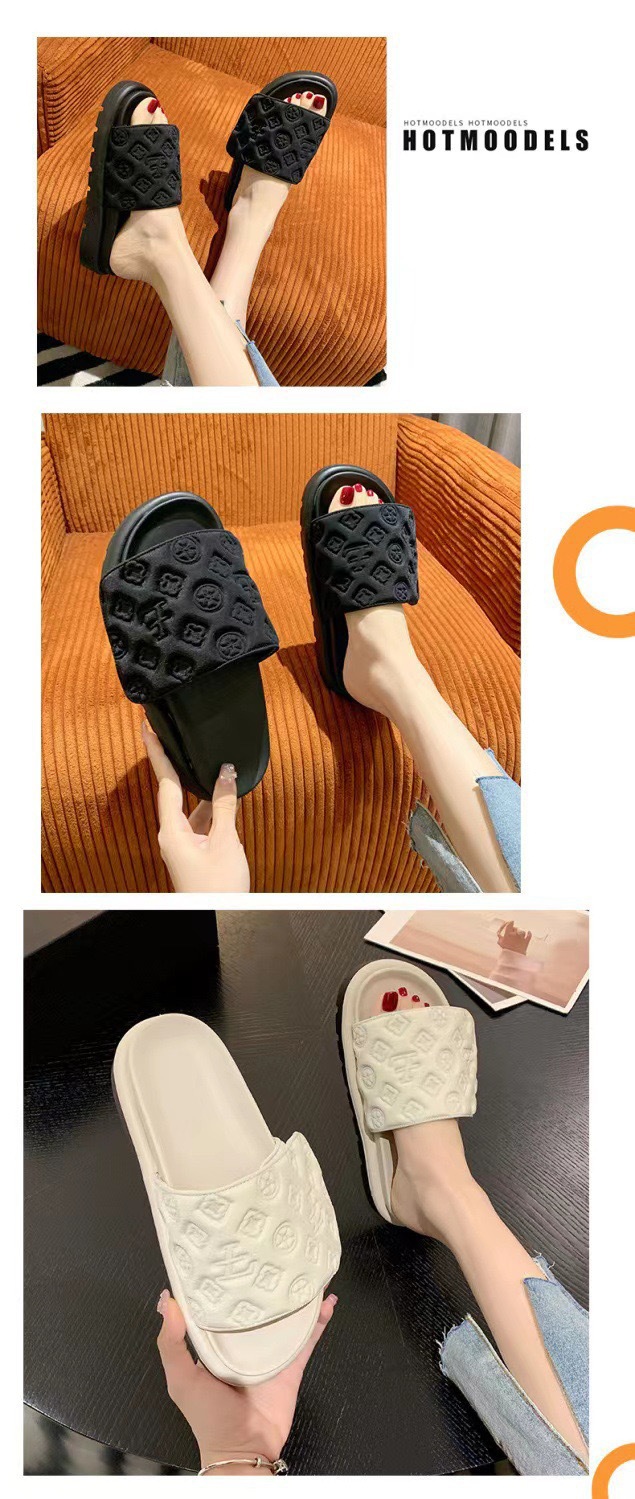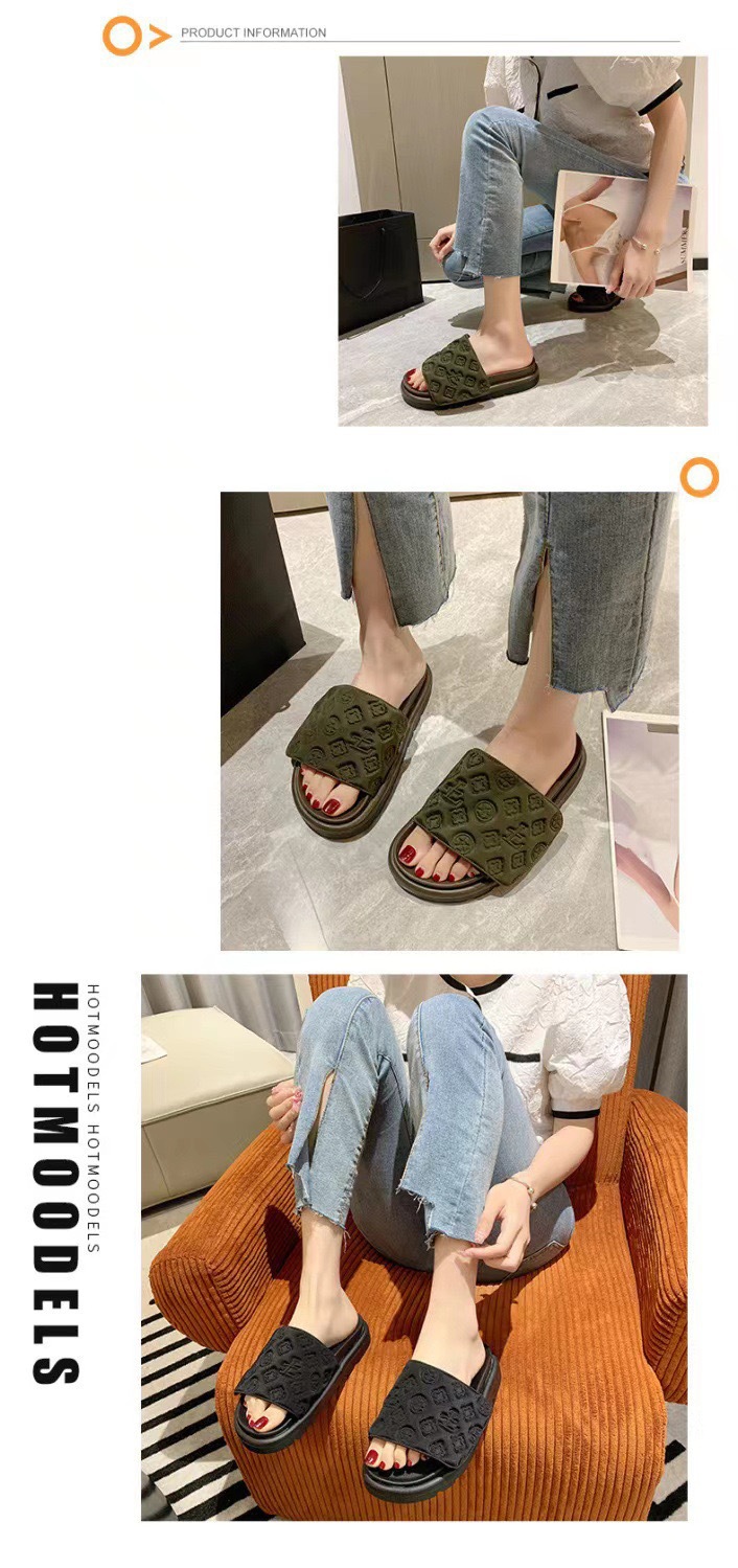 Женские тапочки 2023 Летние новые ленивые сандалии с тиснением на толстой подошве в стиле ретро на липучке