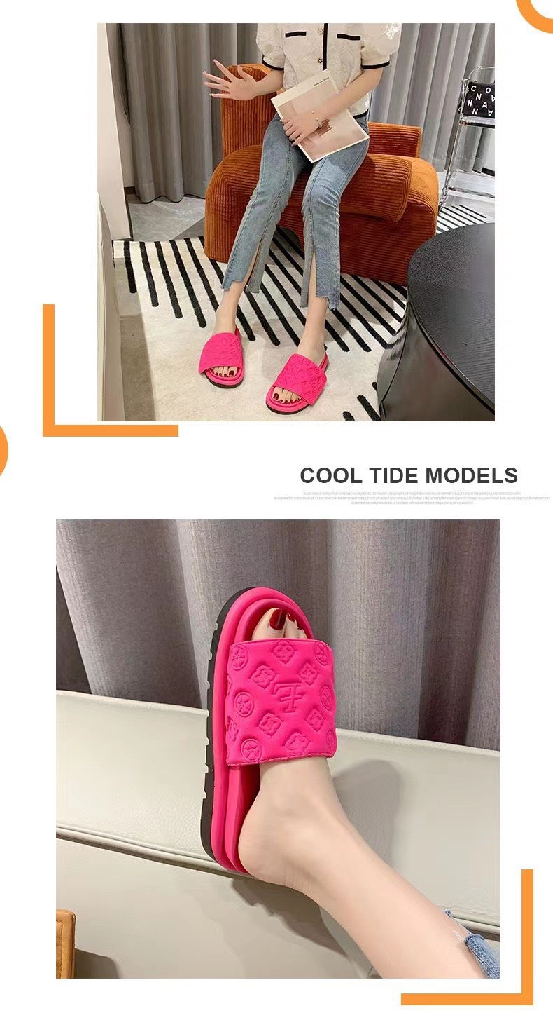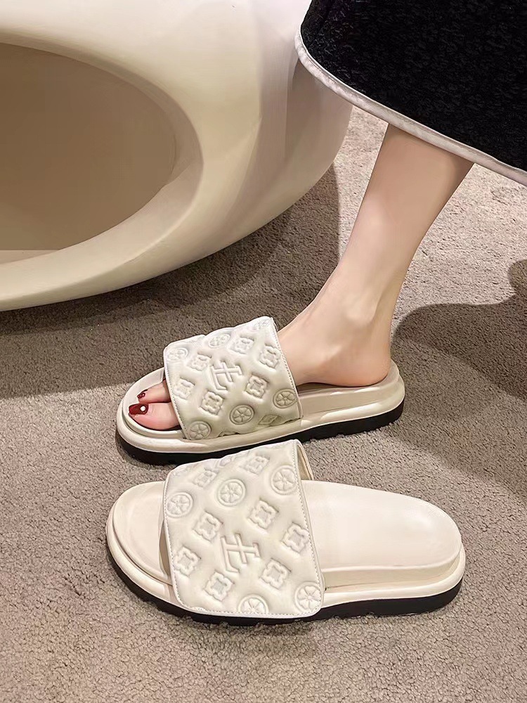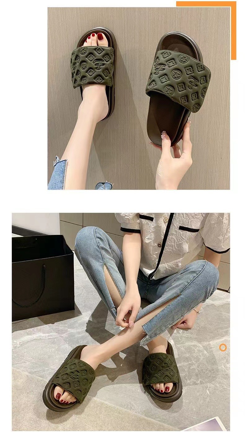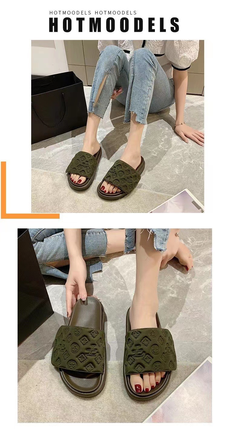 Женские тапочки 2023 Летние новые ленивые сандалии с тиснением на толстой подошве в стиле ретро на липучке