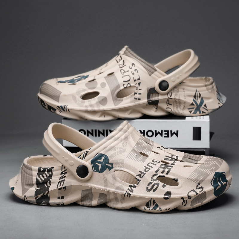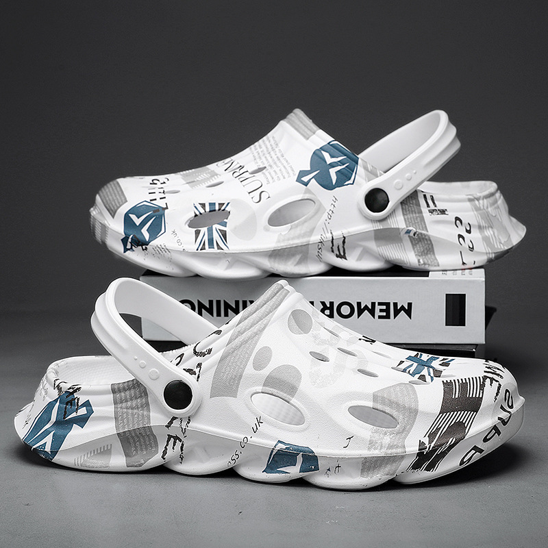 Туфли с дырками, мужские летние уличные тапочки с закрытым носком, спортивные сандалии без шнуровки на толстой подошве, нескользящая пляжная обувь