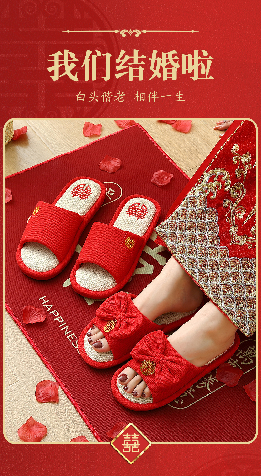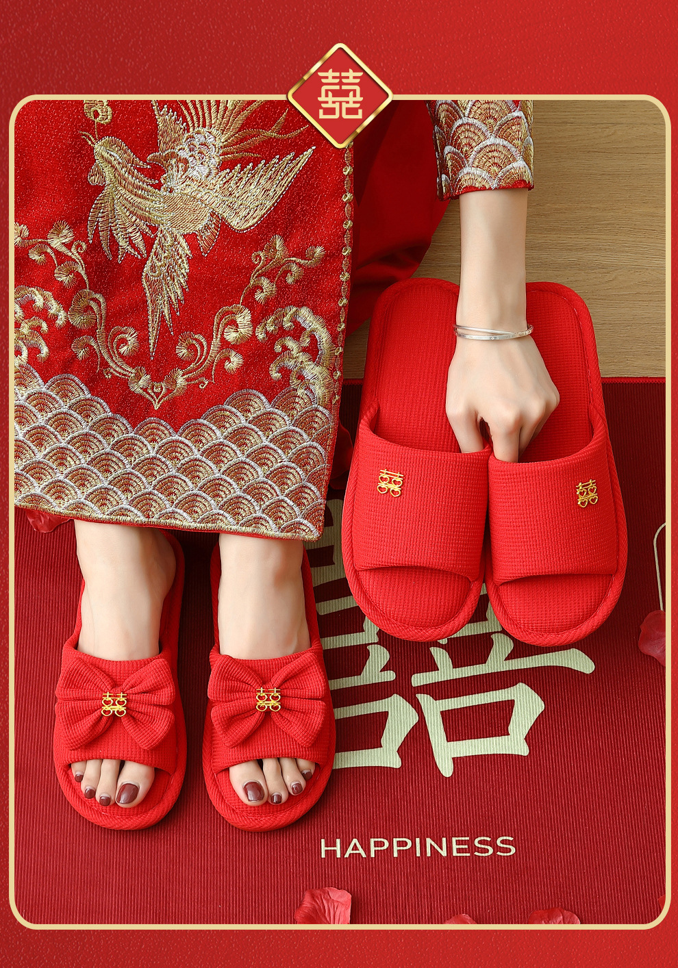 Свадебные тапочки Новобрачная Пара Невесты Сопровождение Праздничных Принадлежностей Слова Красная Пара Свадебные Летние Домашние Сандалии