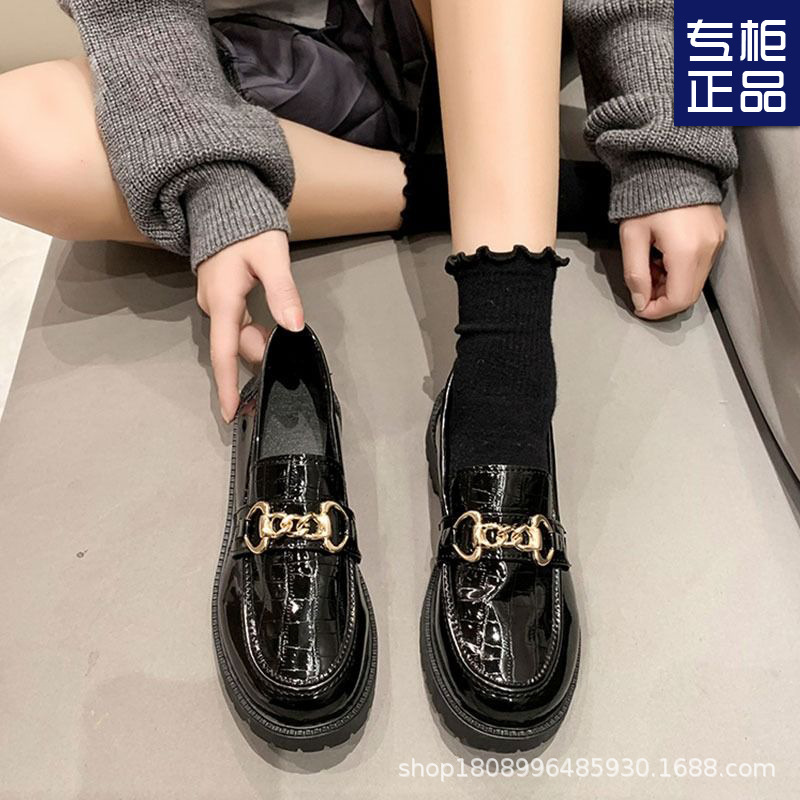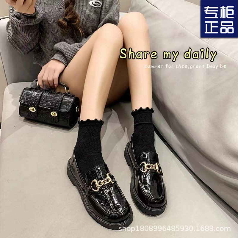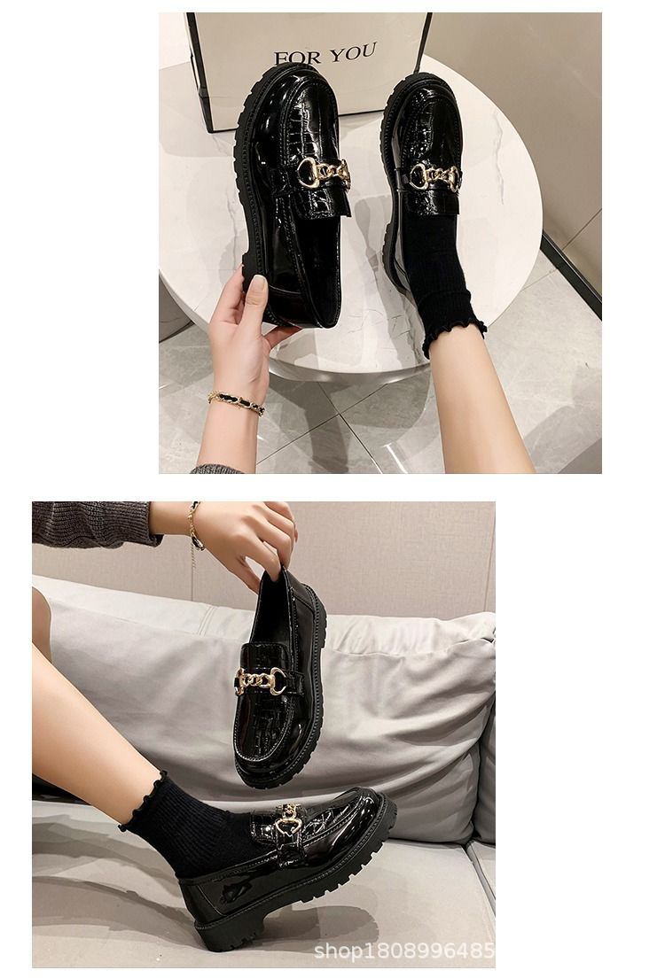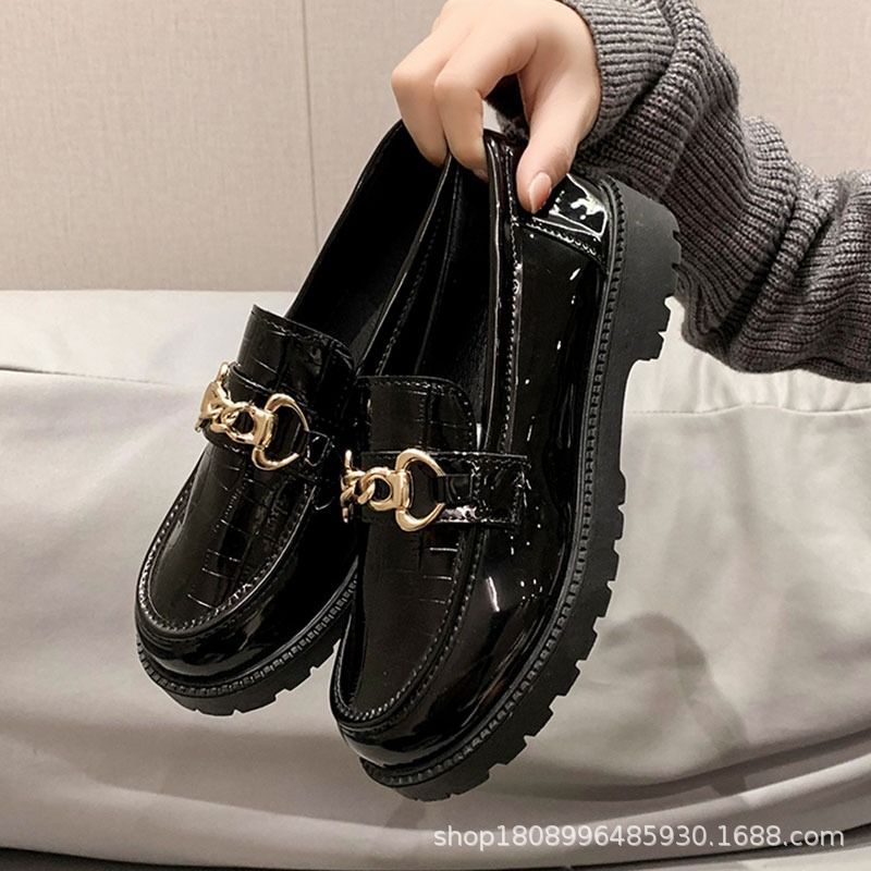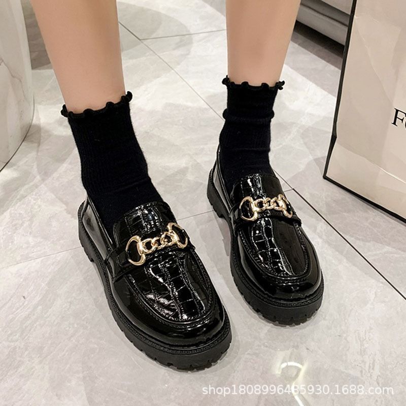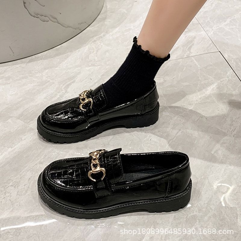 Маленькие кожаные туфли женские Британский ветер 2023 новые универсальные туфли High Love черные весенне-осенние ретро-туфли на плоской подошве Весна
