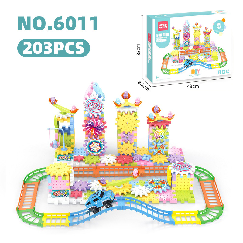 Строительные блоки с крупными частицами для мальчиков и девочек, Электрический механический зубчатый рельсовый вагон, наука и образование, детские развивающие игрушки для сборки