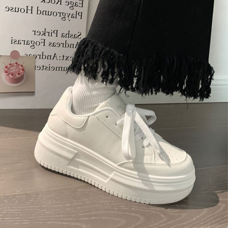 Нижняя часть торта на толстой подошве, трендовые износостойкие маленькие белые туфли с увеличенным ulzzang, повседневная обувь, папская обувь, кроссовки на толстой подошве