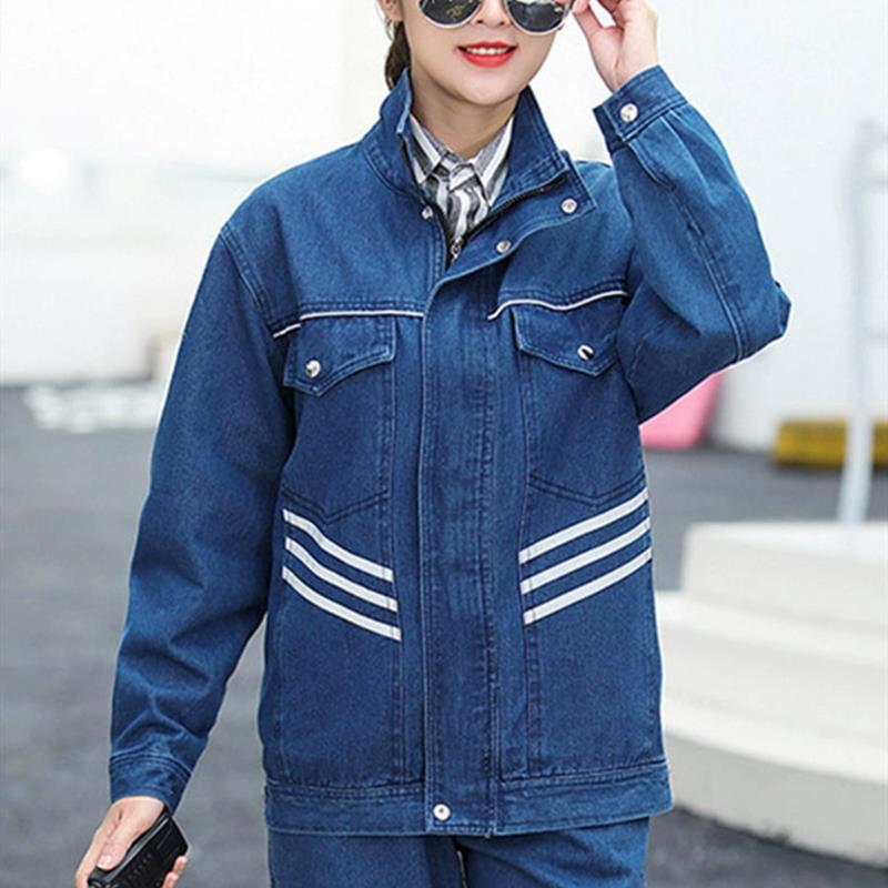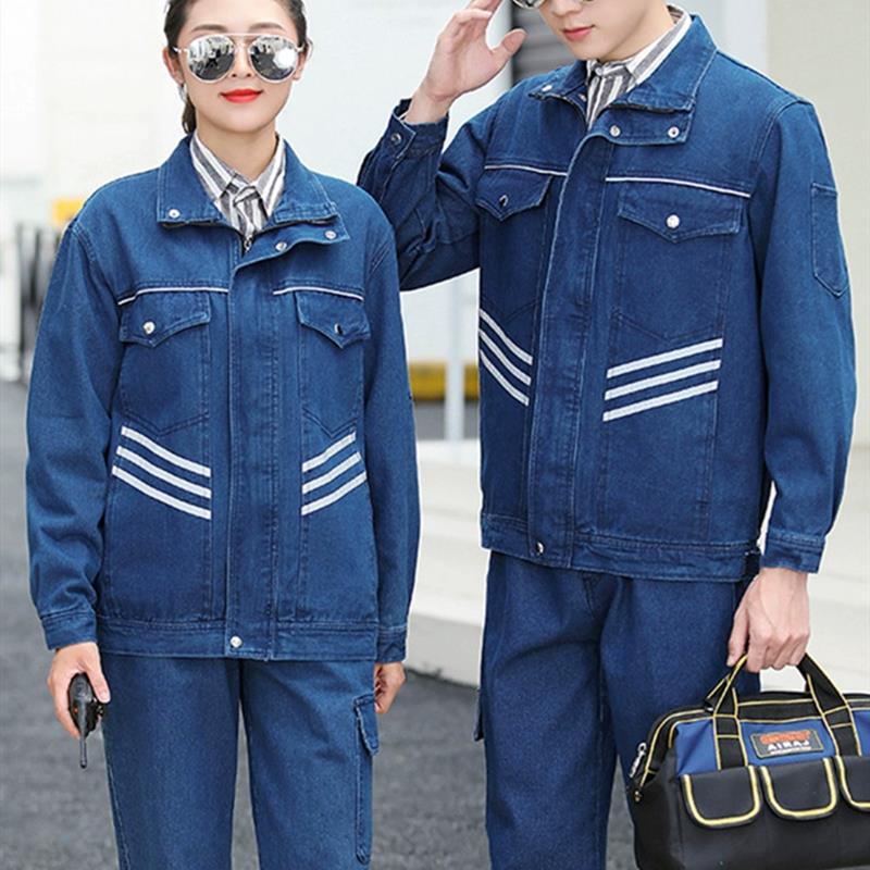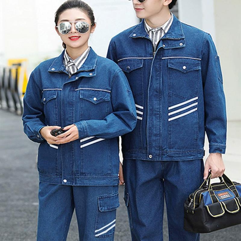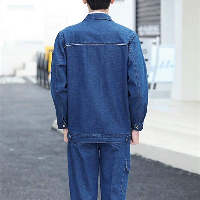 Джинсовая рабочая одежда из чистого хлопка, мужская сварочная рабочая одежда, утолщенная, противоожоговая, заводская мастерская, строительная площадка, охрана труда, одежда весна, осень и зима
