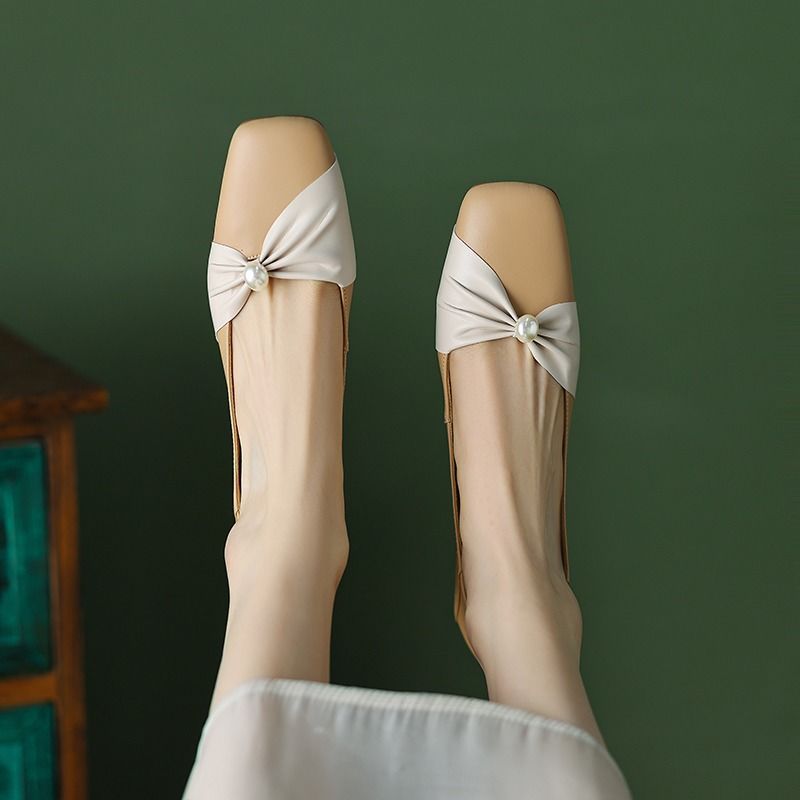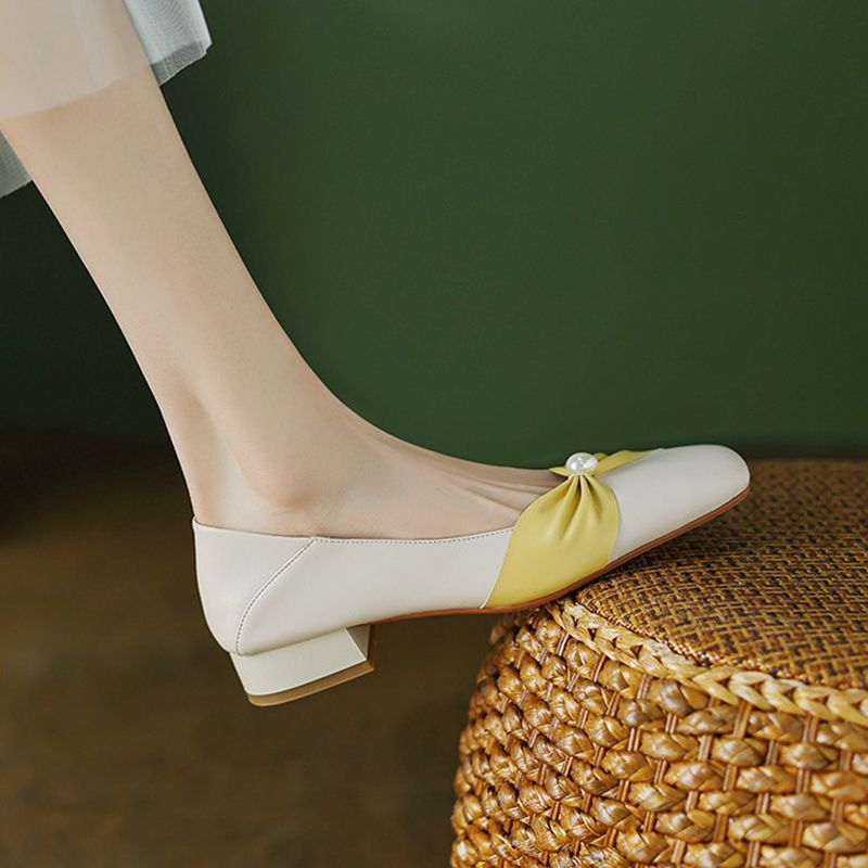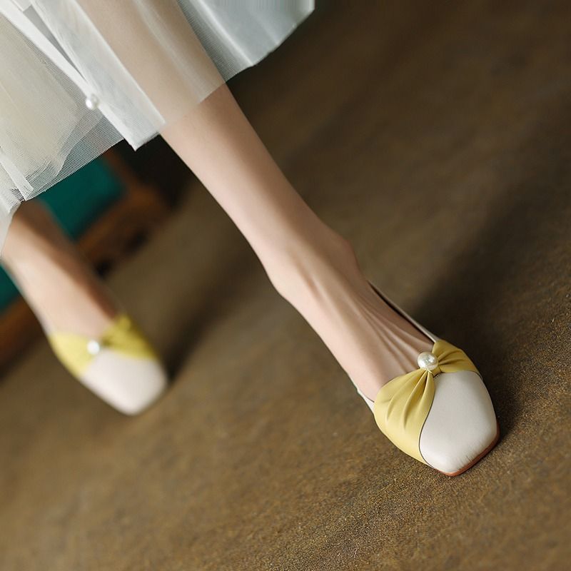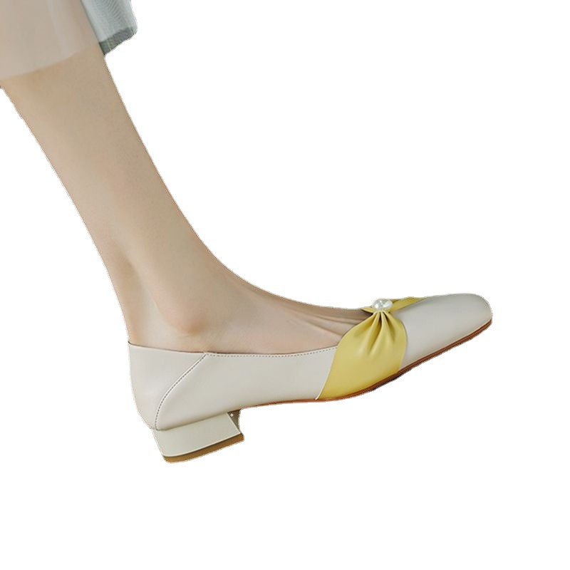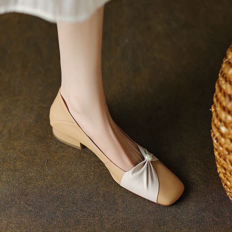 Однослойные туфли в стиле Шанель, женские кожаные туфли на толстом каблуке и квадратным носком на мягкой подошве с квадратным носком, 2023, новая летняя элегантная женская обувь на низком каблуке