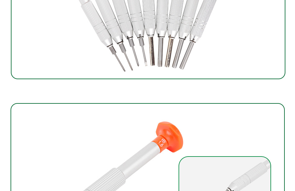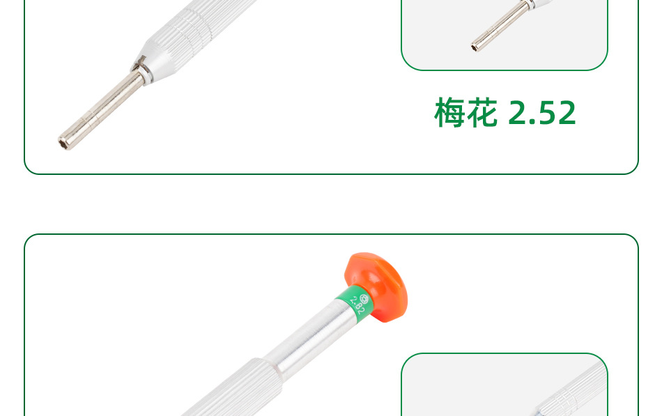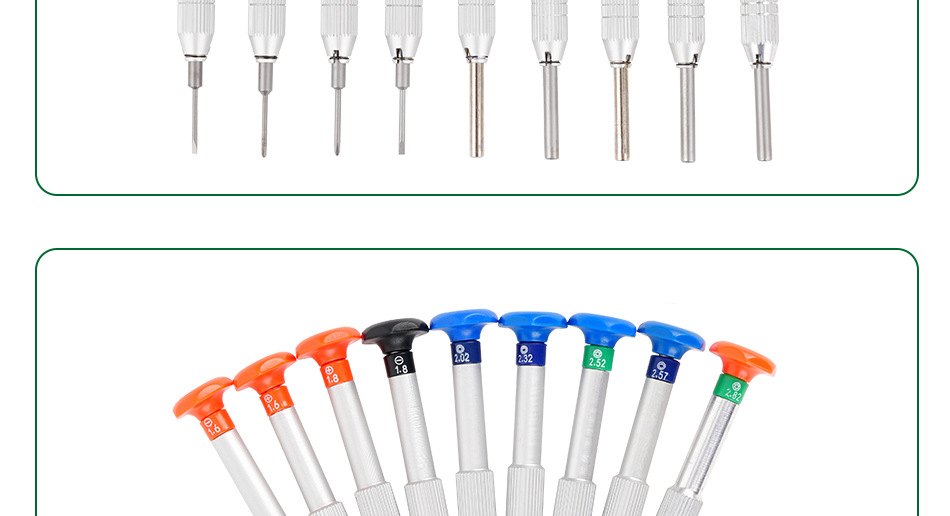 Слово отвертка 1.6; Слово отвертка 1.8; Крест отвертка 1.6; Крест отвертка 1.8; Шестигранная втулка 2.02; Шестигранная втулка 2.32; Шестигранная втулка 2.57; Втулка из сливы 2.52; Втулка из сливы 2.82