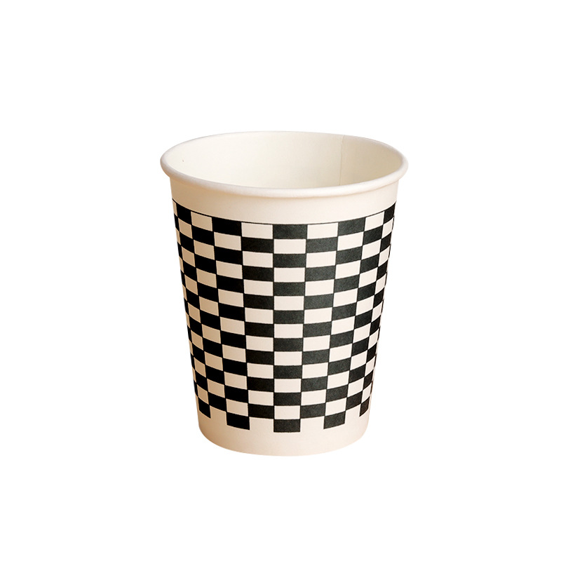 Индивидуальные одноразовые бумажные стаканы, 9 кофейных стаканов с крышками, коммерческие черно-белые стаканы для молочного чая в клетку, утолщенные и прочные