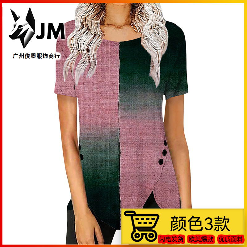 Трансграничная Женская Повседневная футболка-топ AliExpress, европейские и американские взрывы, этническая летняя одежда, с короткими рукавами и круглым вырезом