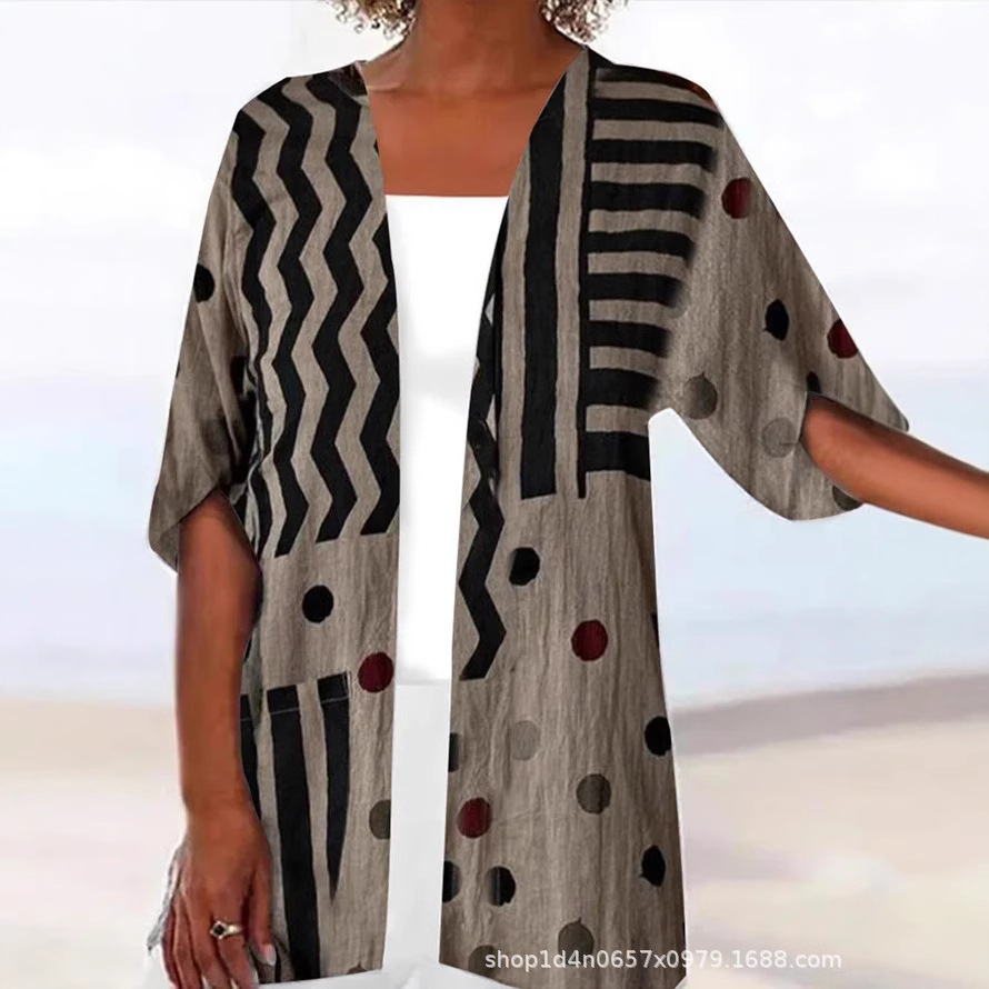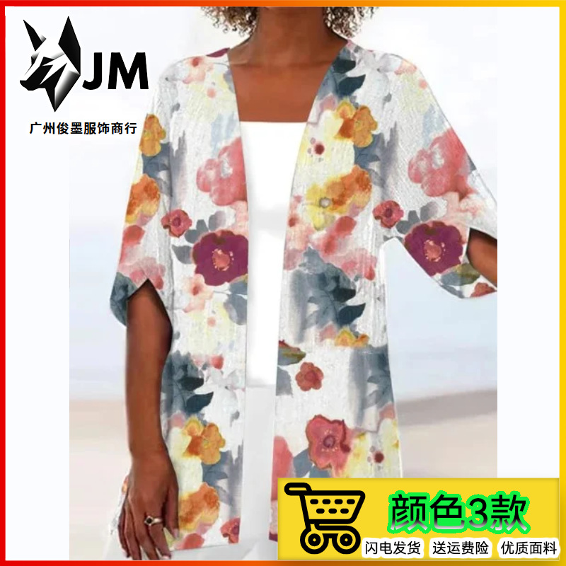 Трансграничный европейский и американский Новый кардиган Amazon AliExpress ebaywish, свободная верхняя куртка с принтом без пряжки
