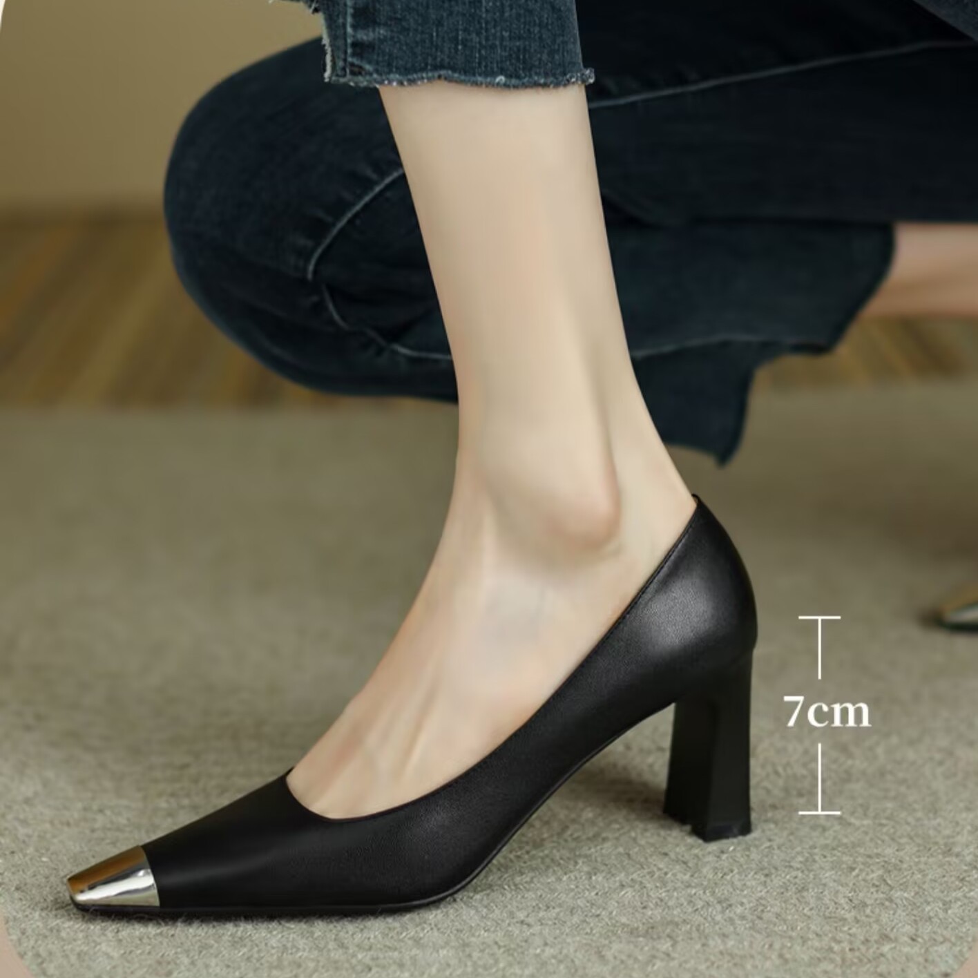 Однослойные туфли во французском стиле, женские туфли на шпильке, нишевый дизайн, металлическая голова с квадратным носком, овчина, элегантные светские туфли с мелким ртом, высокие каблуки