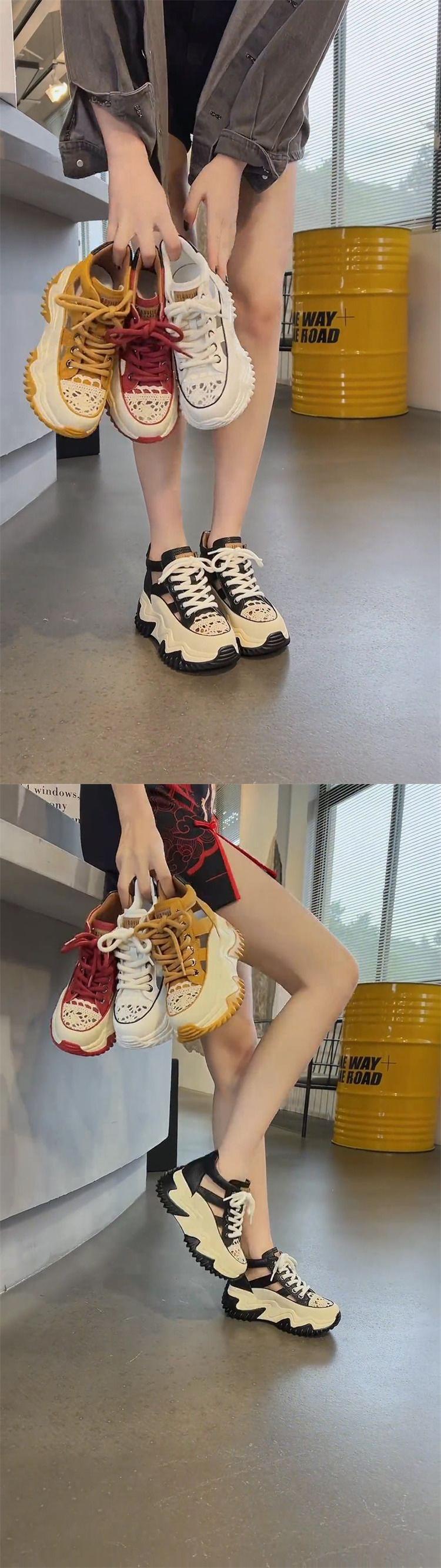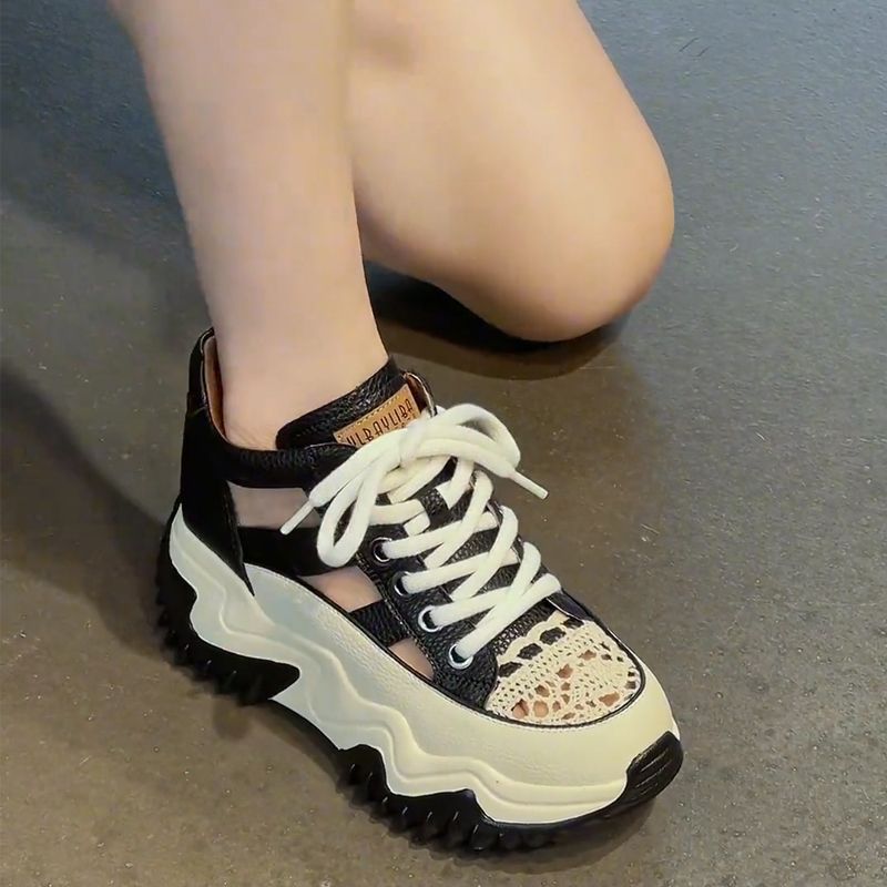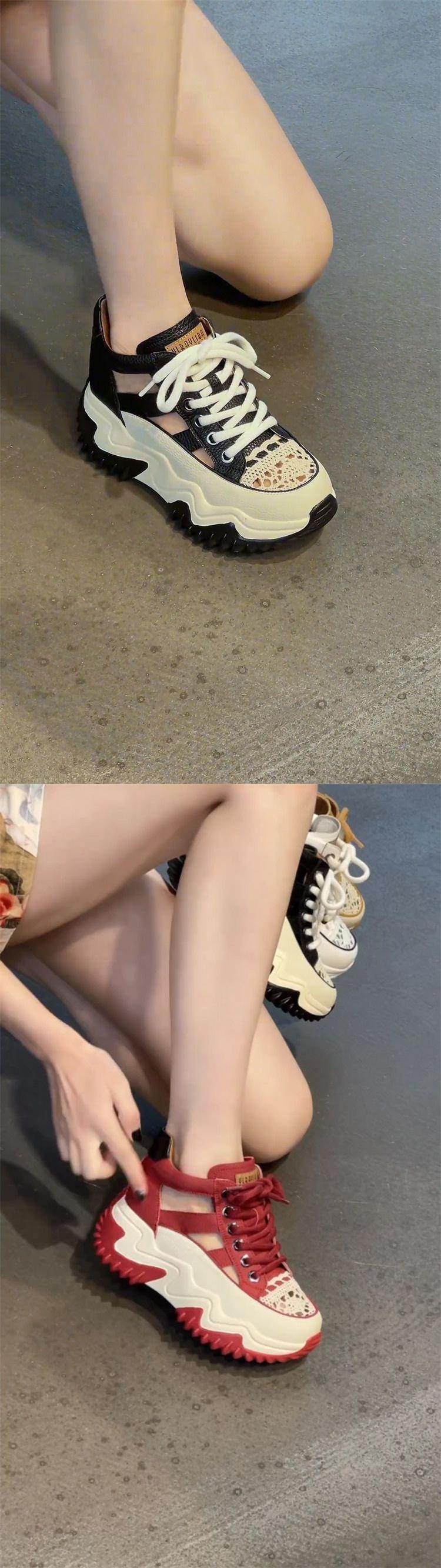 Torre Shoes Женские кроссовки из натуральной воловьей кожи 2023 Новые летние полые повседневные кроссовки на толстой подошве с увеличенным ростом