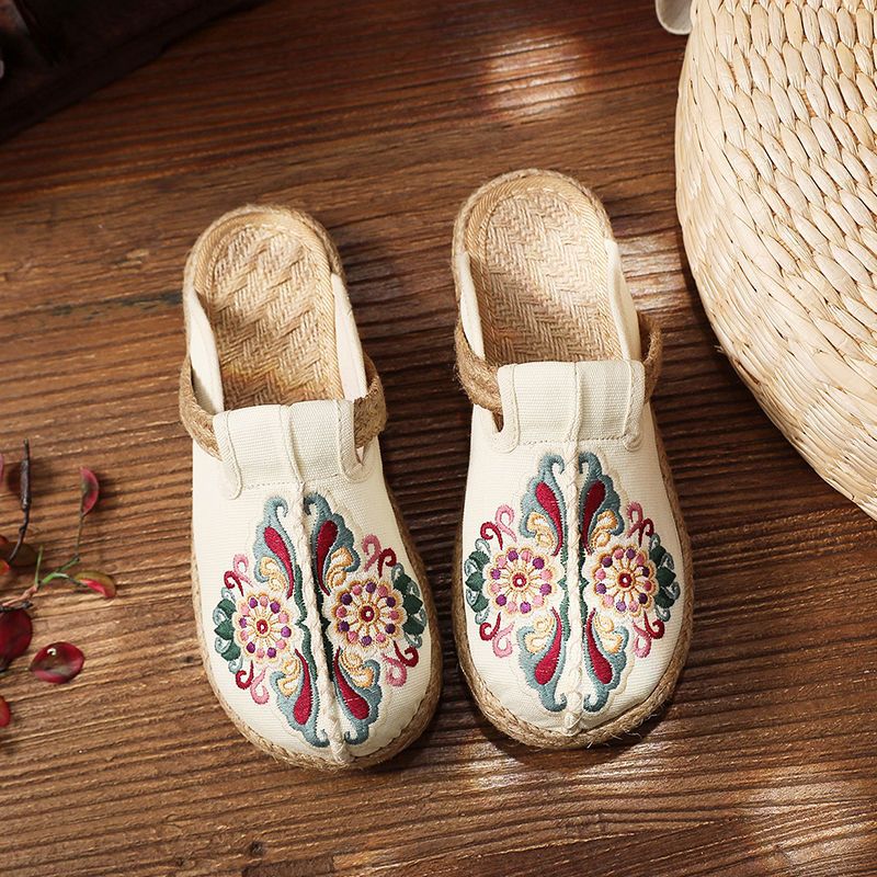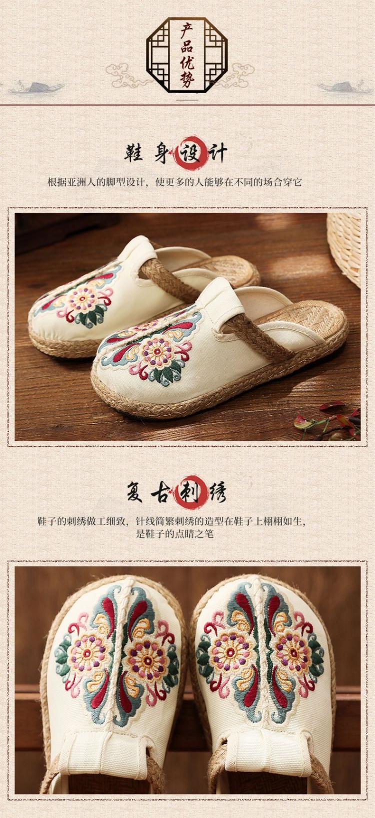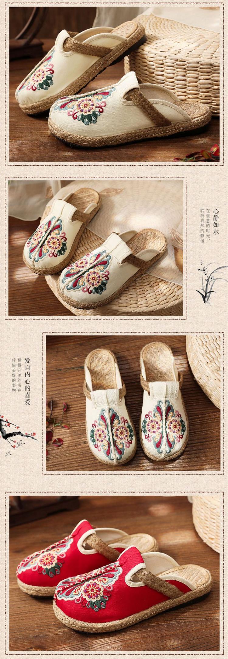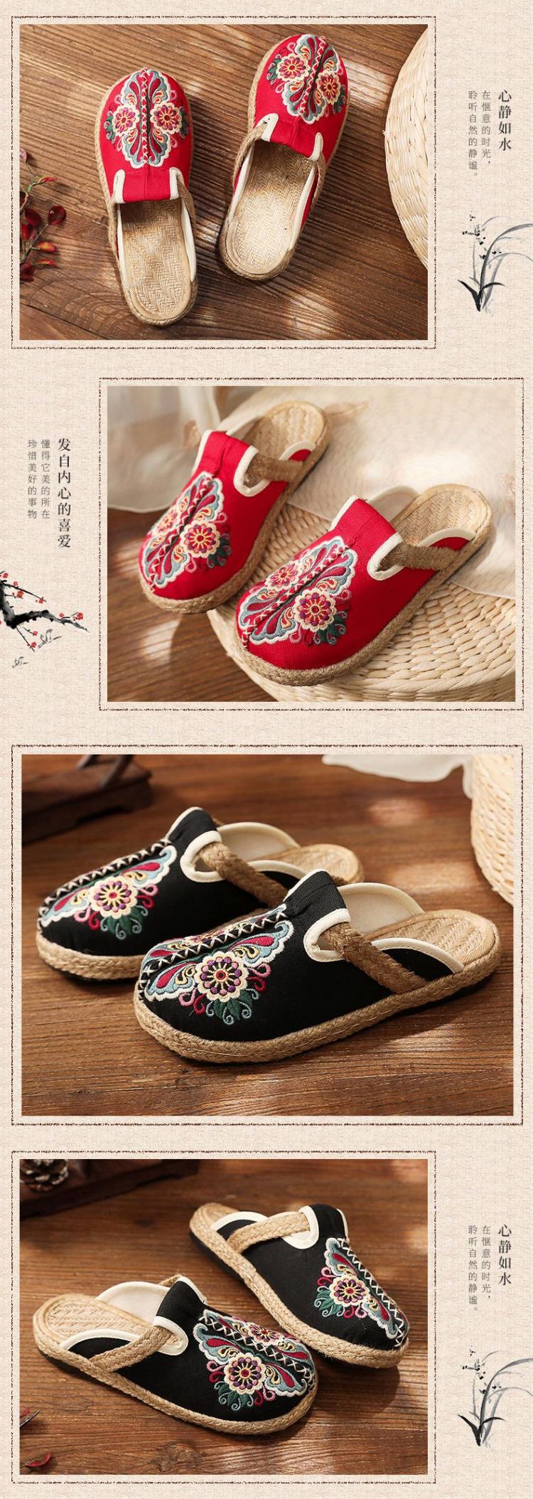 Новая Тканевая обувь с вышивкой, Женская дышащая обувь с круглым носком, старая Пекинская льняная обувь с вышивкой, домашние тапочки, дышащие ленивые на плоской подошве