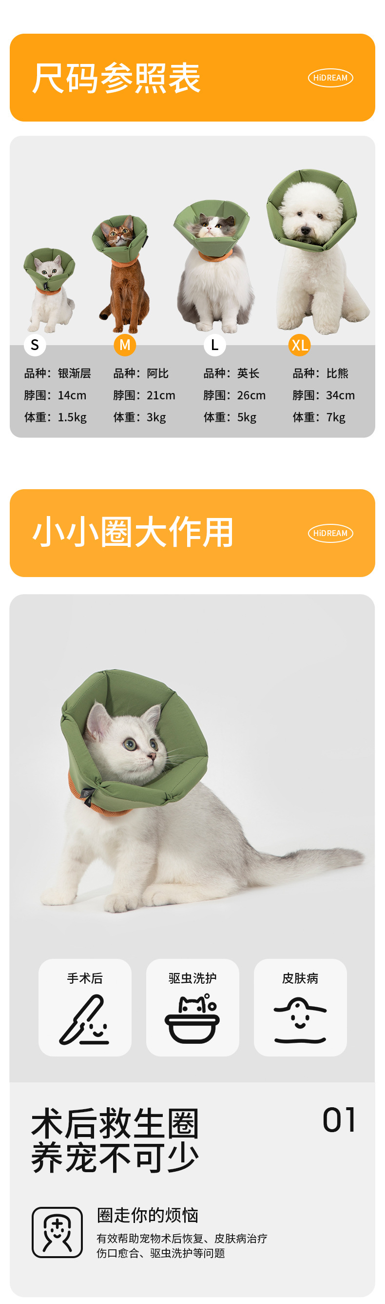 HiDREAM Elizabeth круг для собак и кошек позор круг против лизания углубленный кастрированный большой капюшон для собак
