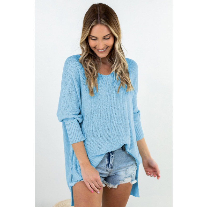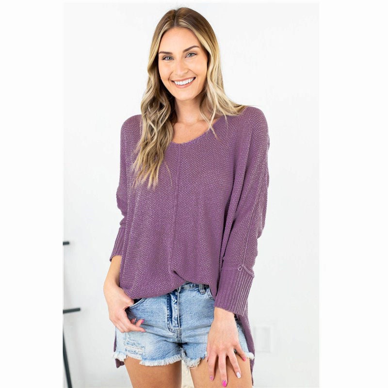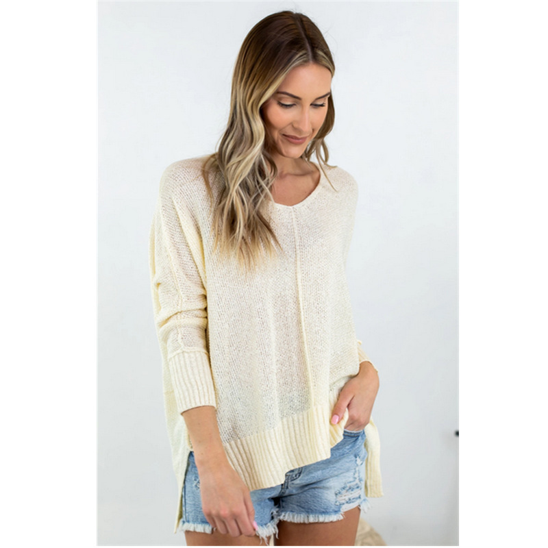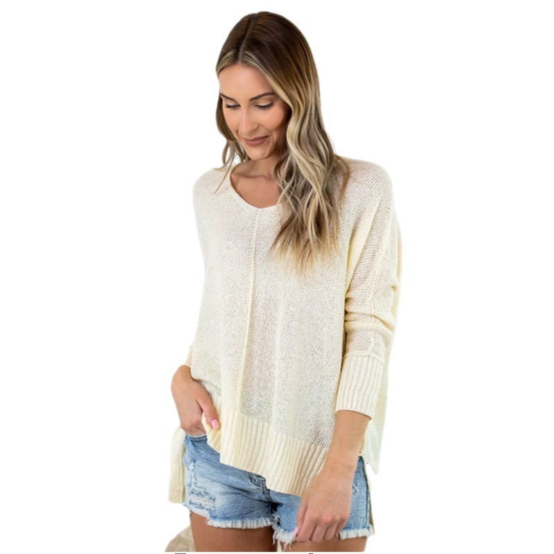 2023 осенне-зимний женский свитер, Европейское и американское новое желание, однотонный Повседневный вязаный свитер с V-образным вырезом и разрезом