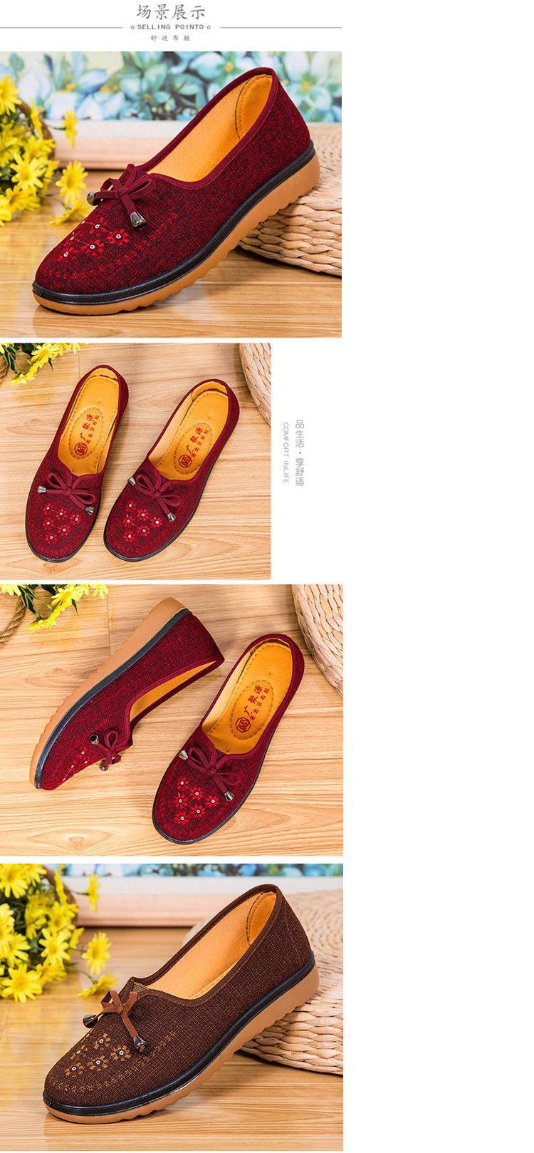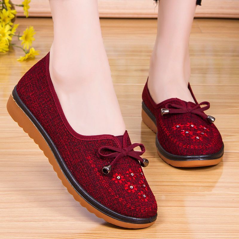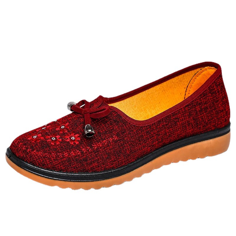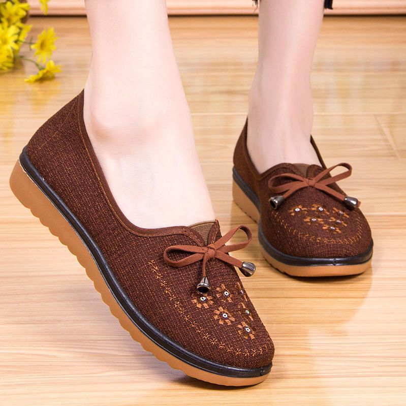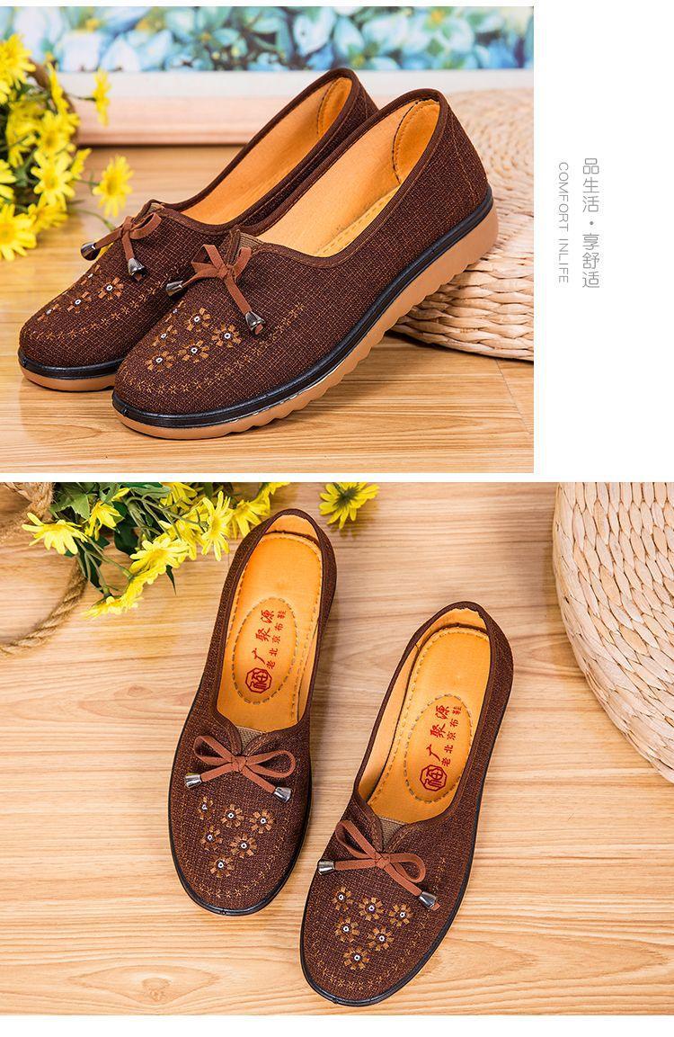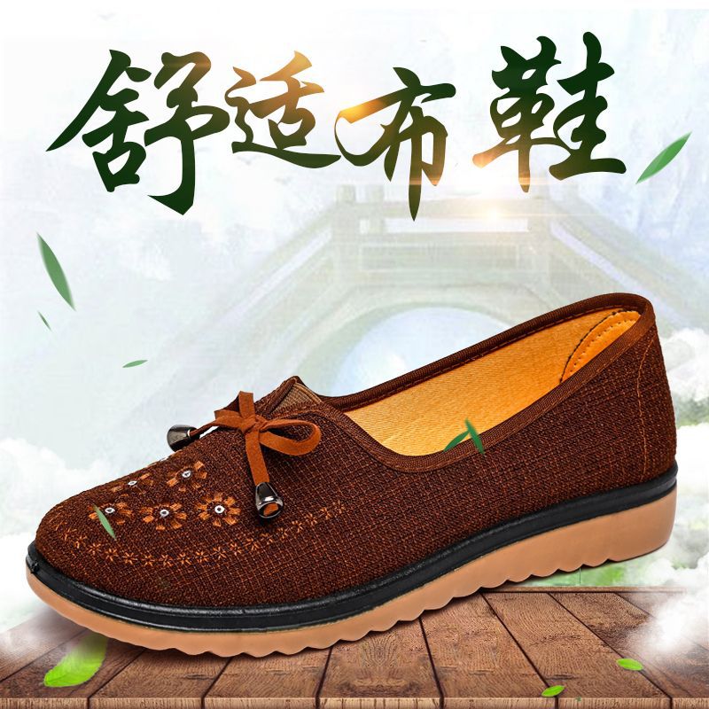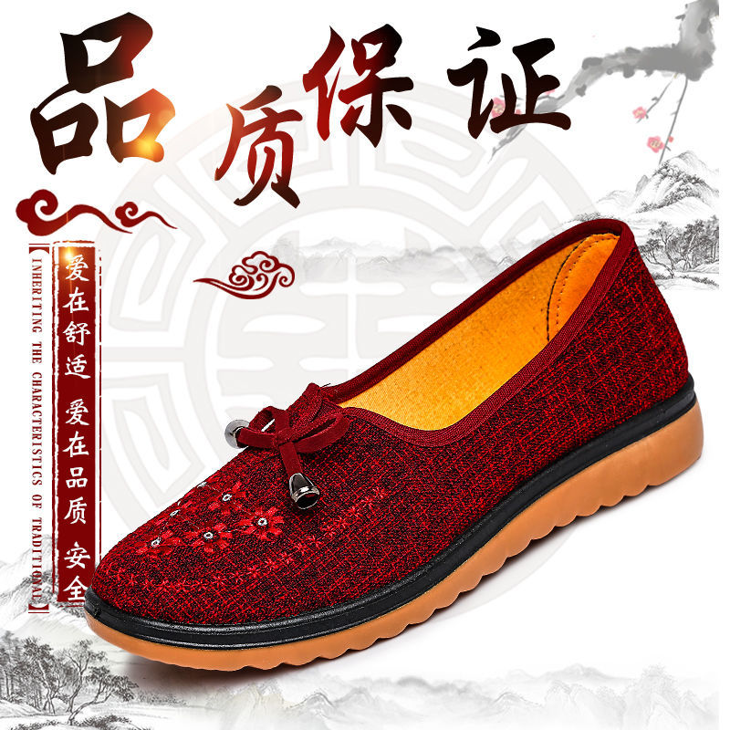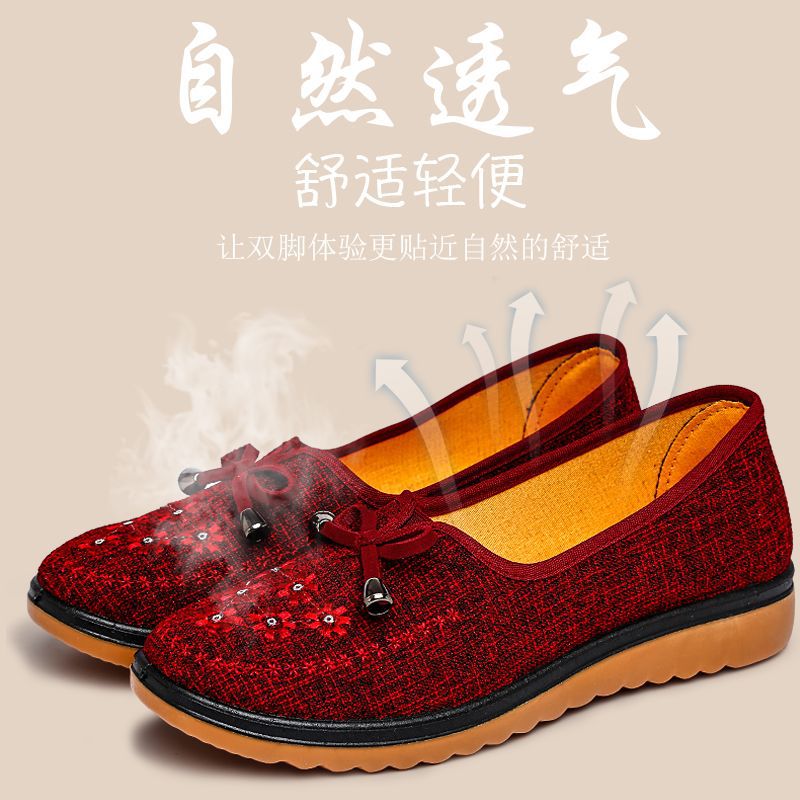 Весенне-осенняя Тканевая обувь Old Beijing Женская одиночная обувь для среднего и пожилого возраста без шнуровки с говяжьей подошвой Обувь для мам Нескользящая молочная обувь с мягкой подошвой