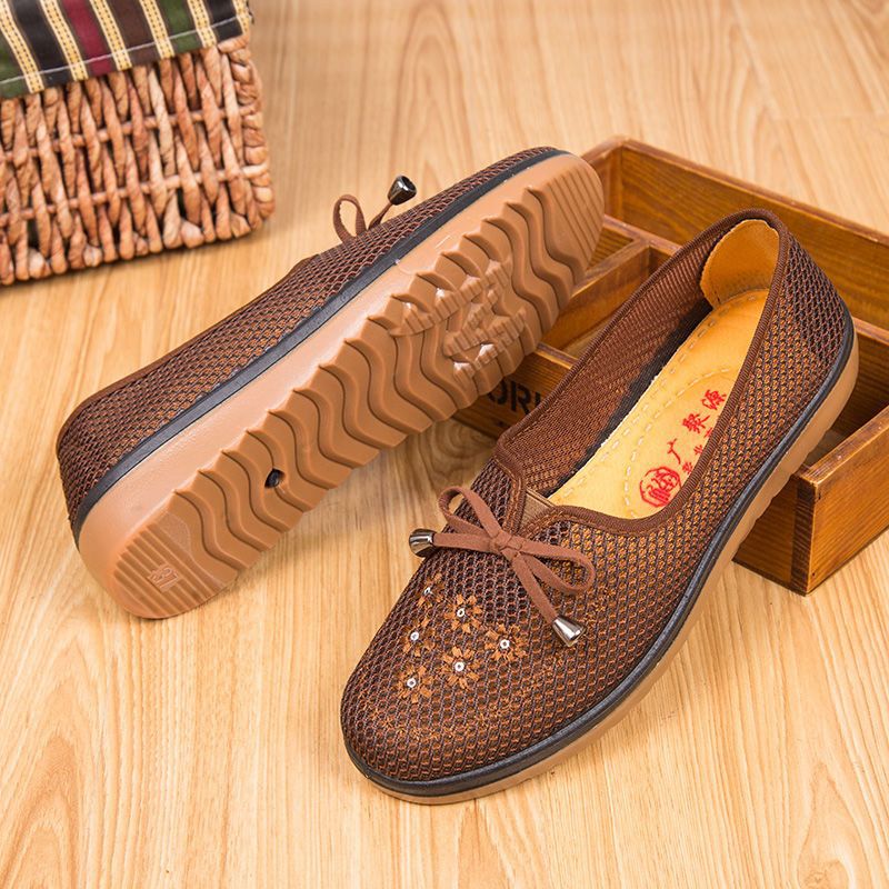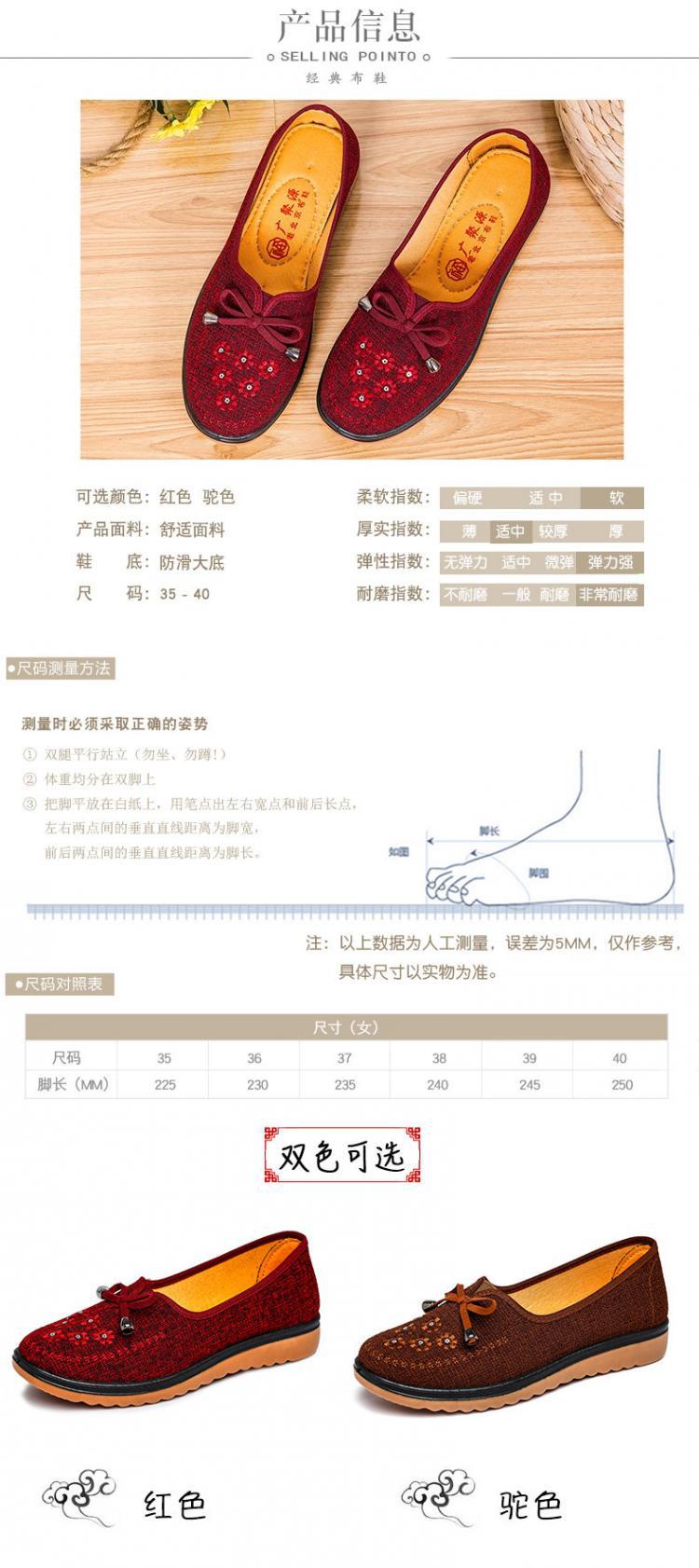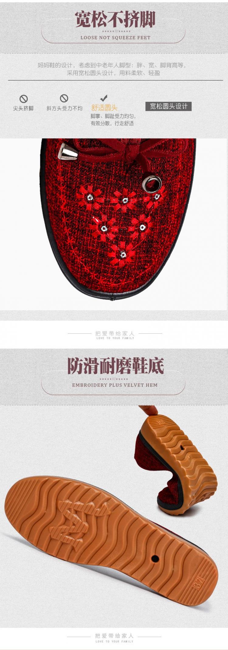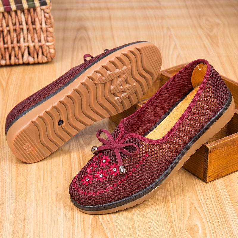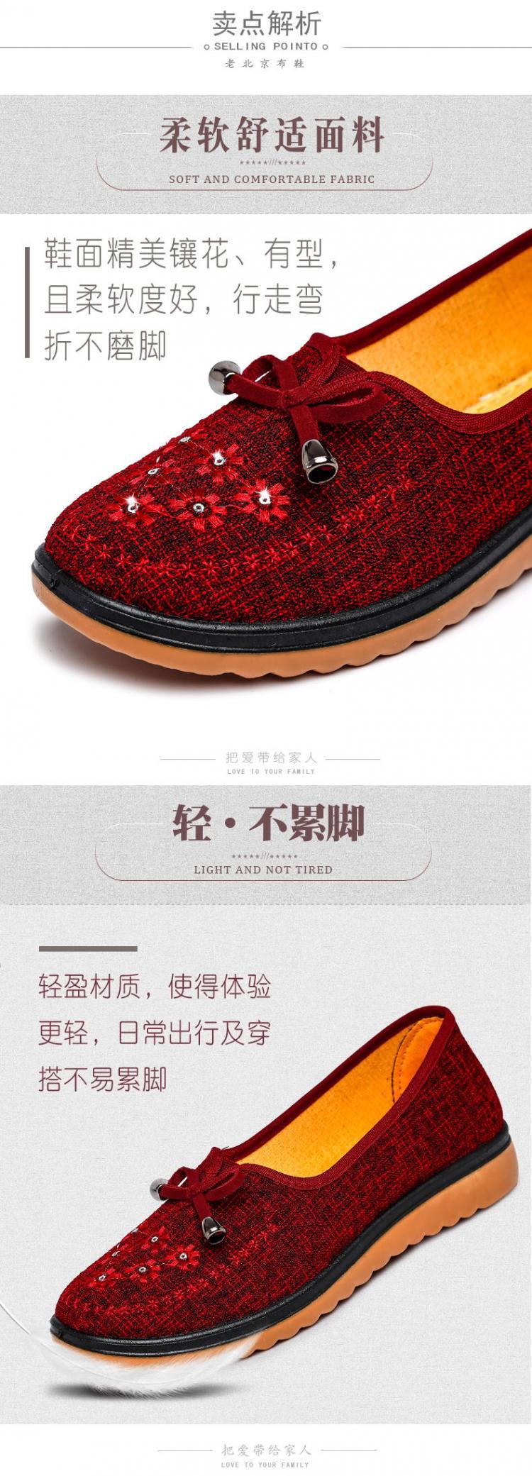 Весенне-осенняя Тканевая обувь Old Beijing Женская одиночная обувь для среднего и пожилого возраста без шнуровки с говяжьей подошвой Обувь для мам Нескользящая молочная обувь с мягкой подошвой