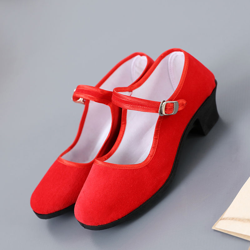 Тканевая обувь Old Beijing Женская обувь на высоком каблуке Черно-красная этническая танцевальная обувь Экзаменационная практика Замшевая обувь Yangko Tooling Shoes