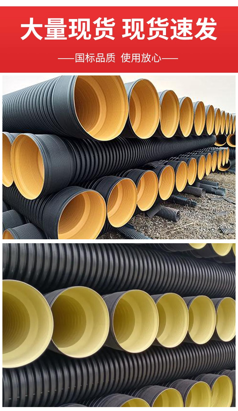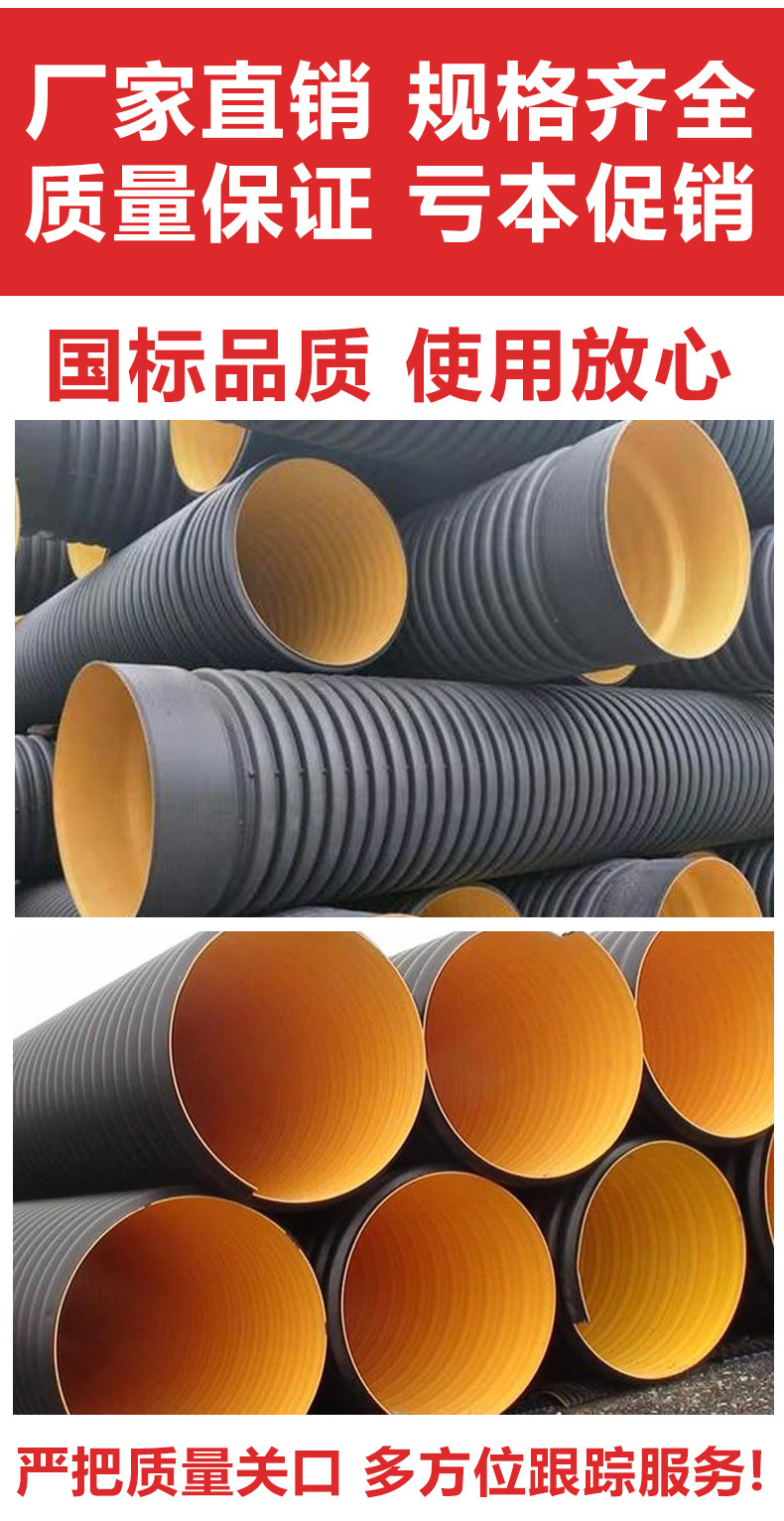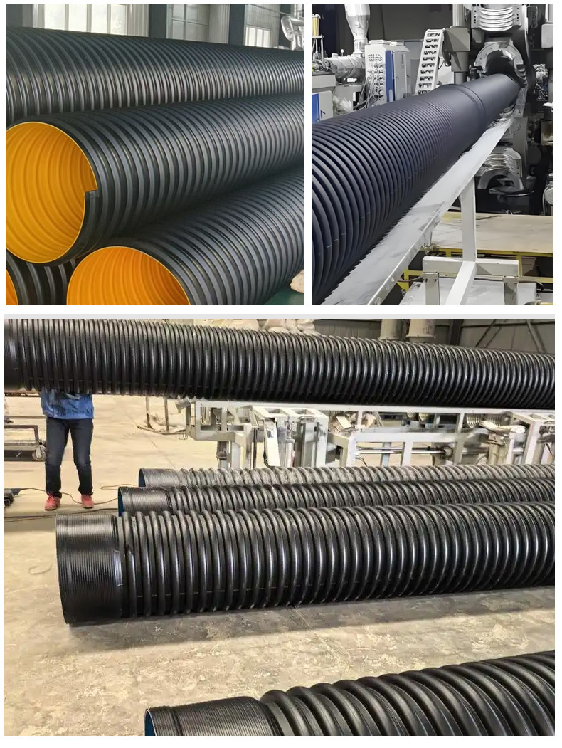 Гофрированная труба из ПНД с двойными стенками, черная стальная лента, гофрированная труба, водопроводная труба большого диаметра, гофрированная труба, труба для дренажа городских сточных вод