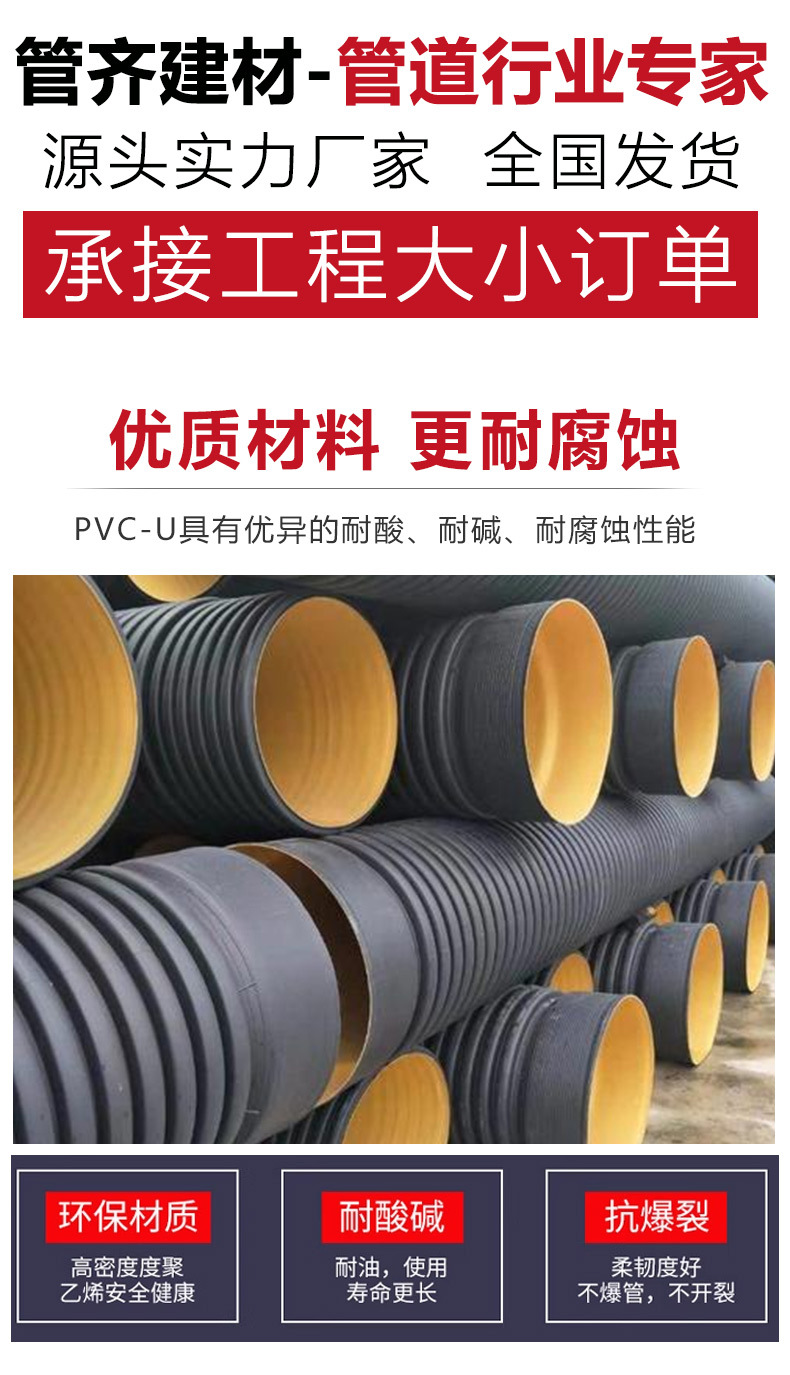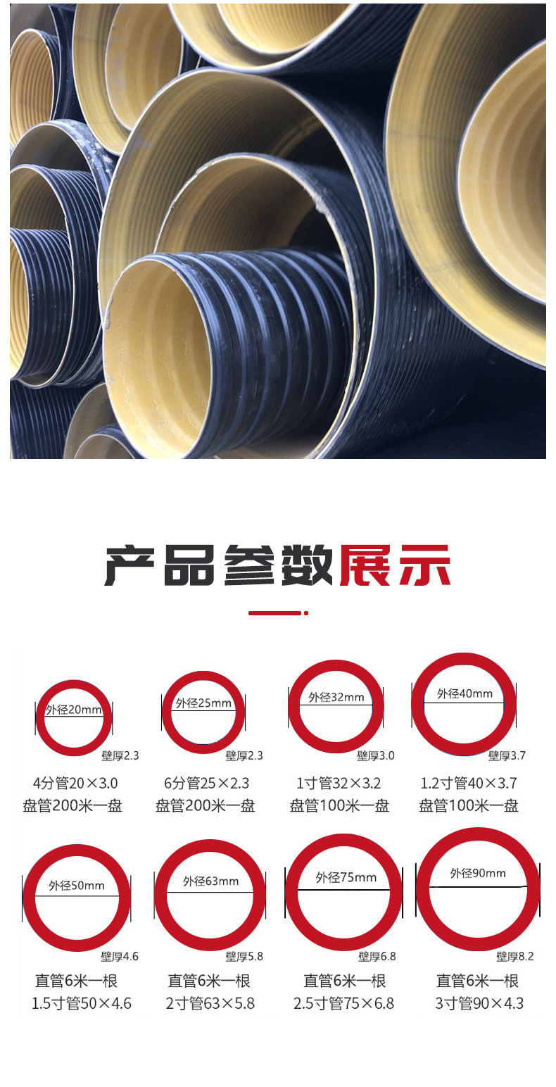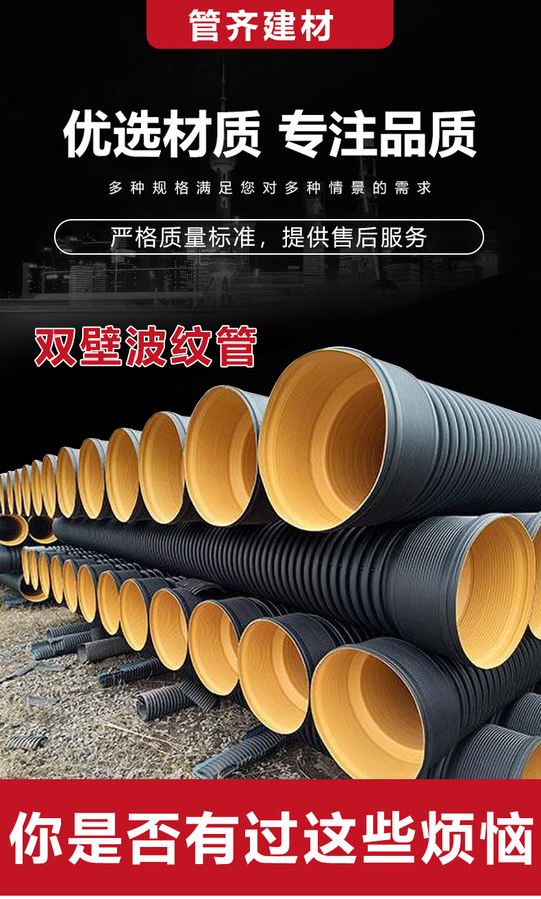 Гофрированная труба из ПНД с двойными стенками, черная стальная лента, гофрированная труба, водопроводная труба большого диаметра, гофрированная труба, труба для дренажа городских сточных вод