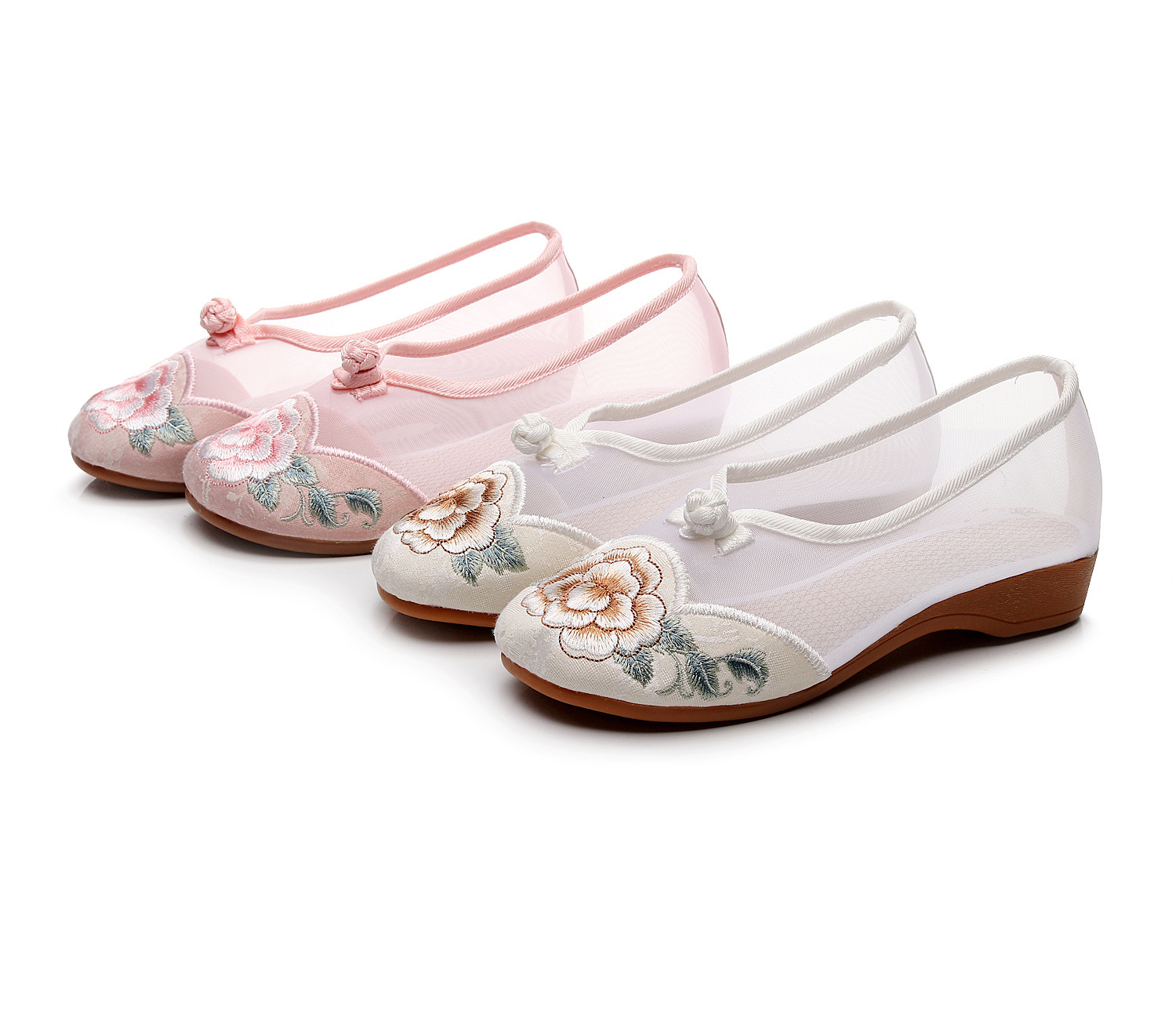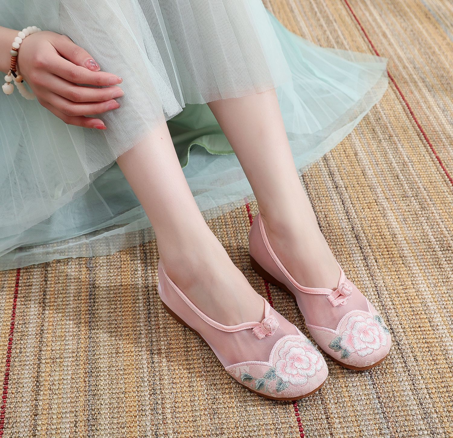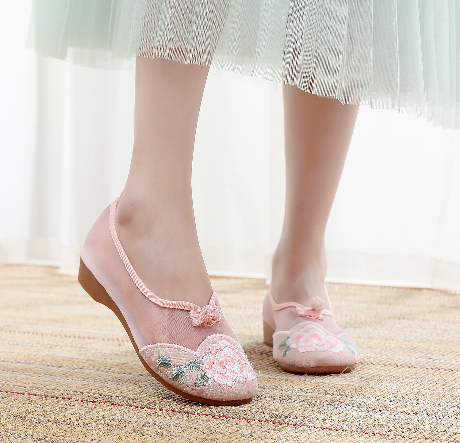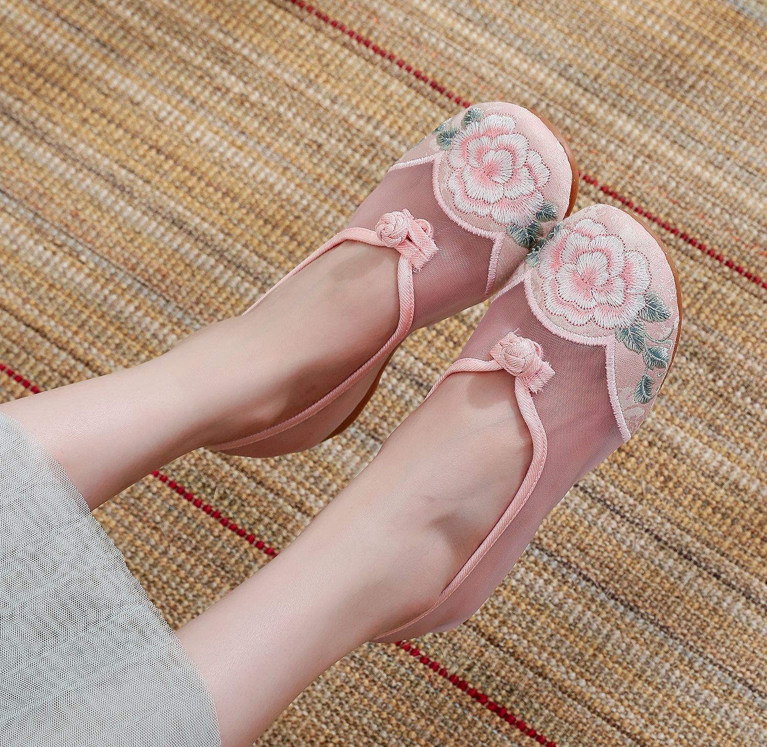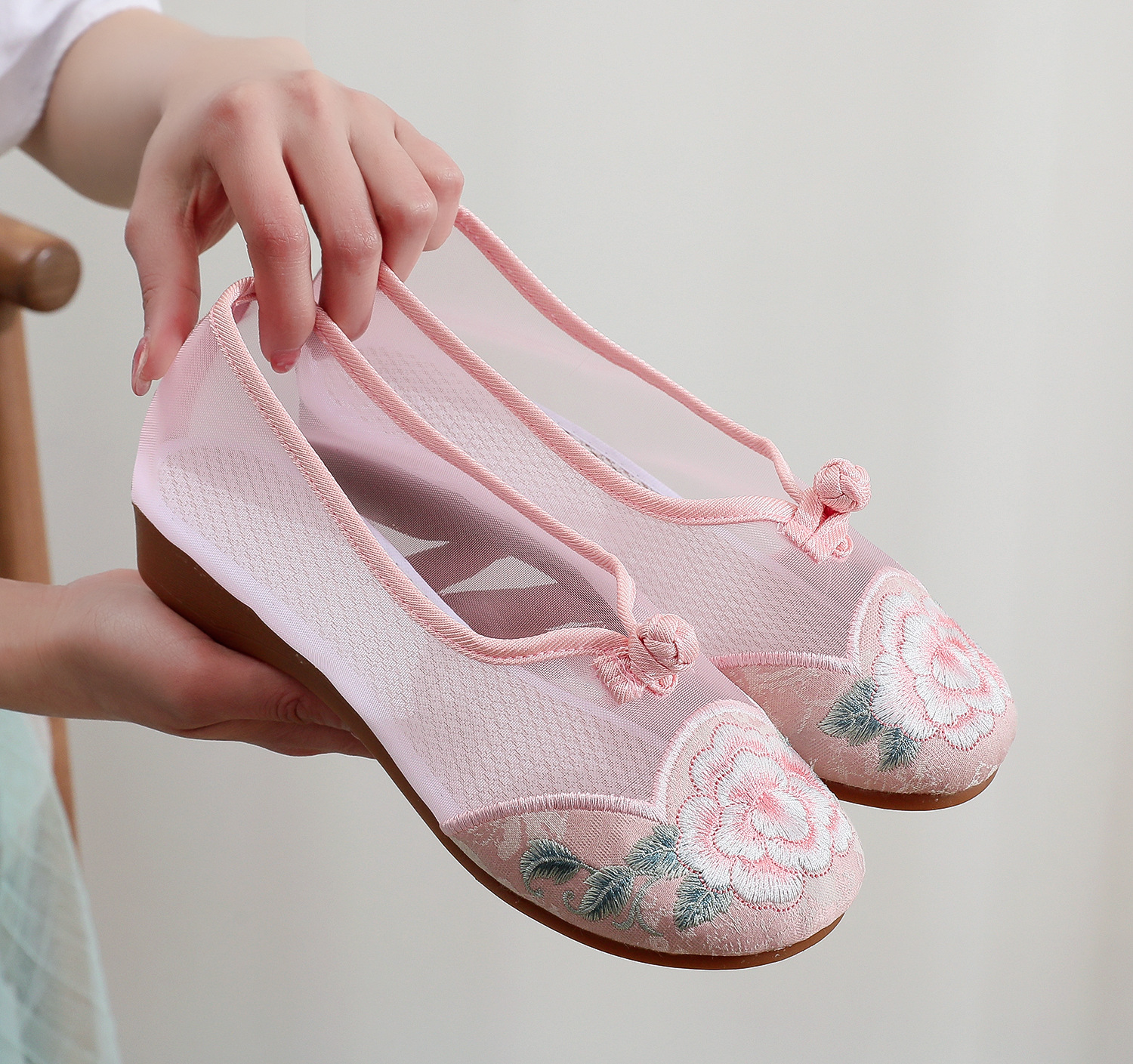 [Сетчатый пион] 2024 Летняя новая сетчатая дышащая обувь ханьфу в старинном стиле обувь с вышивкой в этническом стиле
