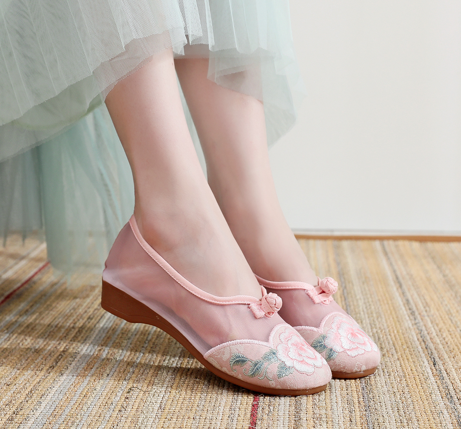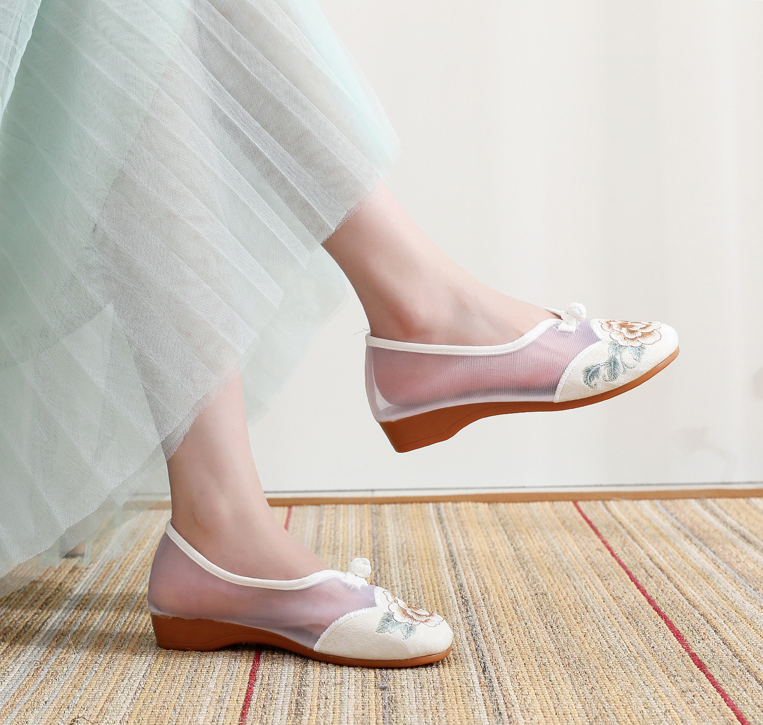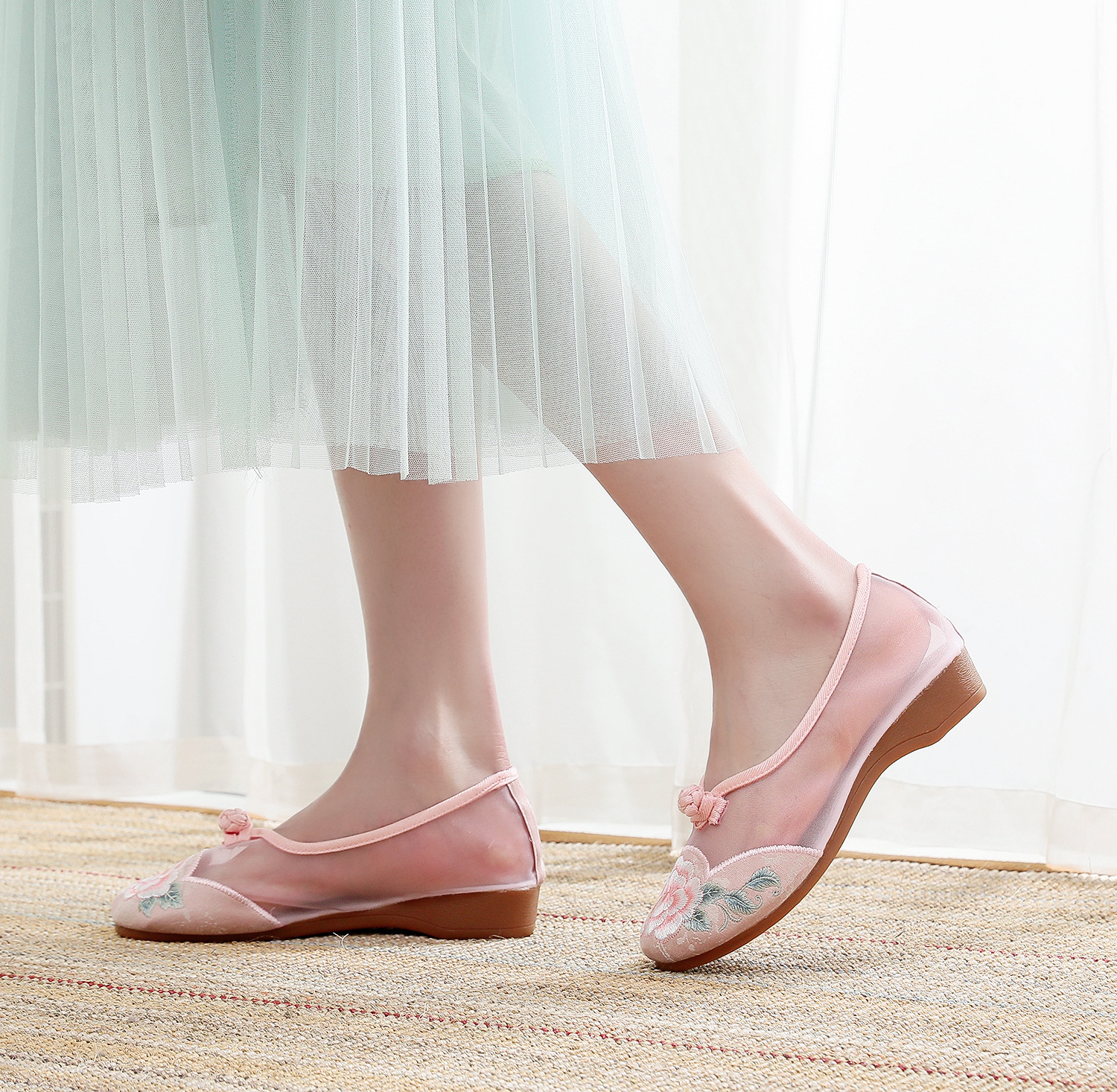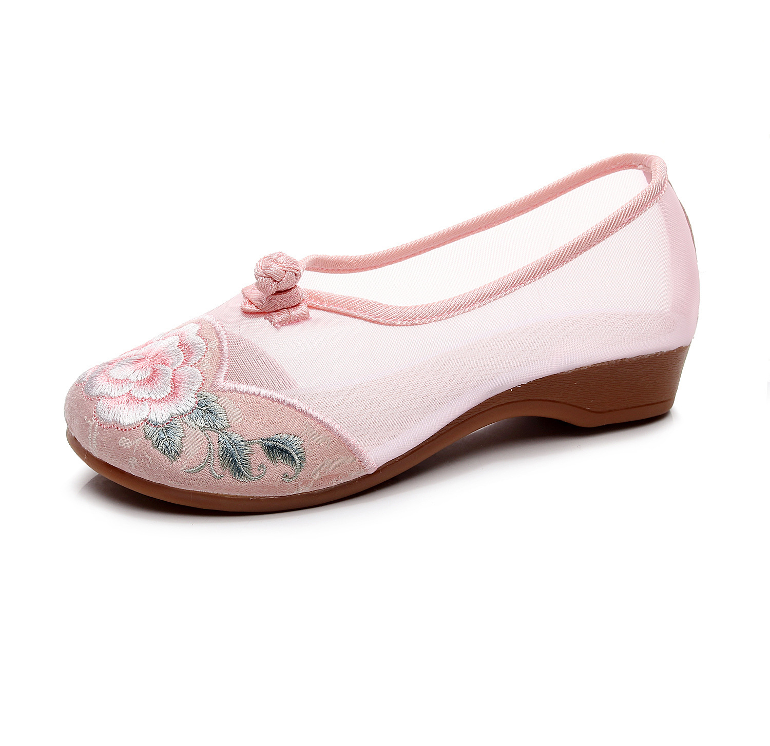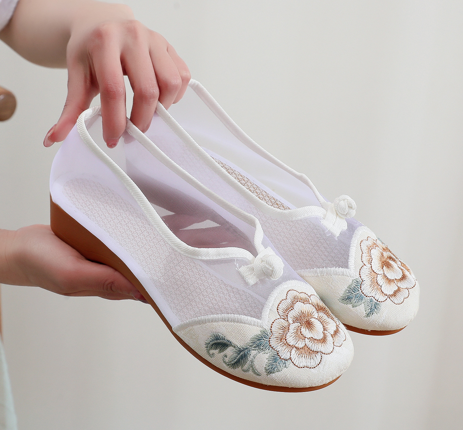 [Сетчатый пион] 2024 Летняя новая сетчатая дышащая обувь ханьфу в старинном стиле обувь с вышивкой в этническом стиле