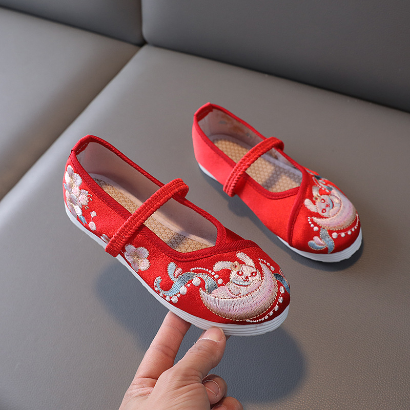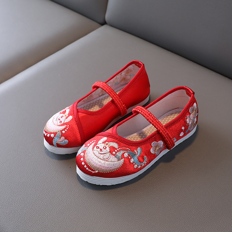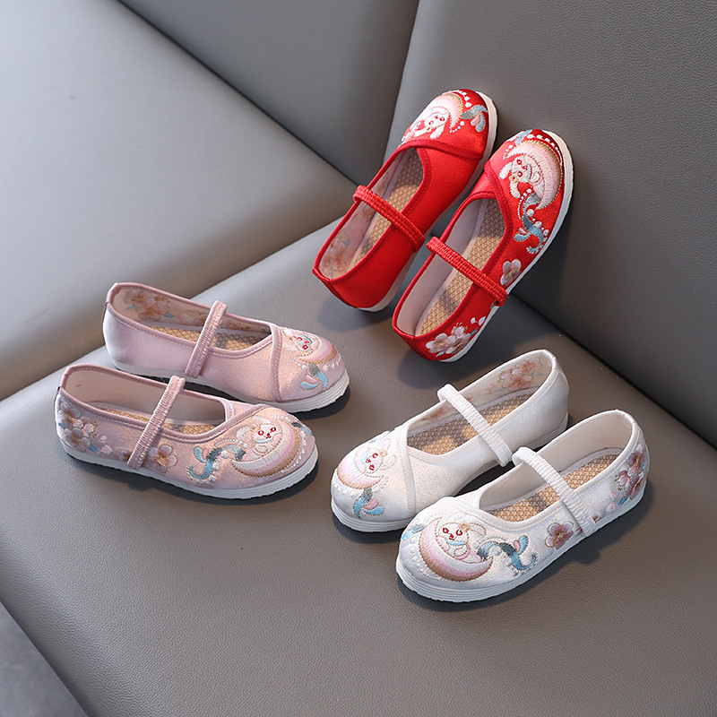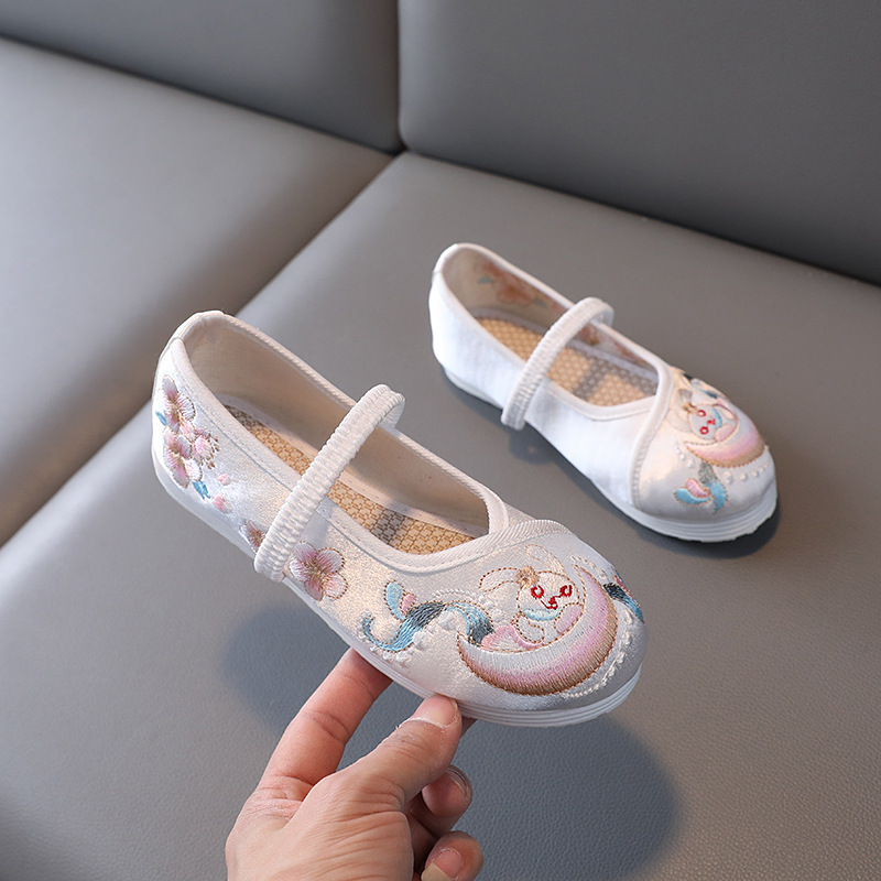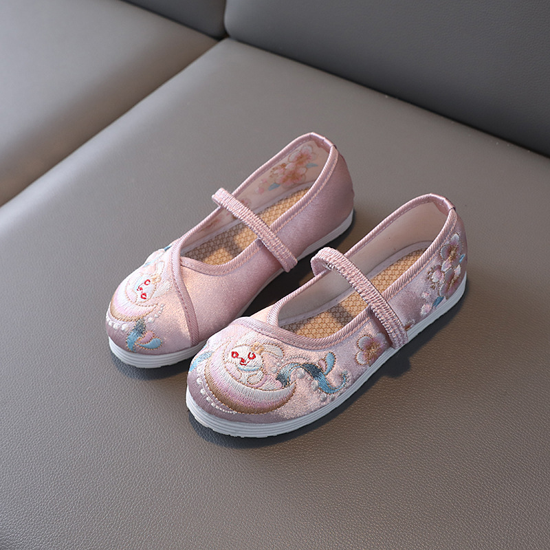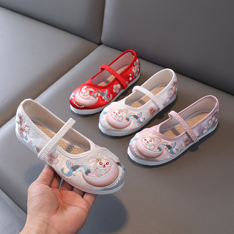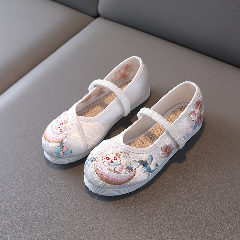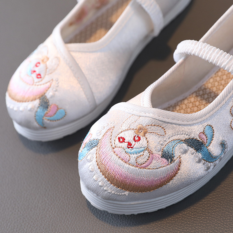 [Лунный Кролик] 2023 Весенняя новая детская обувь ханьфу с вышивкой в национальном стиле, старинный костюм, обувь с вышивкой, танцевальная обувь для девочек