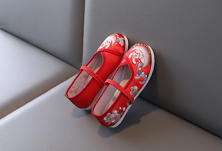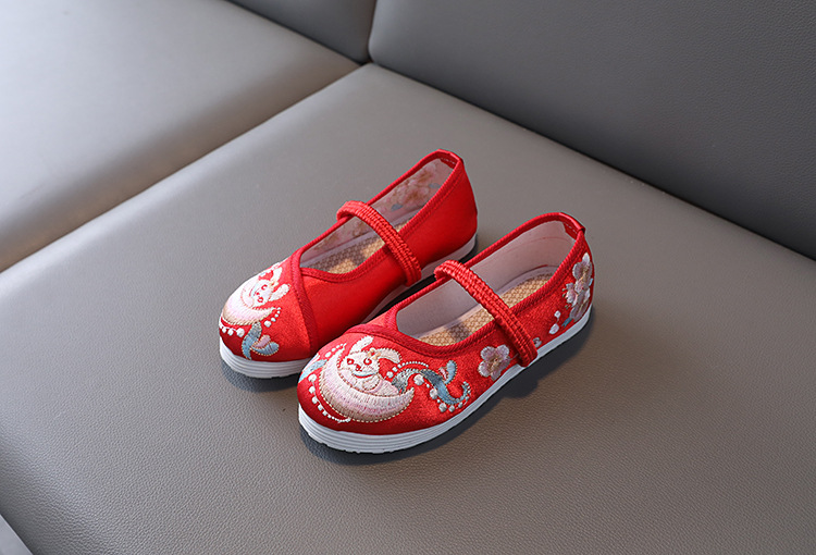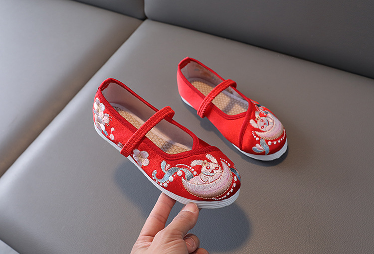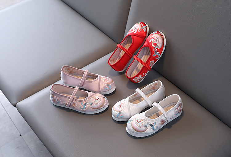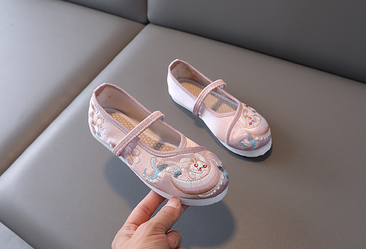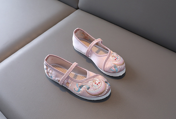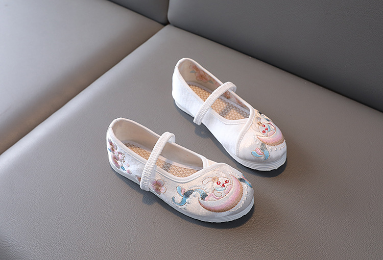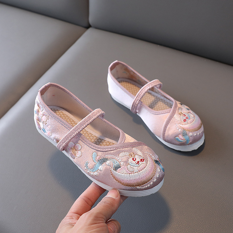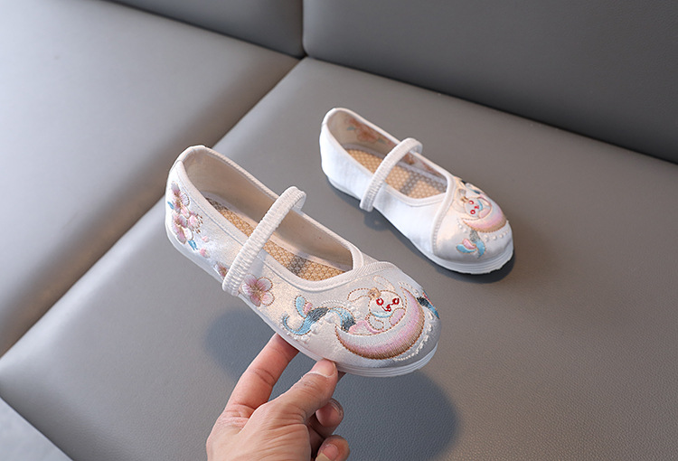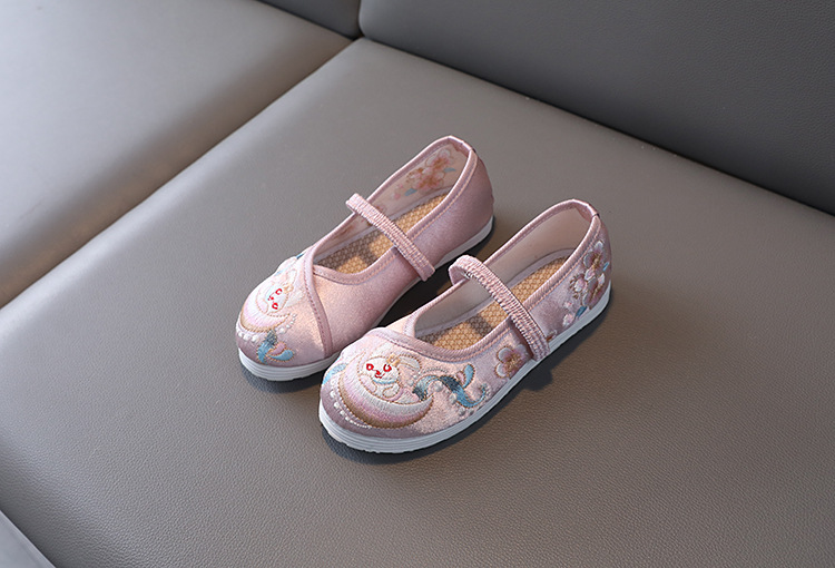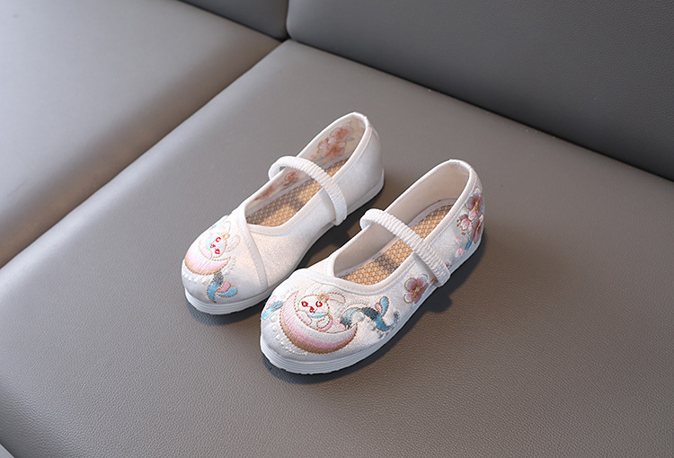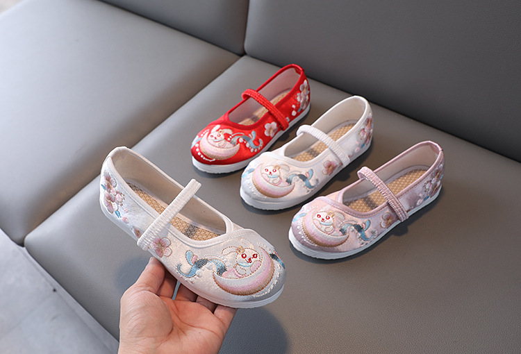 [Лунный Кролик] 2023 Весенняя новая детская обувь ханьфу с вышивкой в национальном стиле, старинный костюм, обувь с вышивкой, танцевальная обувь для девочек