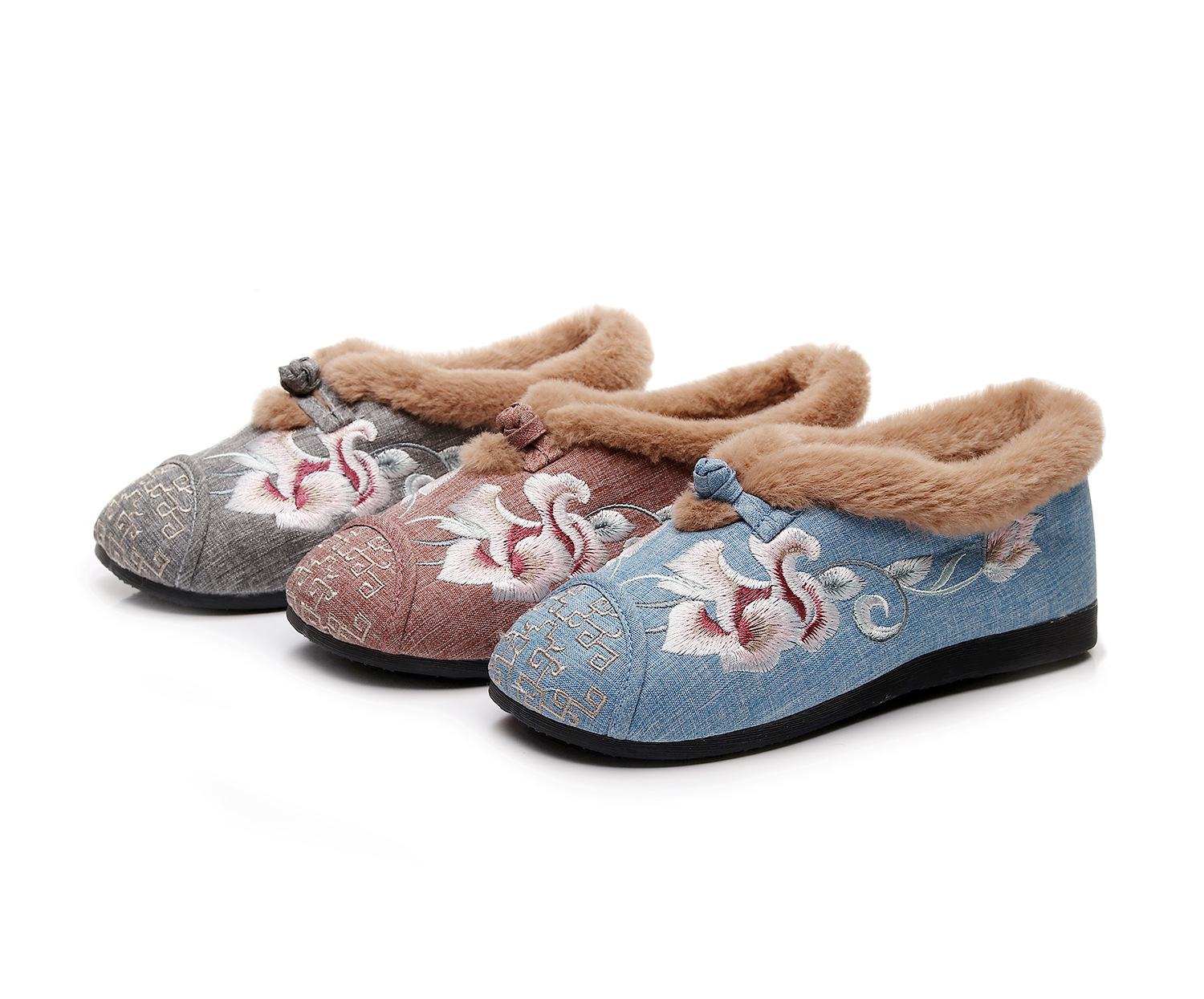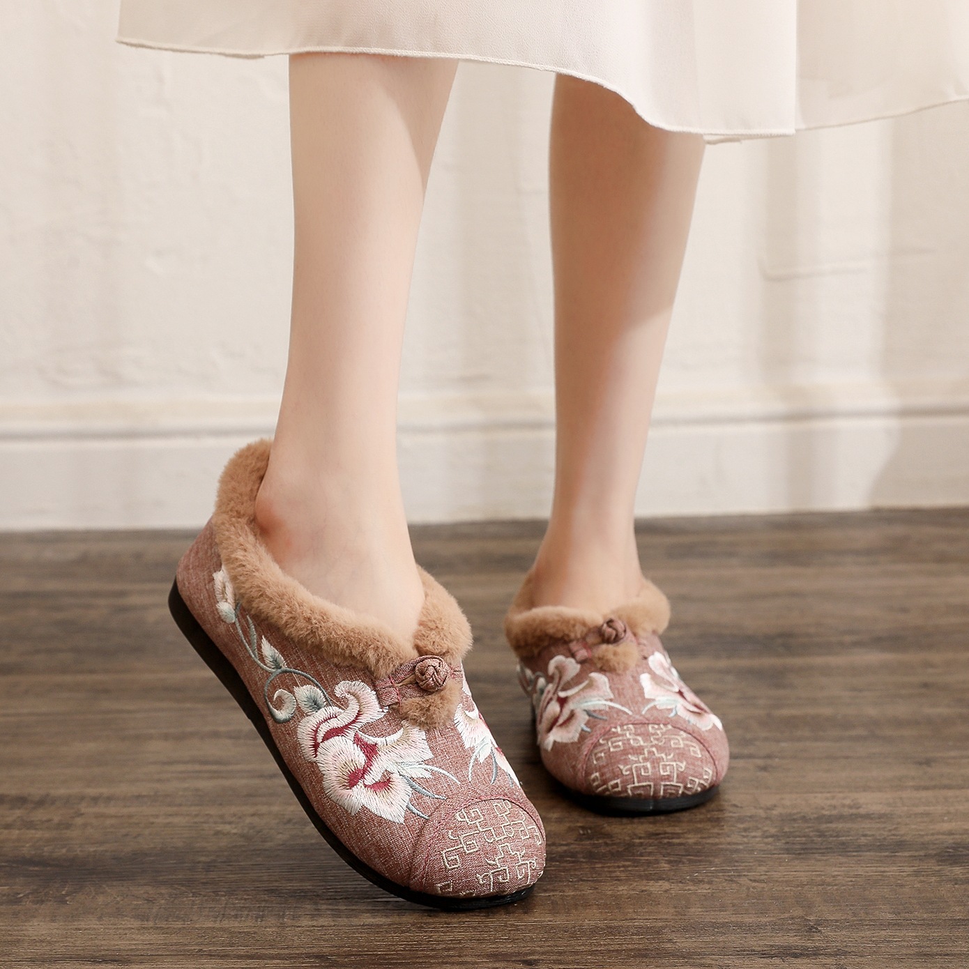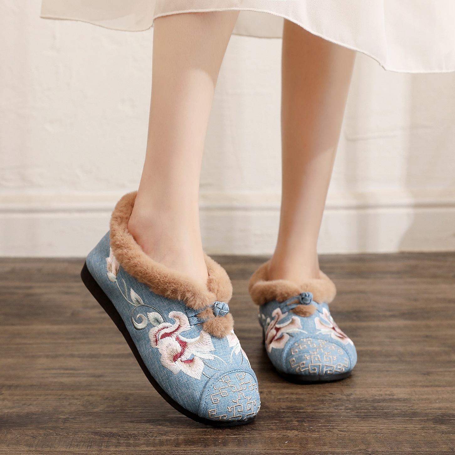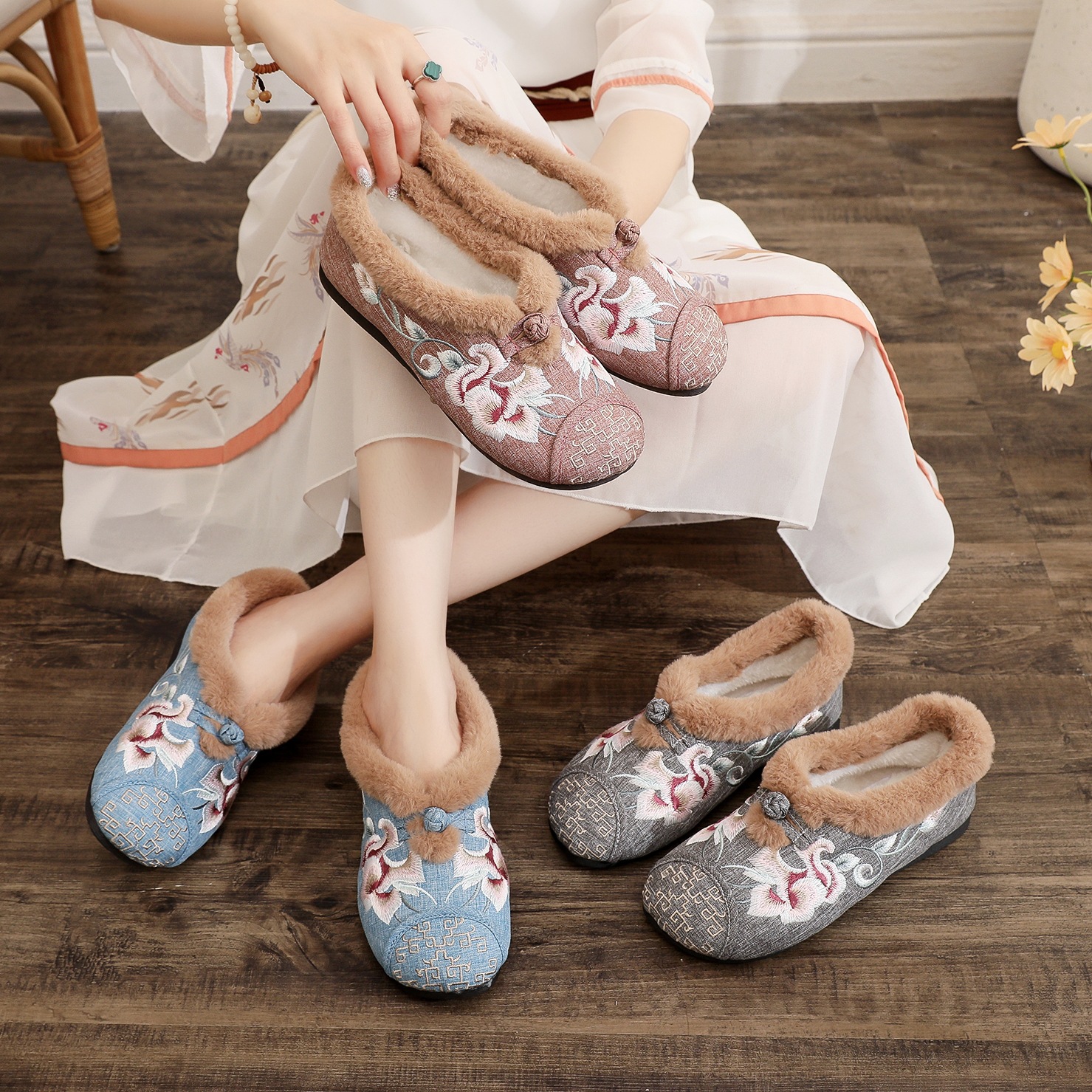 [Yayun] 2024, зимняя плюшевая модная тканевая обувь с круглым носком и вышивкой, осенне-зимняя хлопковая женская обувь без шнуровки