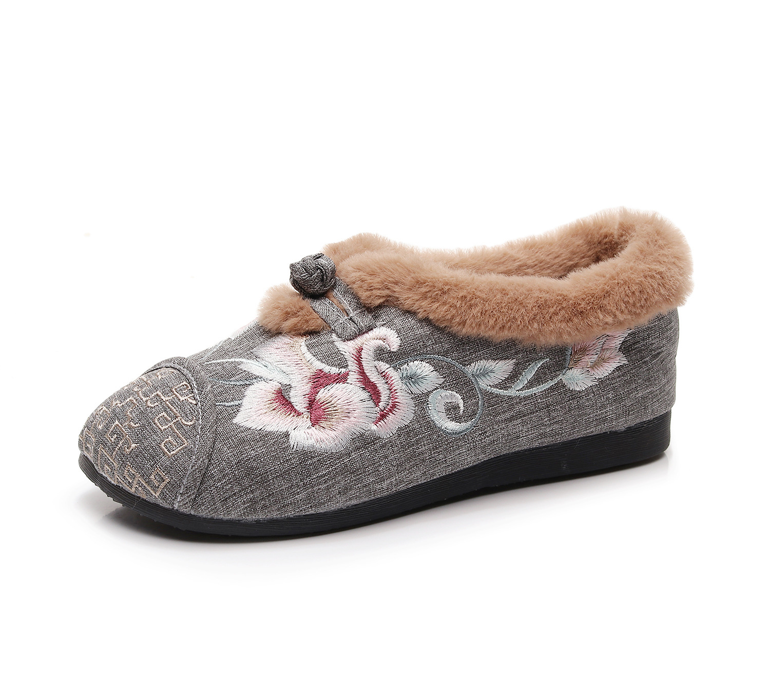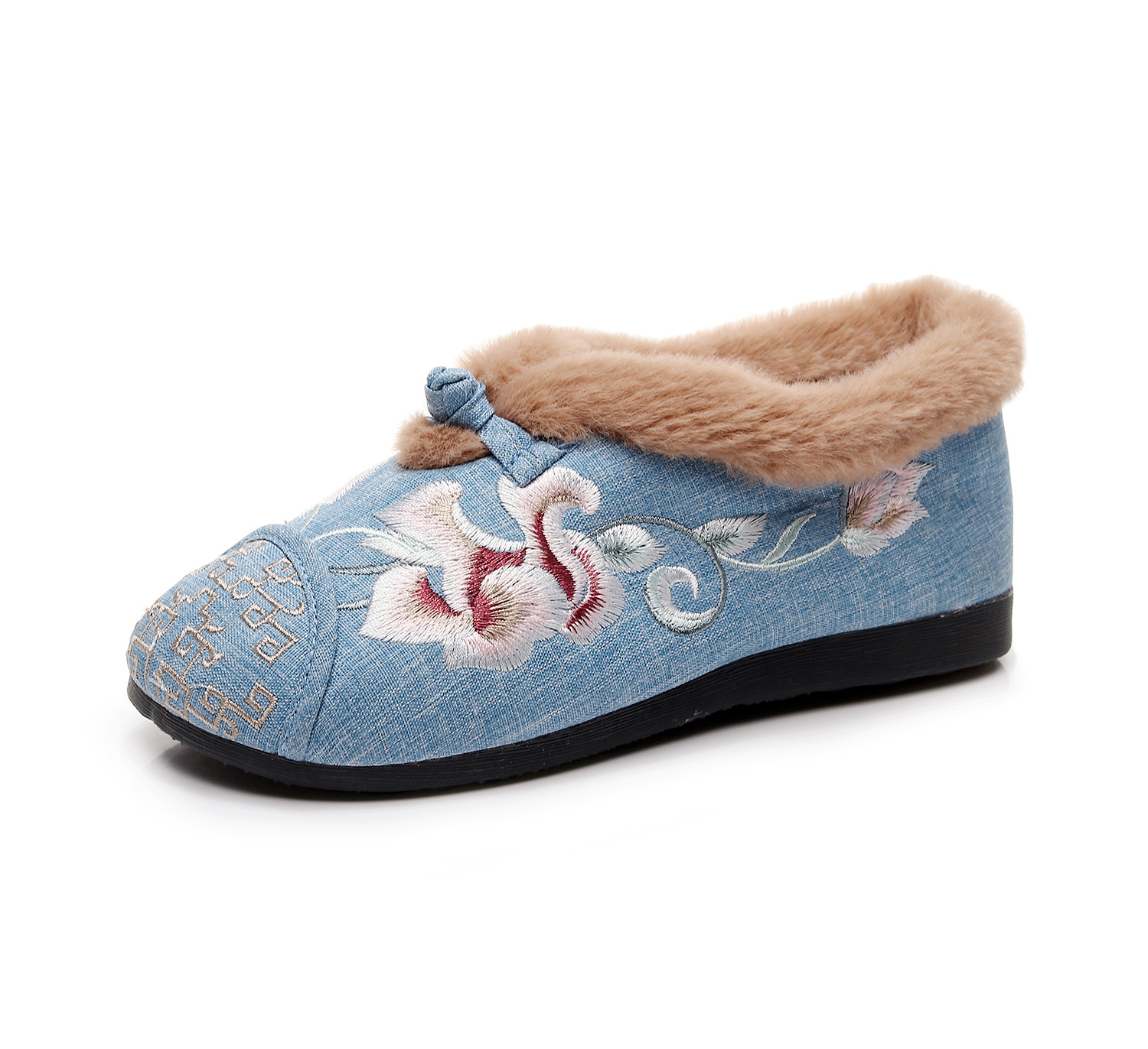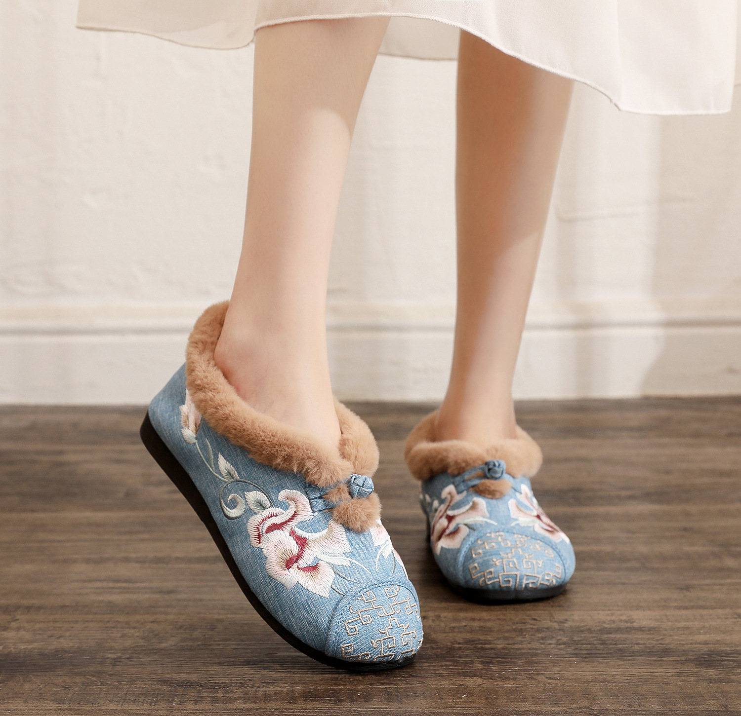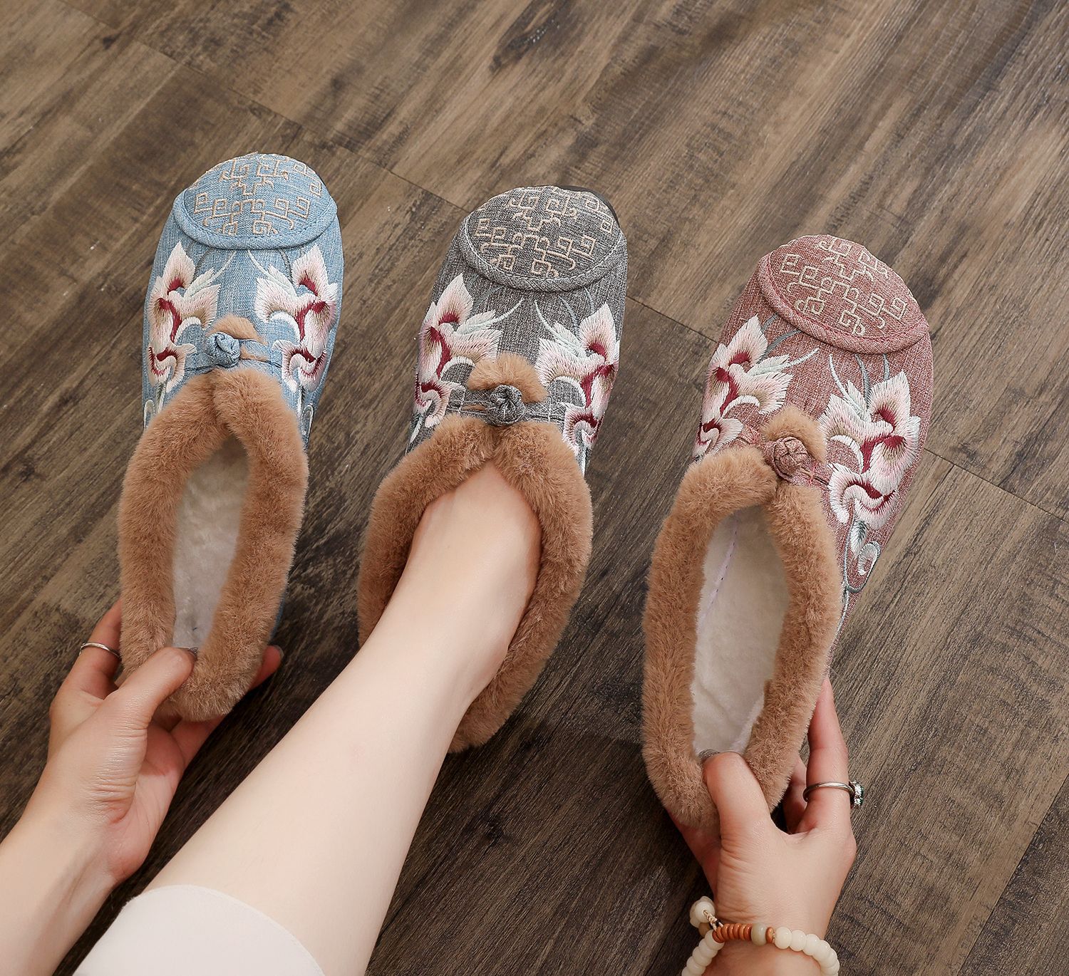 [Yayun] 2024, зимняя плюшевая модная тканевая обувь с круглым носком и вышивкой, осенне-зимняя хлопковая женская обувь без шнуровки