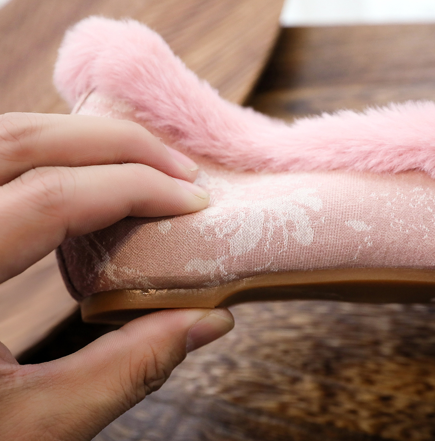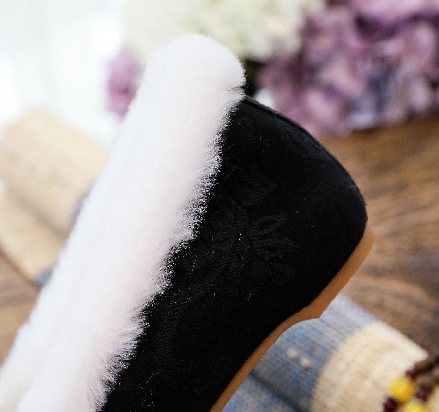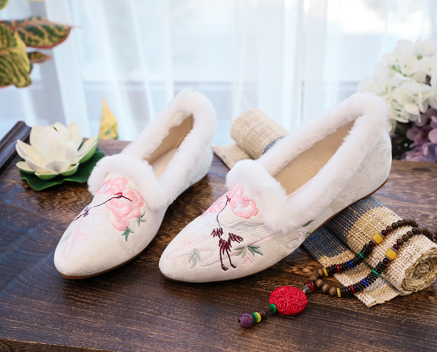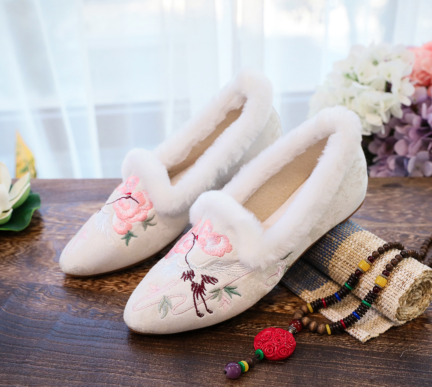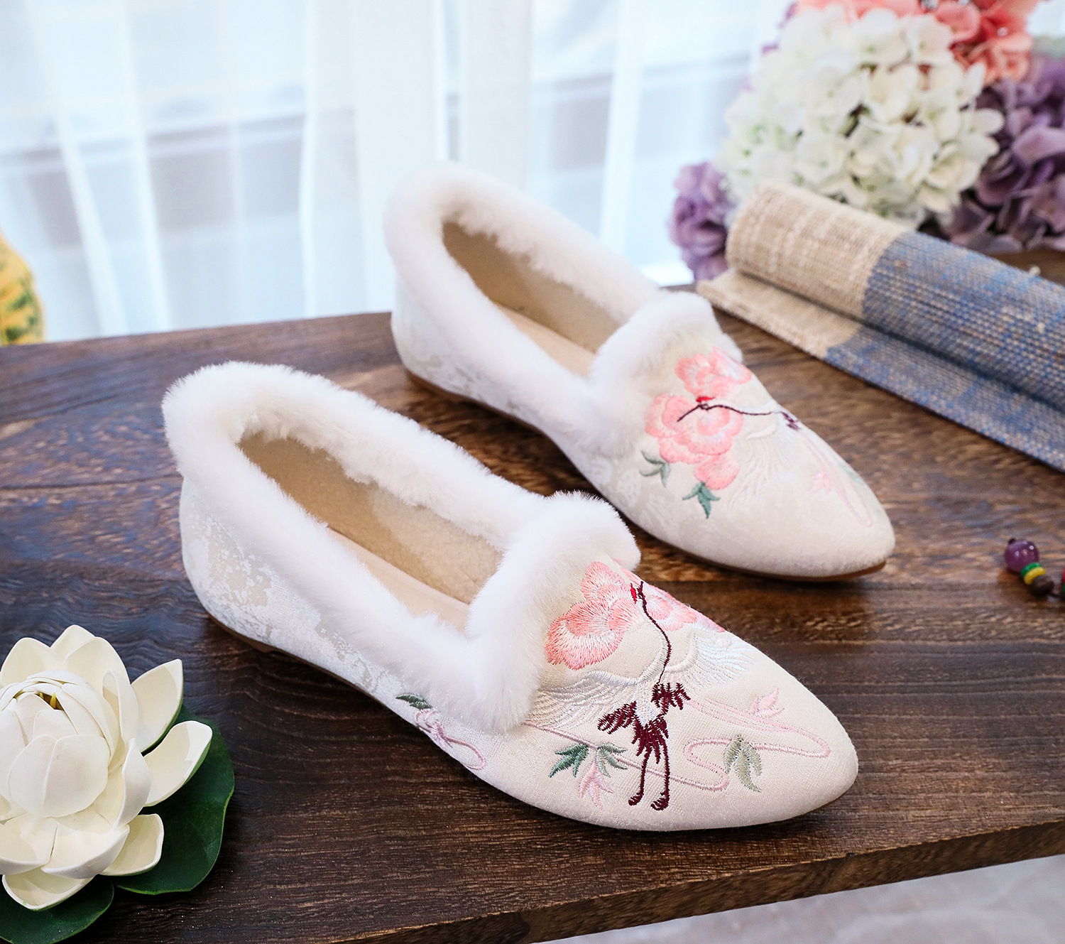 [Crane] новинки 2021 года с пушистым кантом, модная Тканевая обувь с остроконечной вышивкой, осенне-зимняя одношаговая Хлопковая женская обувь