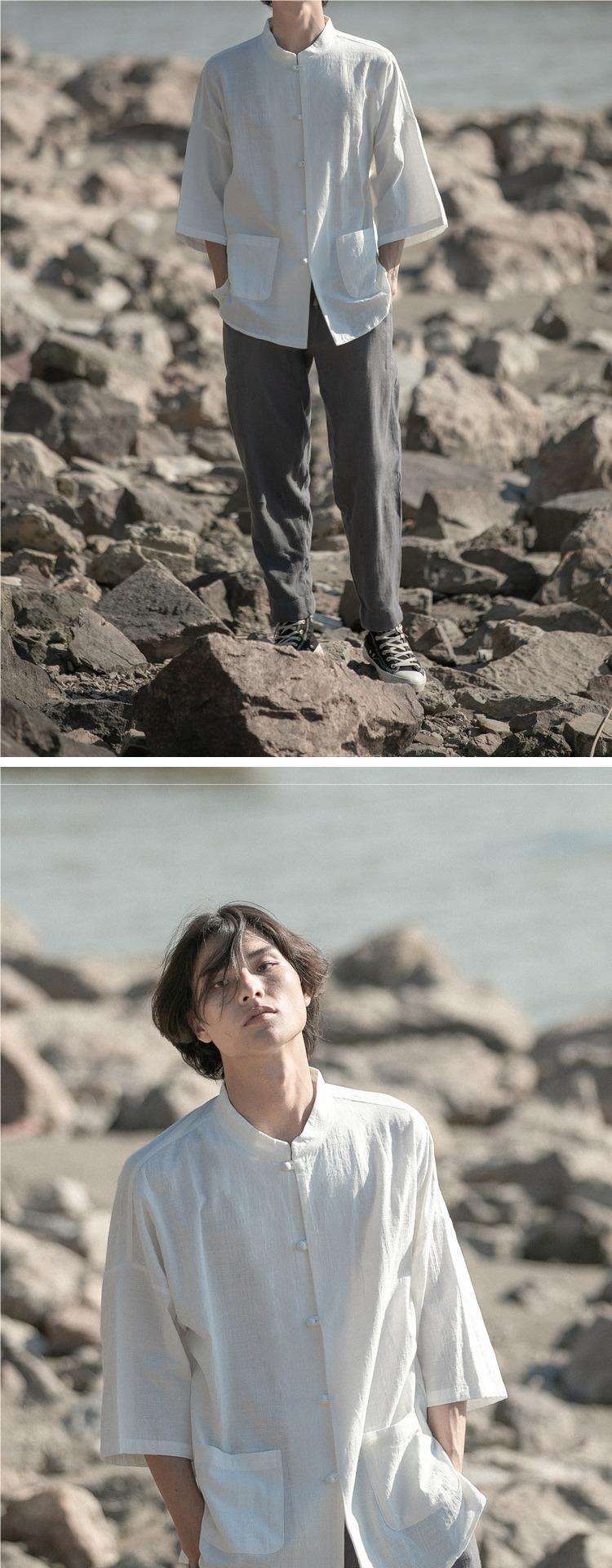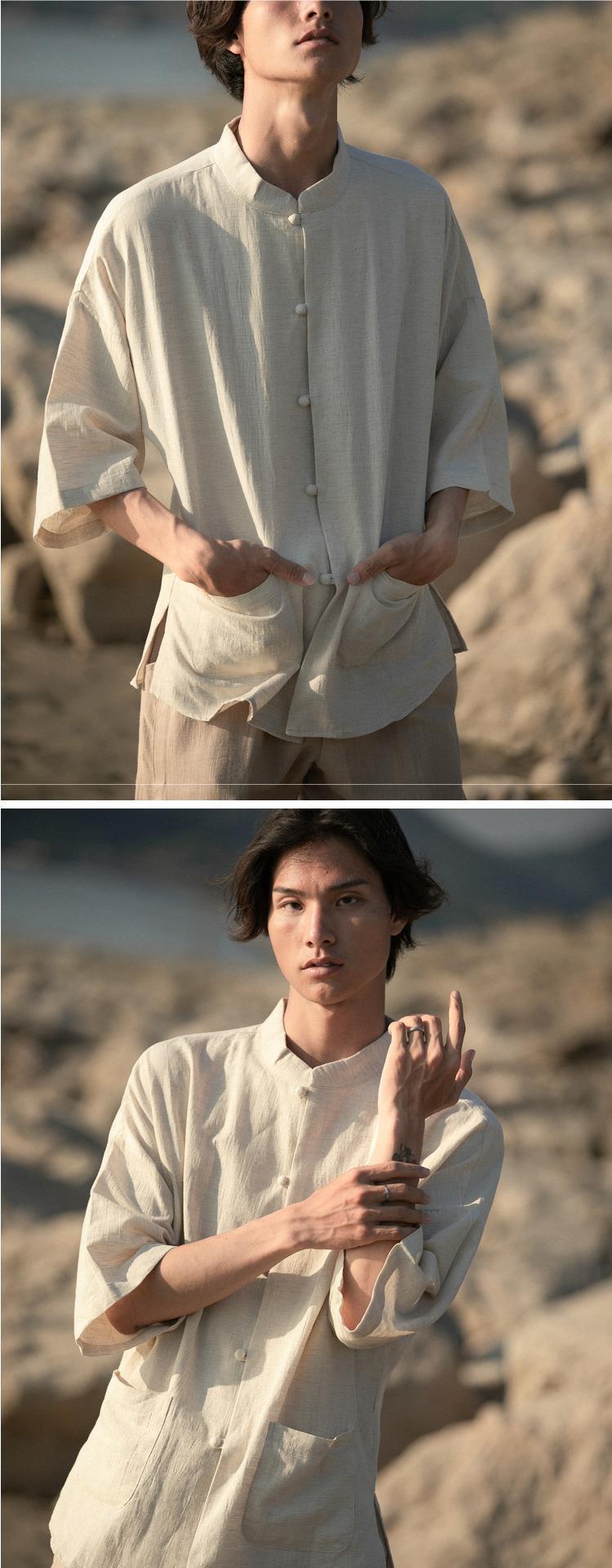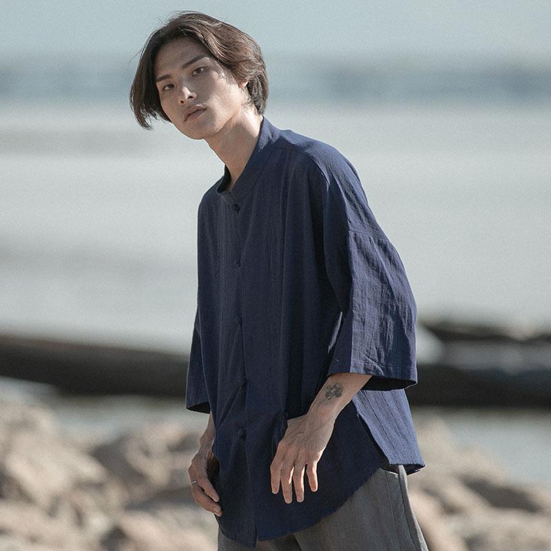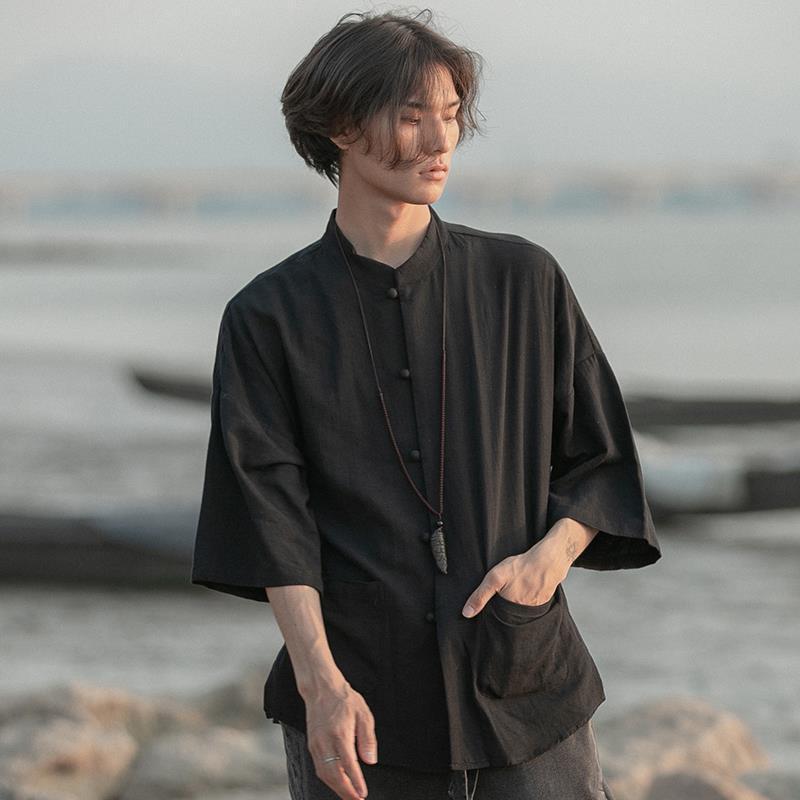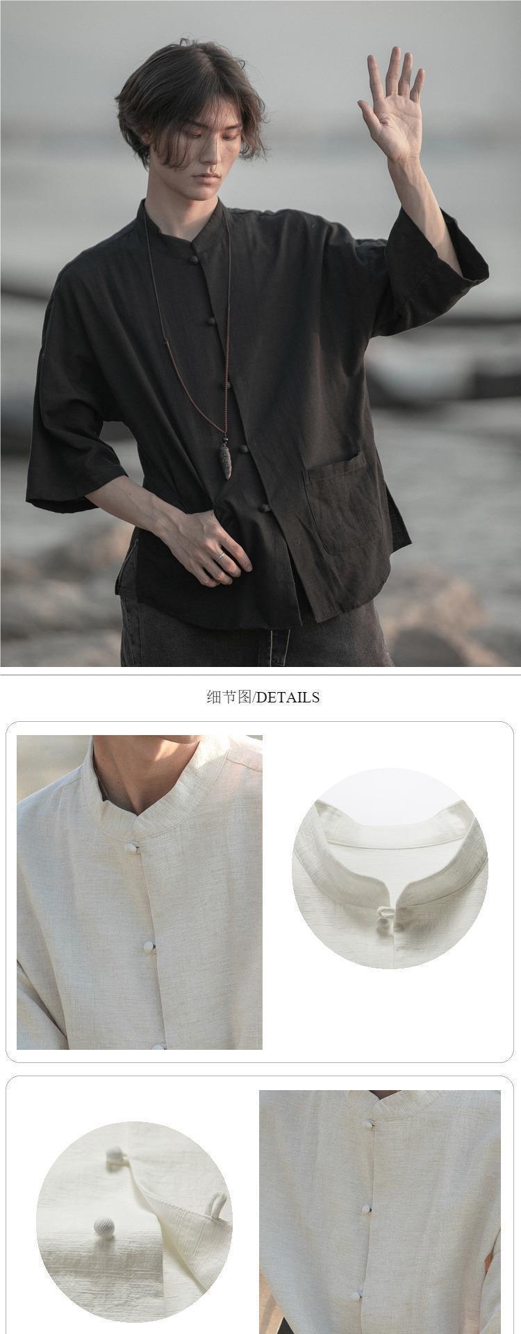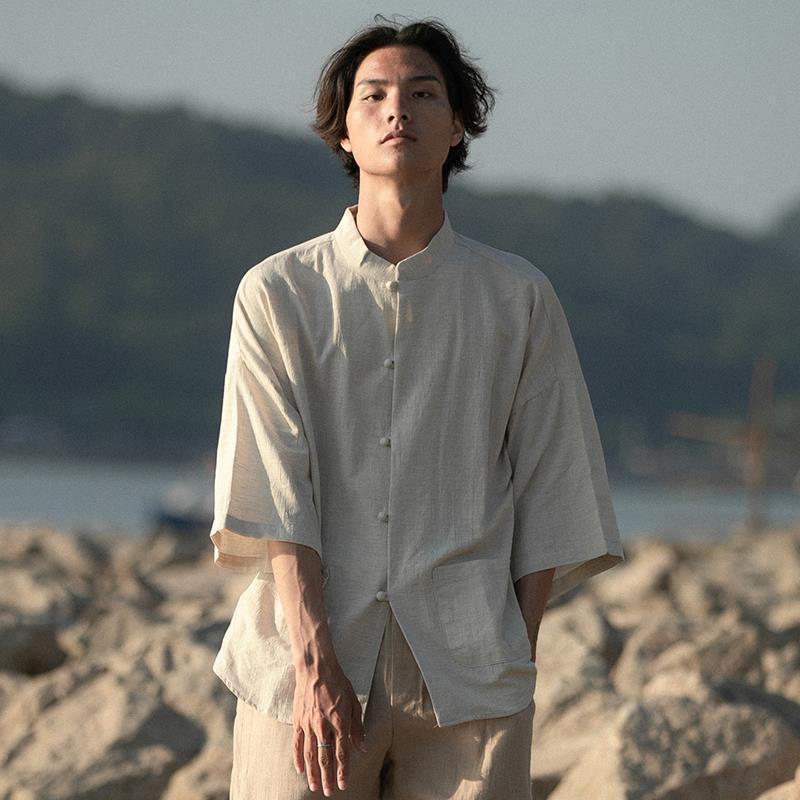 Китайская ветреная льняная рубашка Чжуншань мужская седьмые рукава китайская одежда из хлопка и льна повседневная тонкая рубашка летняя молодежная волна