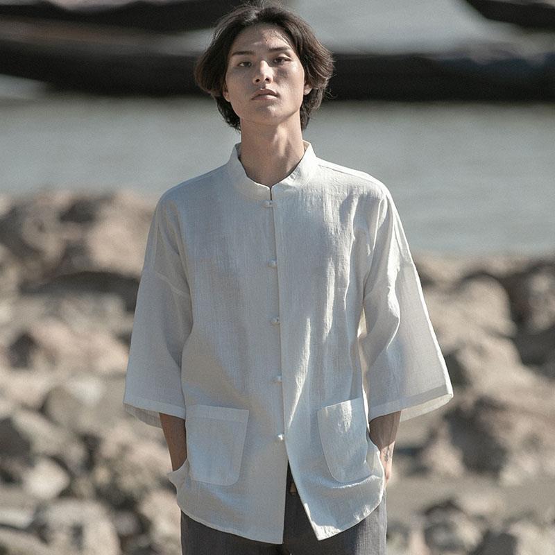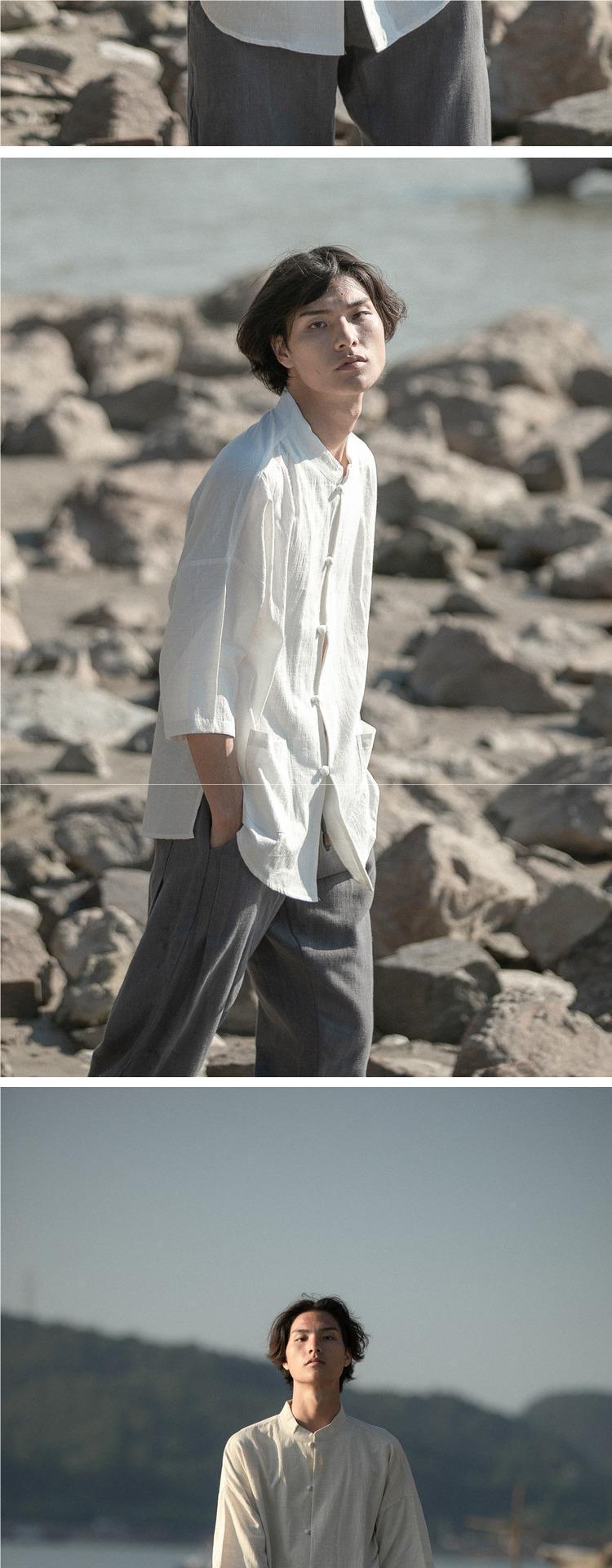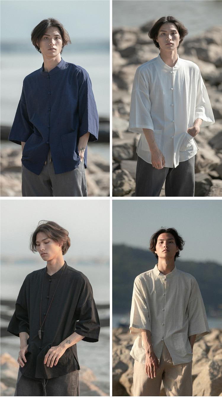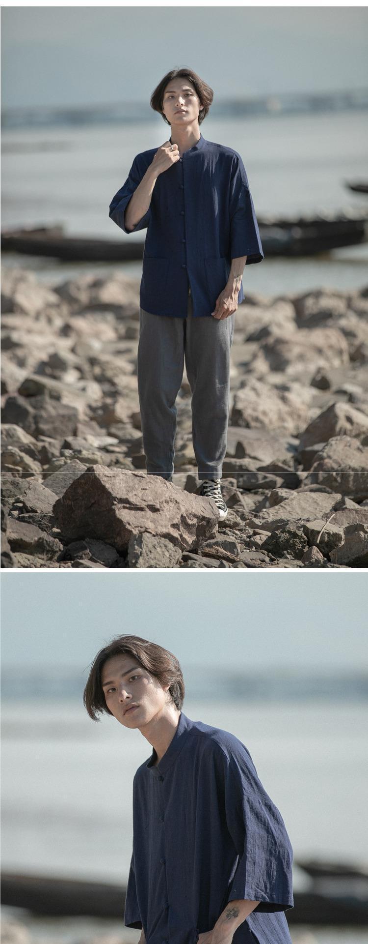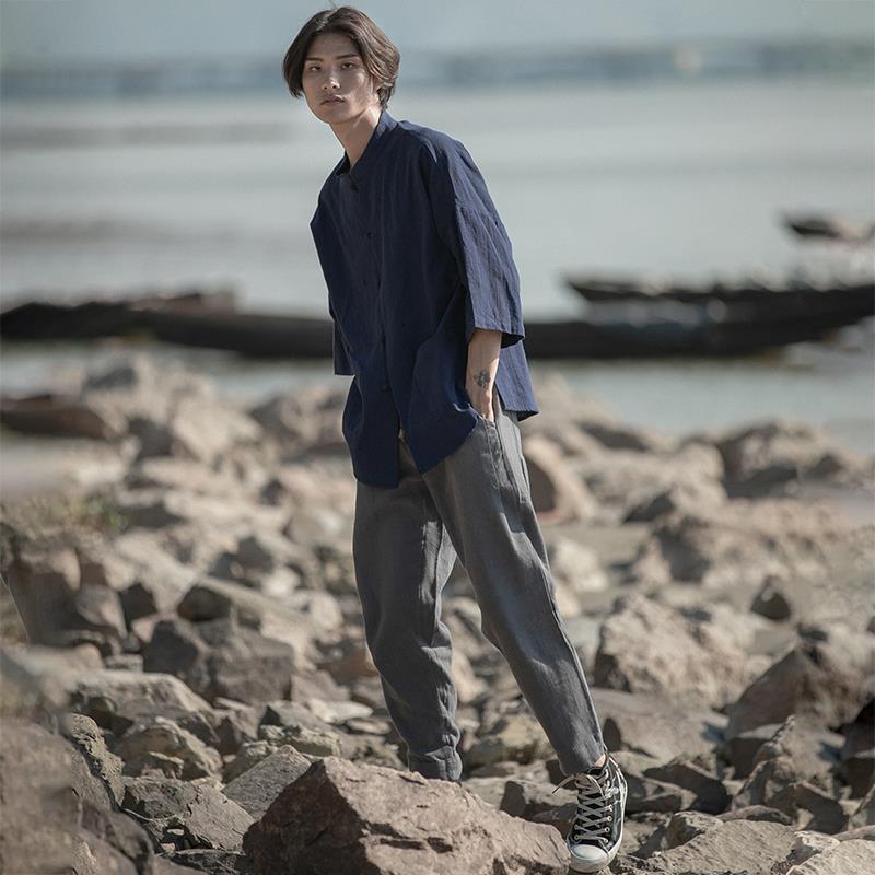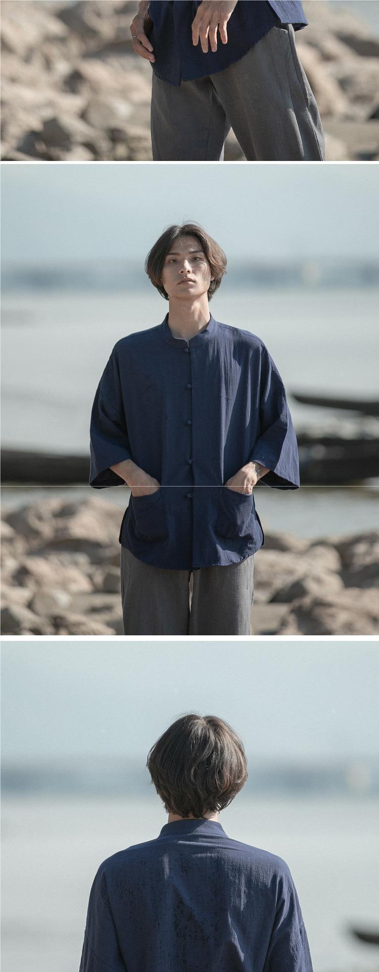 Китайская ветреная льняная рубашка Чжуншань мужская седьмые рукава китайская одежда из хлопка и льна повседневная тонкая рубашка летняя молодежная волна