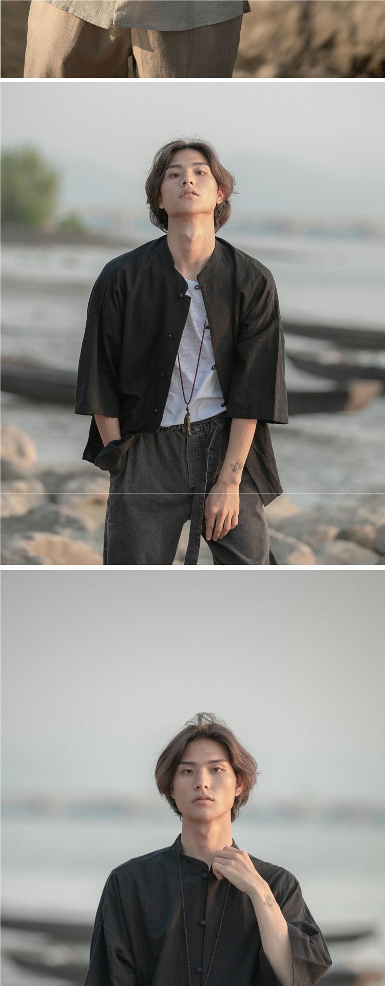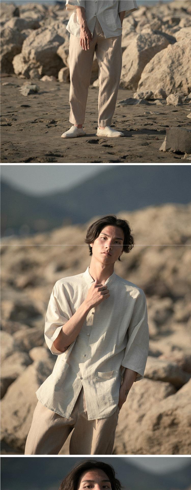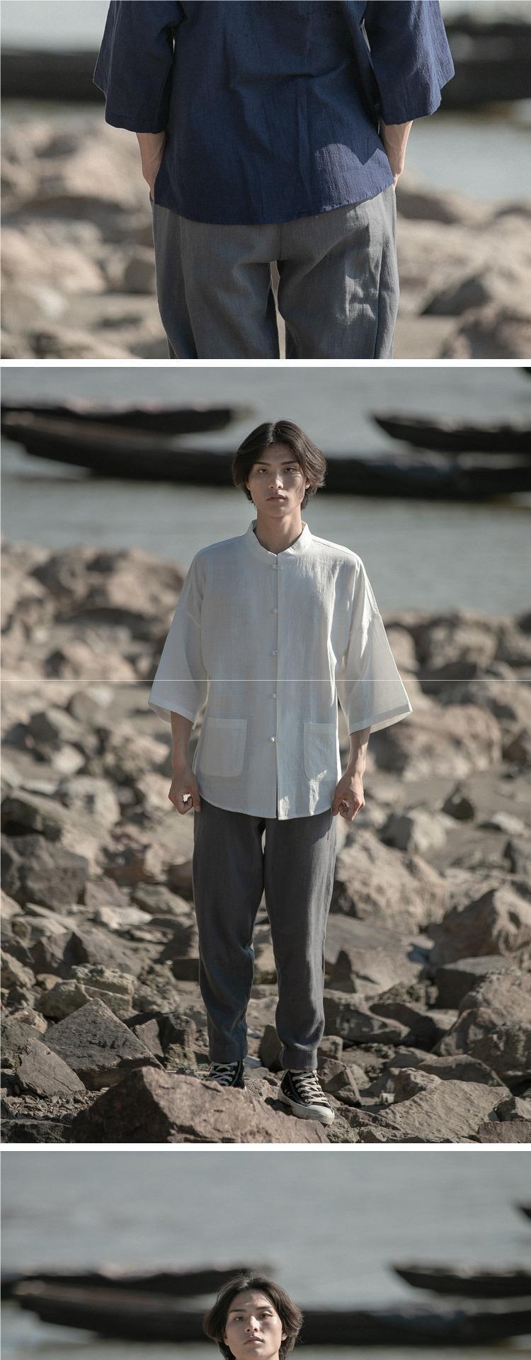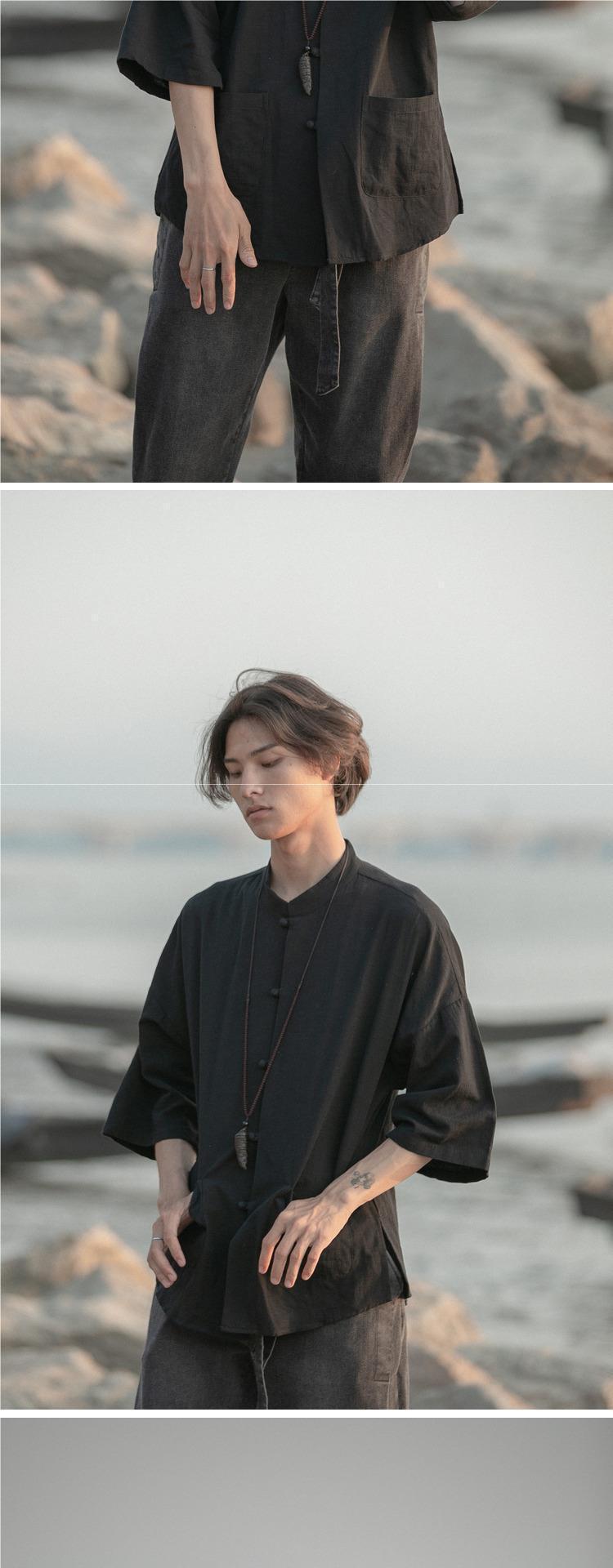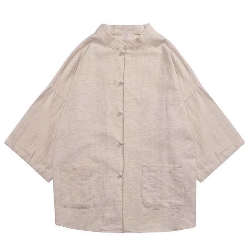 Китайская ветреная льняная рубашка Чжуншань мужская седьмые рукава китайская одежда из хлопка и льна повседневная тонкая рубашка летняя молодежная волна
