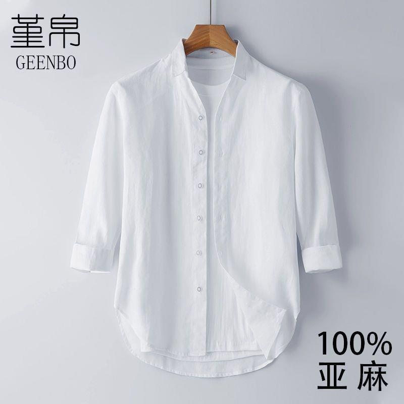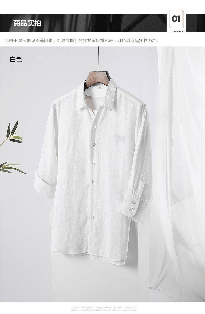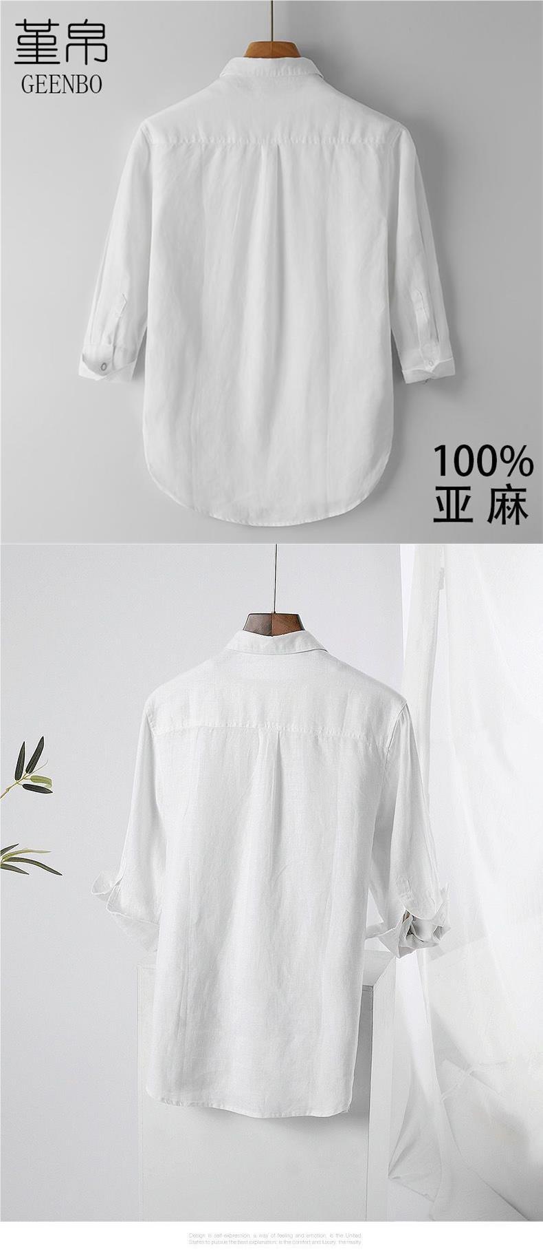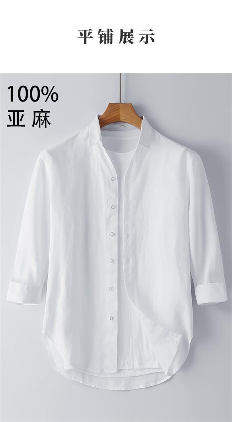 Мужская льняная рубашка с рукавами в три точки, новая летняя свободная тонкая дышащая однотонная хлопковая льняная рубашка, мужская белая рубашка со средним рукавом
