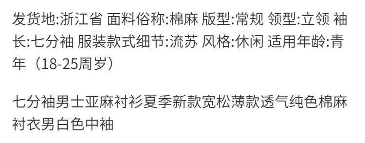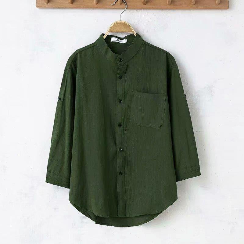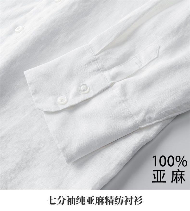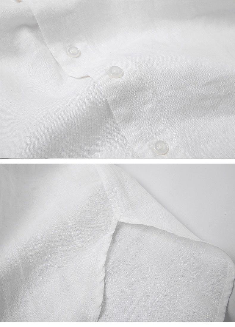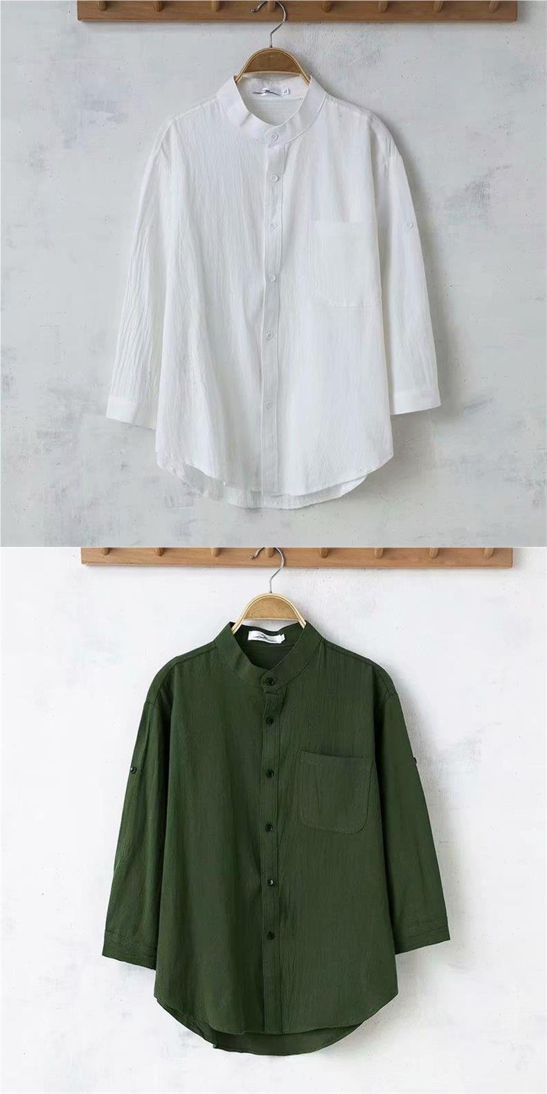 Мужская льняная рубашка с рукавами в три точки, новая летняя свободная тонкая дышащая однотонная хлопковая льняная рубашка, мужская белая рубашка со средним рукавом