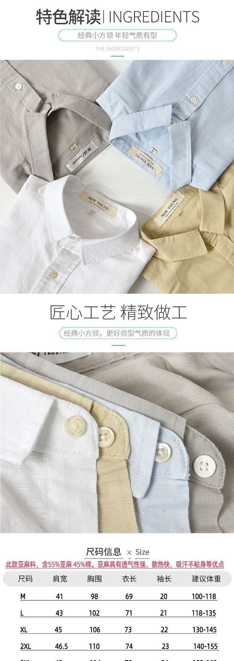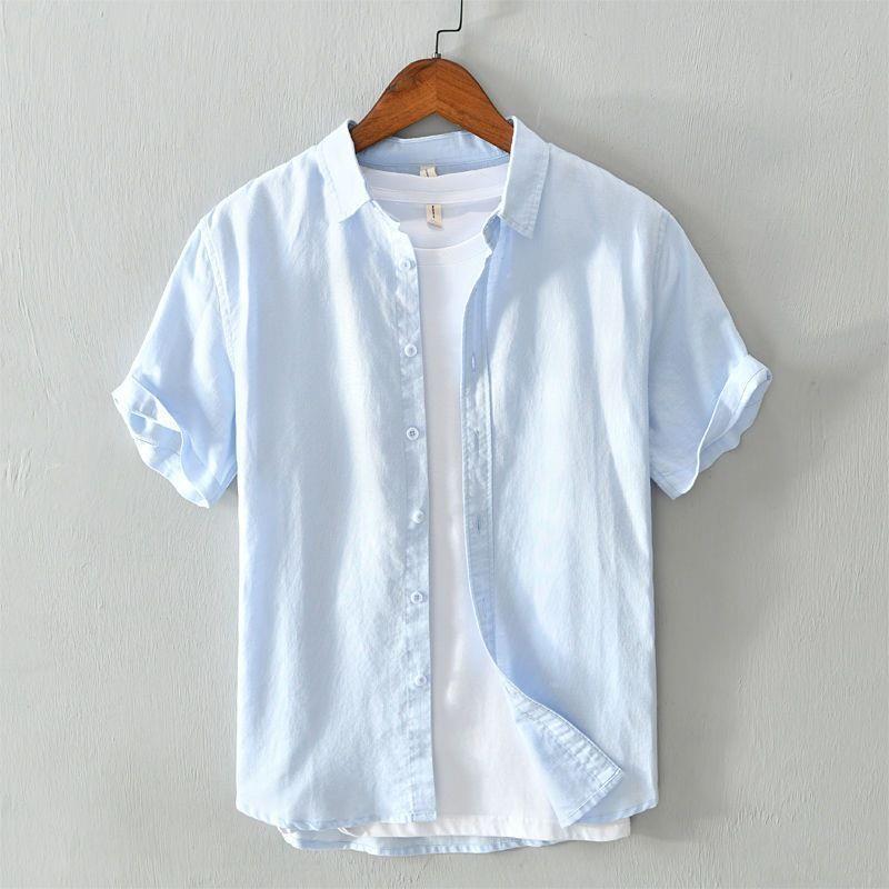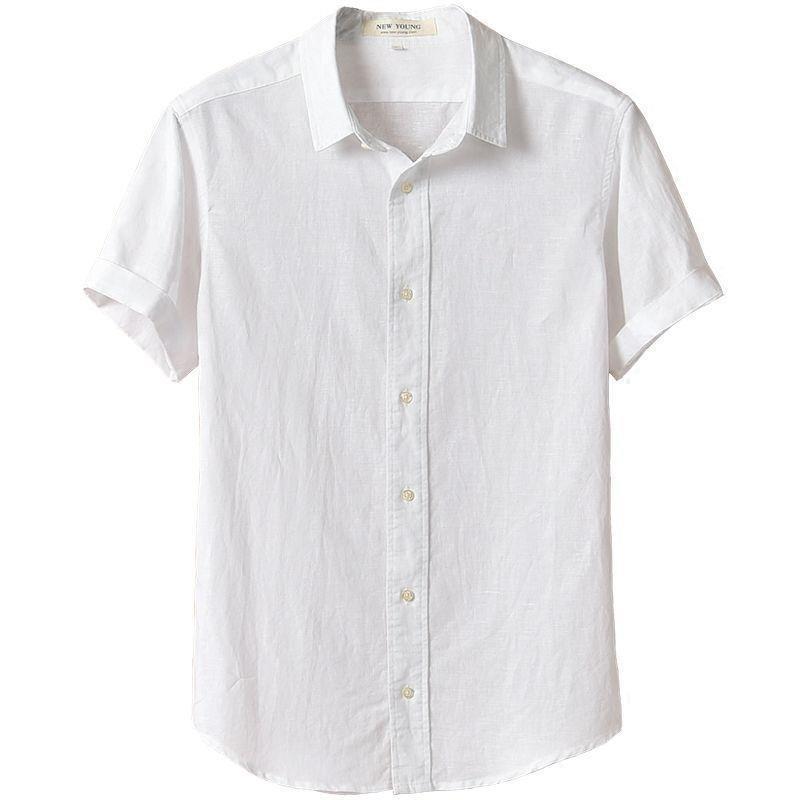 Дышащая льняная рубашка, мужская приталенная рубашка с короткими рукавами, летняя хлопковая льняная Повседневная белая рубашка с тонкими лацканами для молодежи