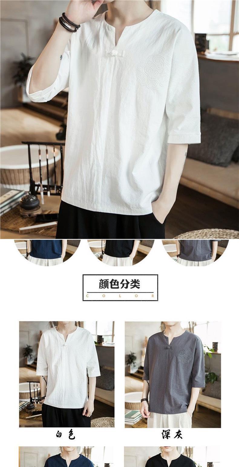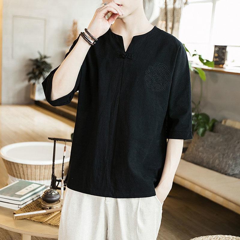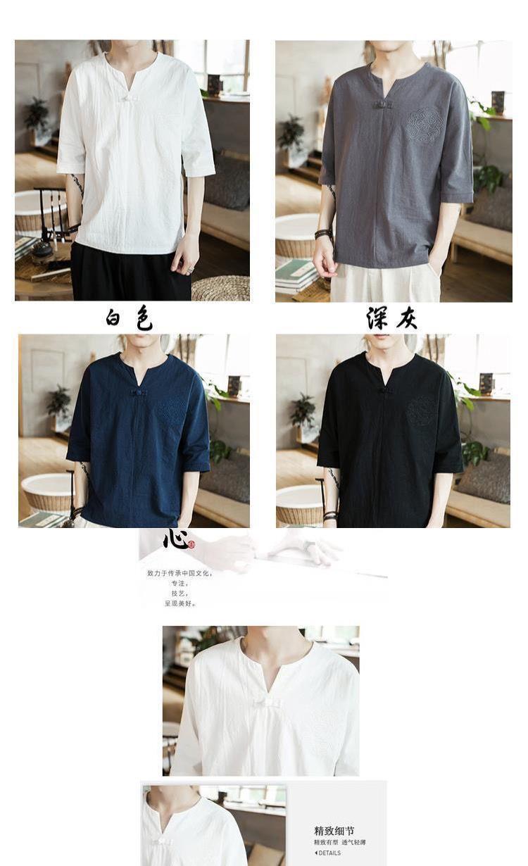 Футболка с короткими рукавами с вышивкой Tang мужской плюс толстый плюс большой размер тенденция толстяк свободный V-образный вырез с половиной рукава ретро летний китайский стиль