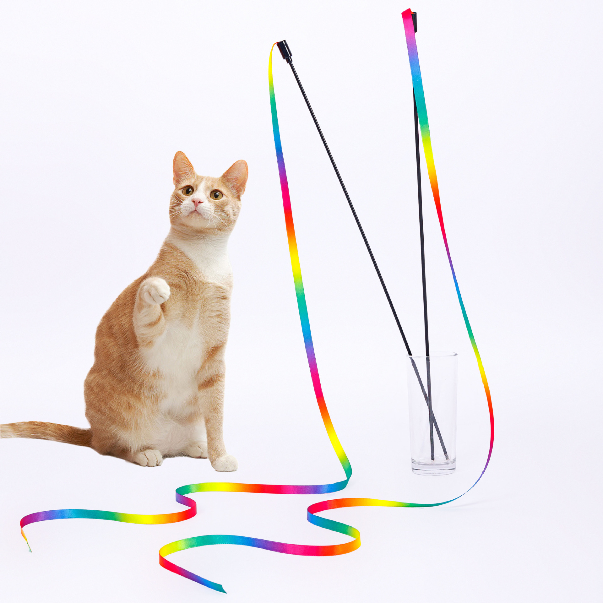 Прямая поставка с фабрики Двусторонняя Радужная тесьма кошачья палка трансграничная Радужная тесьма игрушка для кошек кошачья сетка Красная кошка