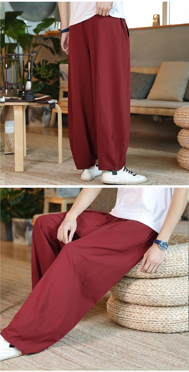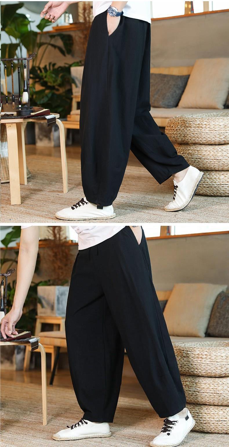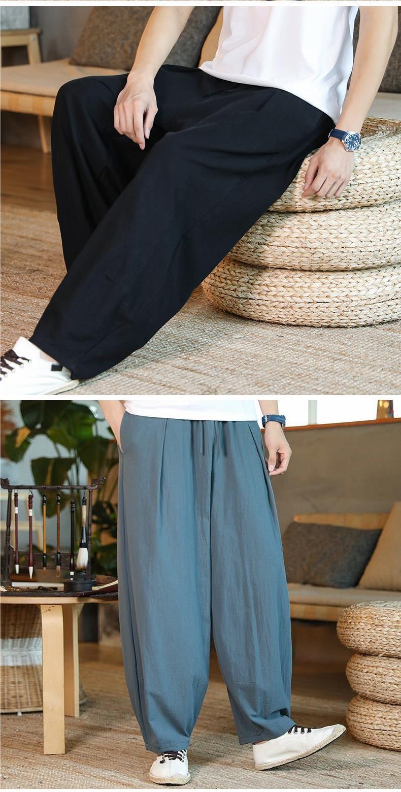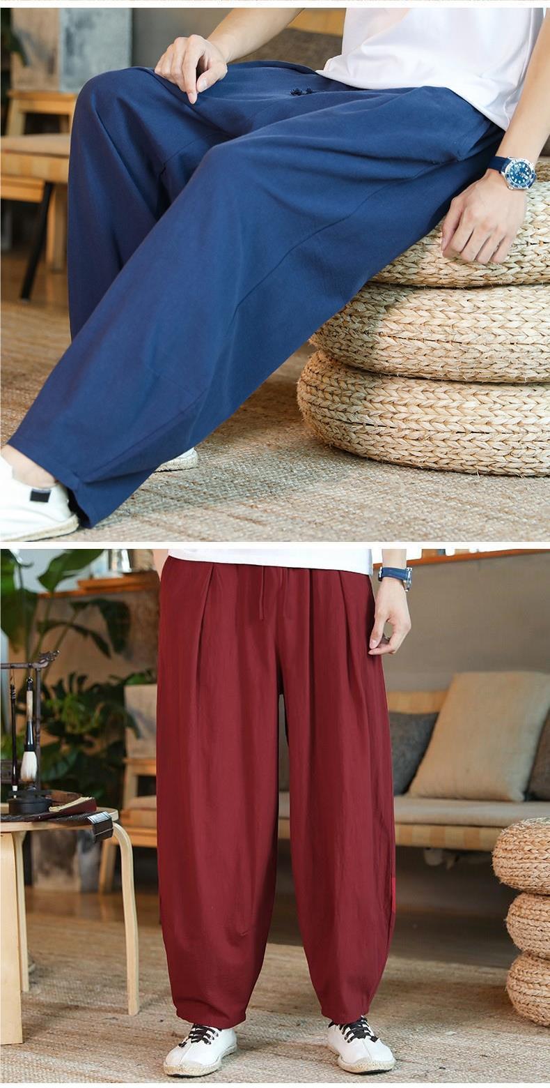 Китайский стиль мужские льняные длинные брюки мужские толстые широкие шаровары