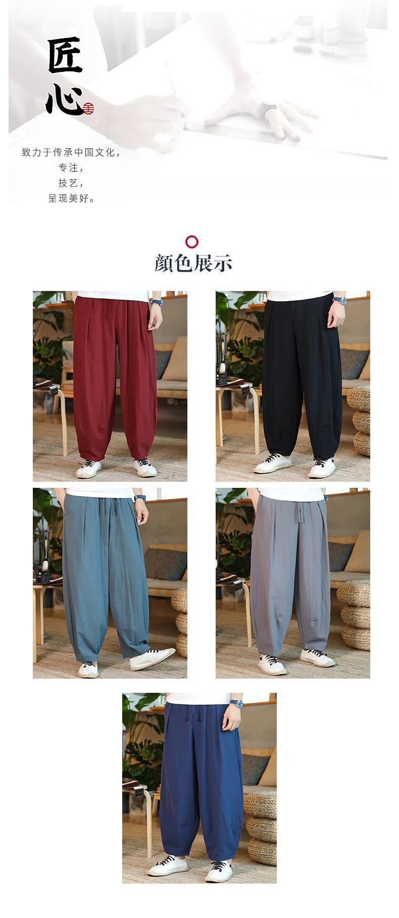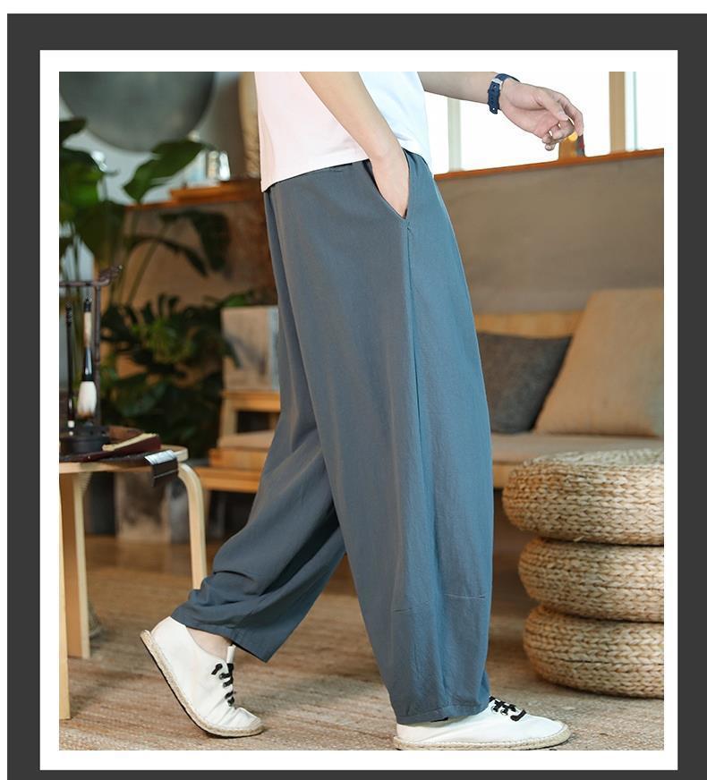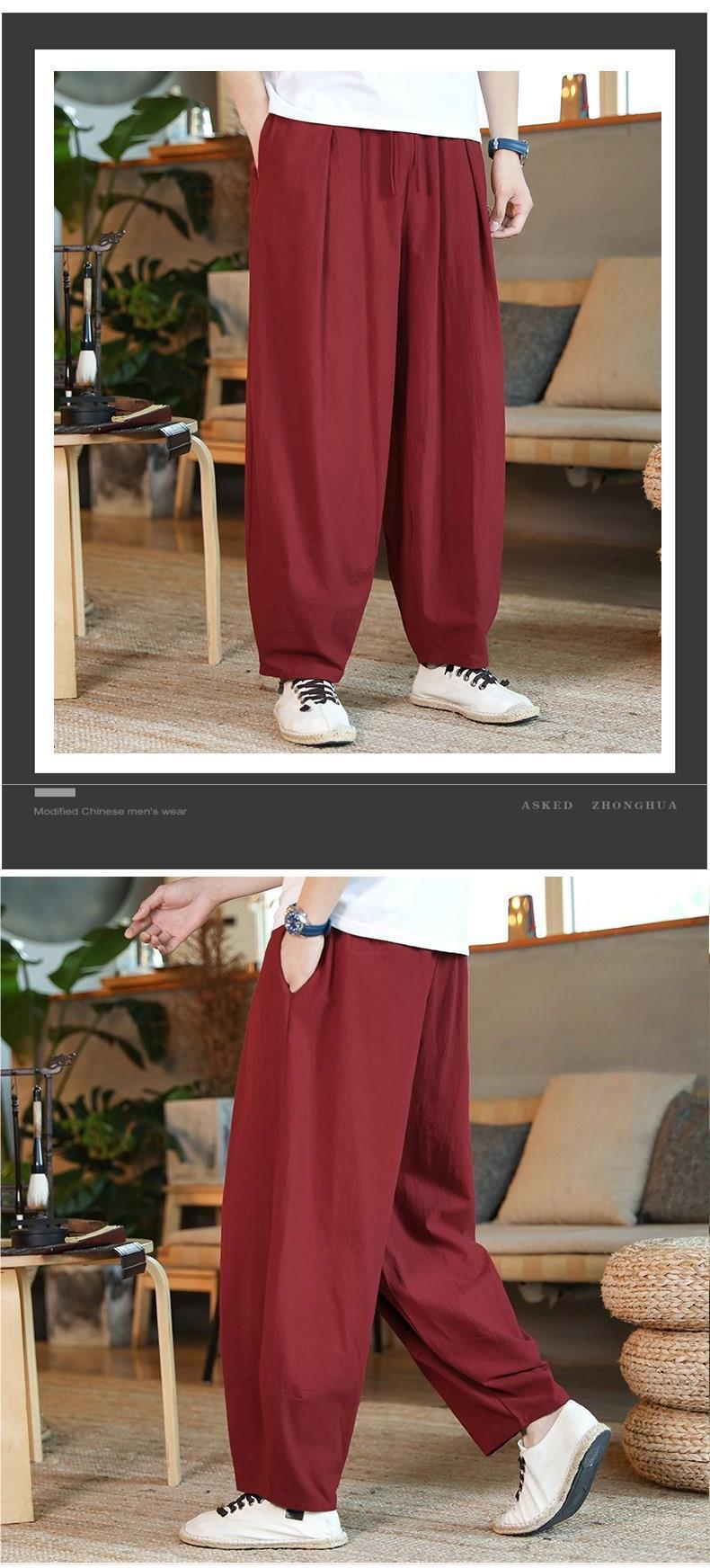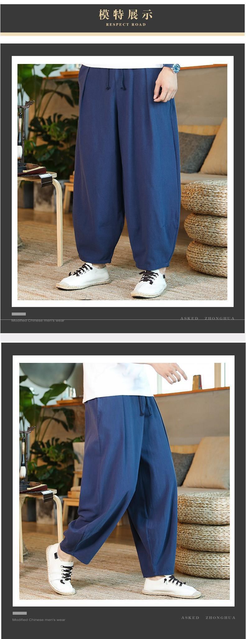 Китайский стиль мужские льняные длинные брюки мужские толстые широкие шаровары