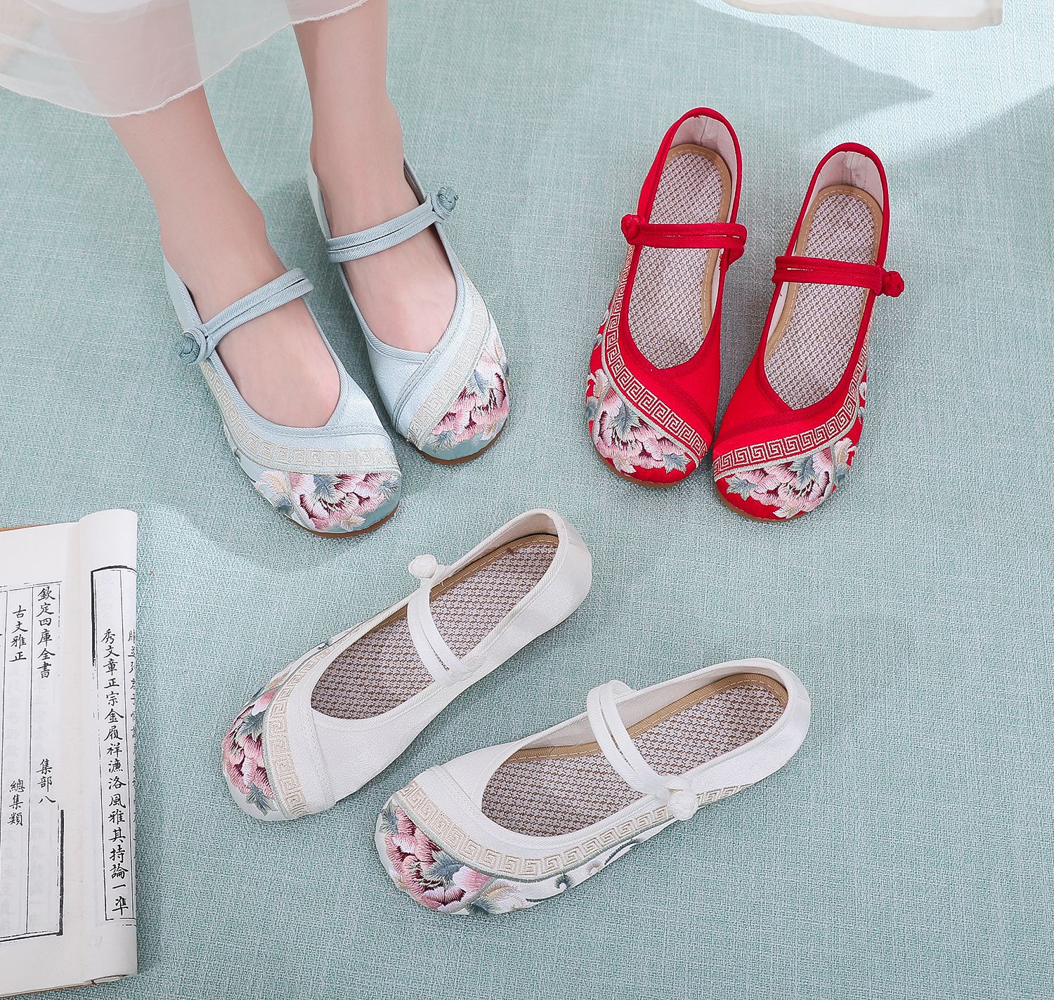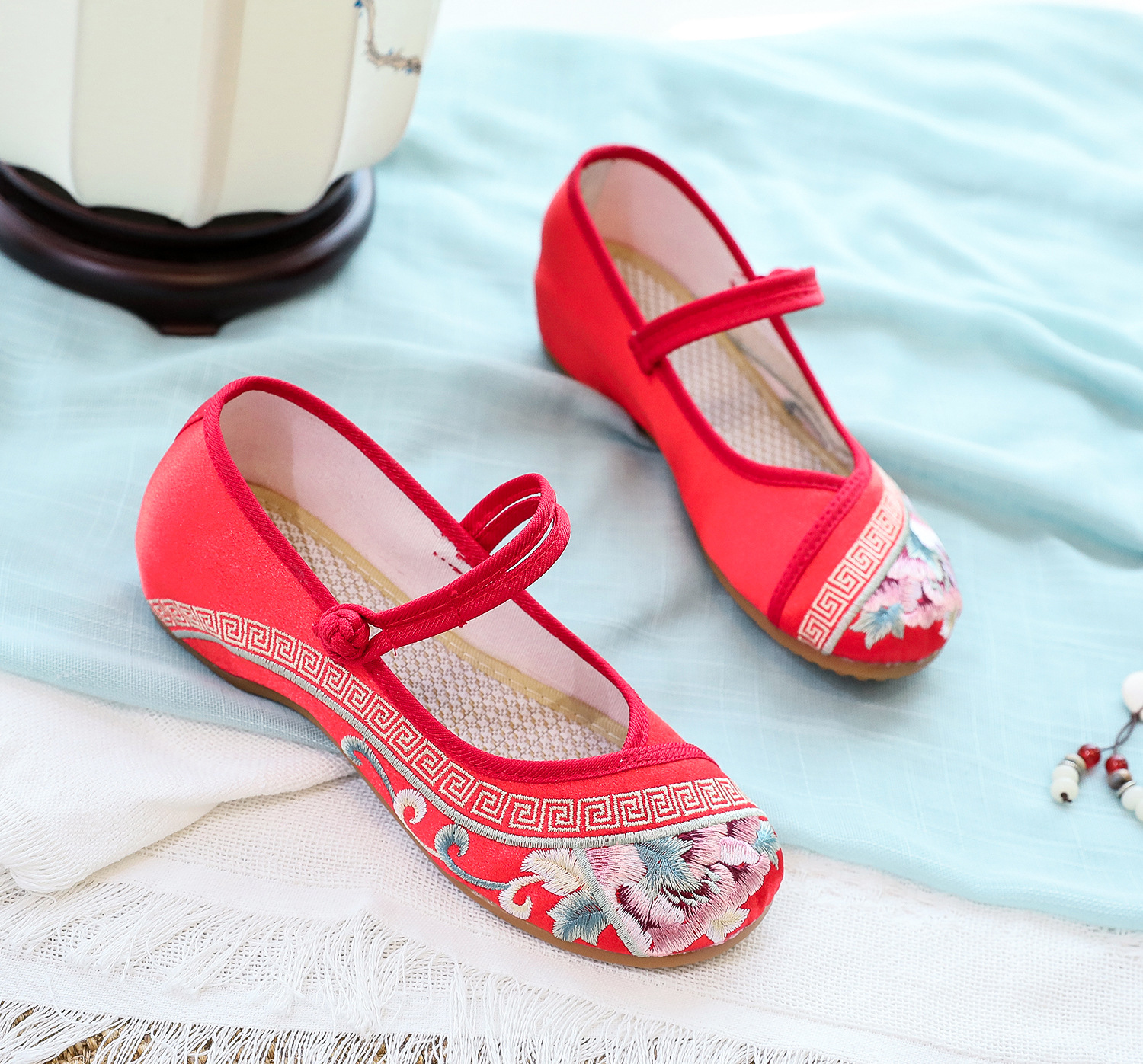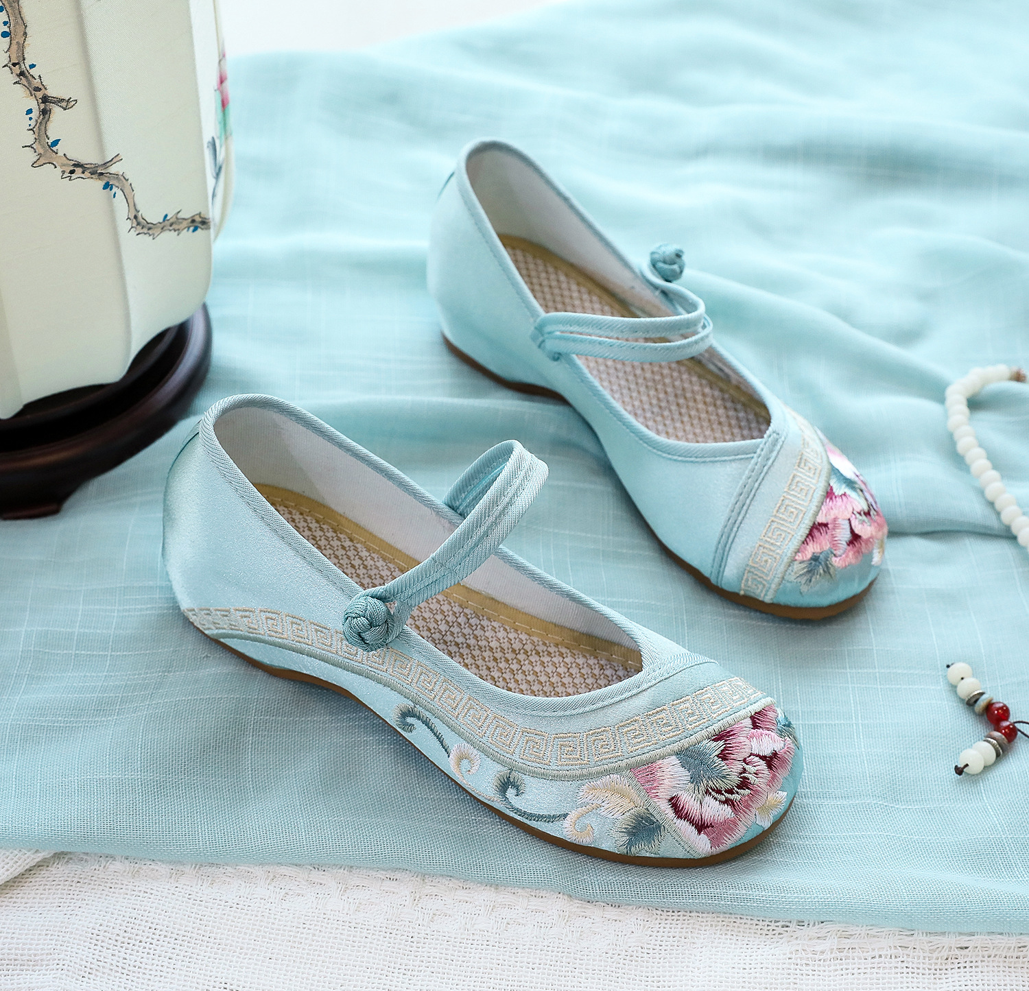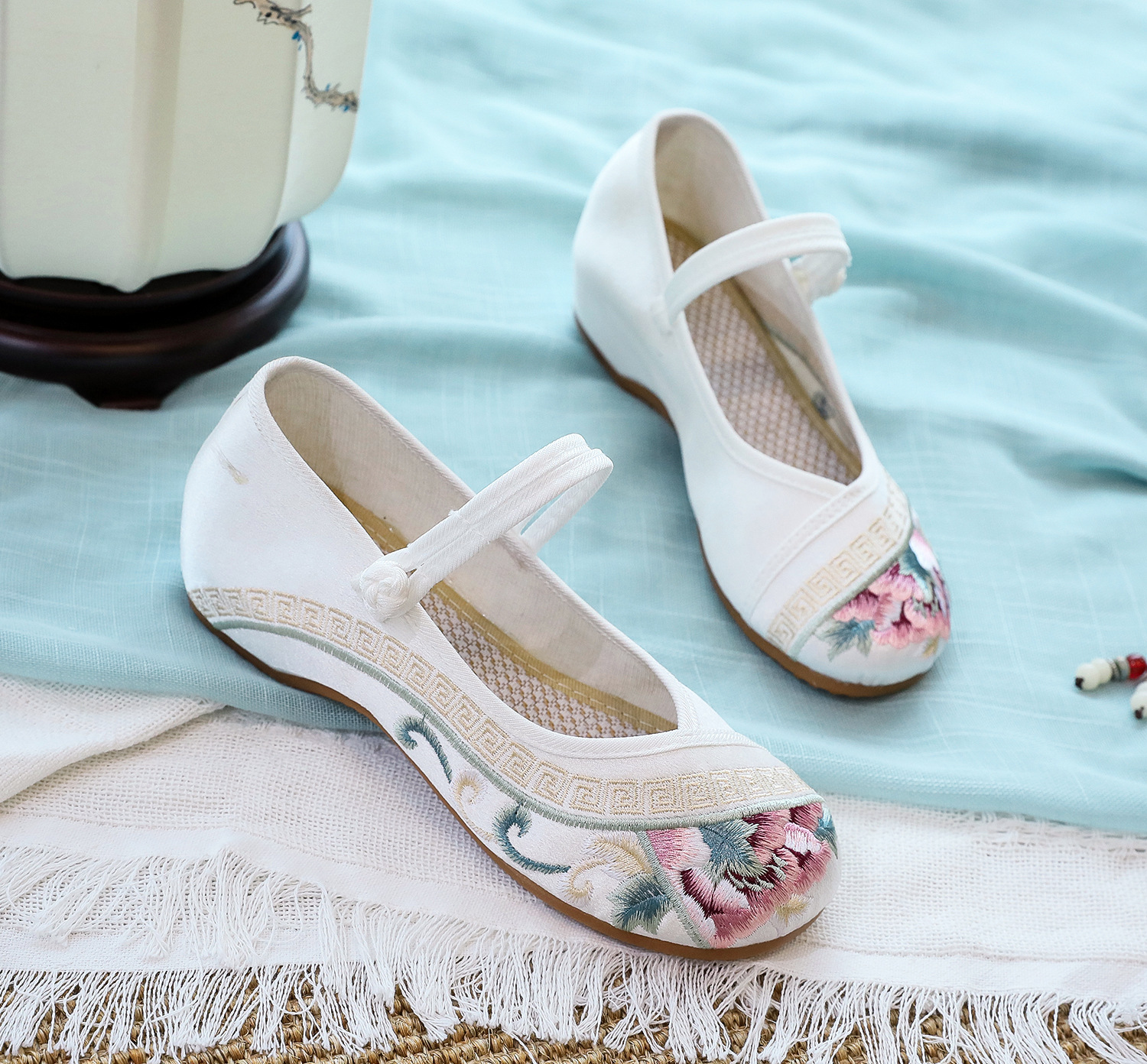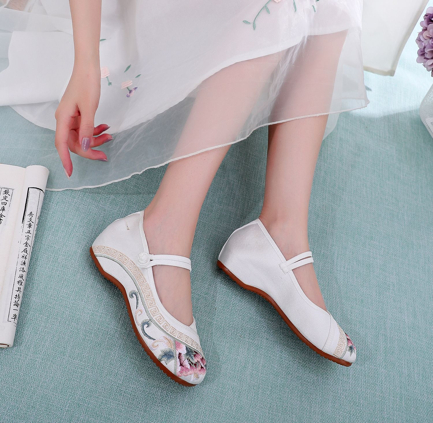 [Экран для рисования] 2024, летний новый продукт, женская обувь в старом Пекине в старинном стиле с вышивкой Tbottomon, увеличивающая нижнюю часть, женская обувь в этническом стиле